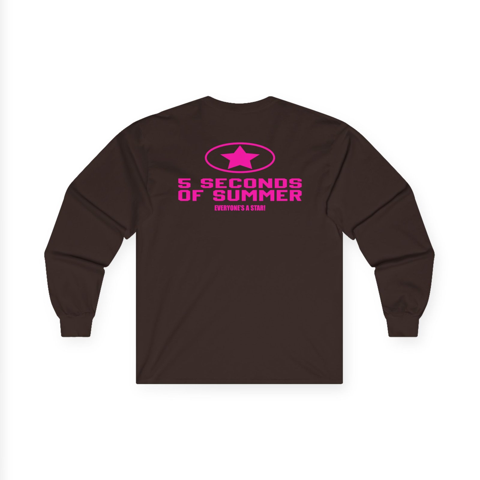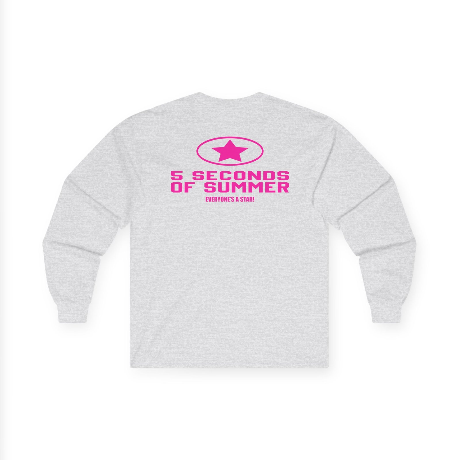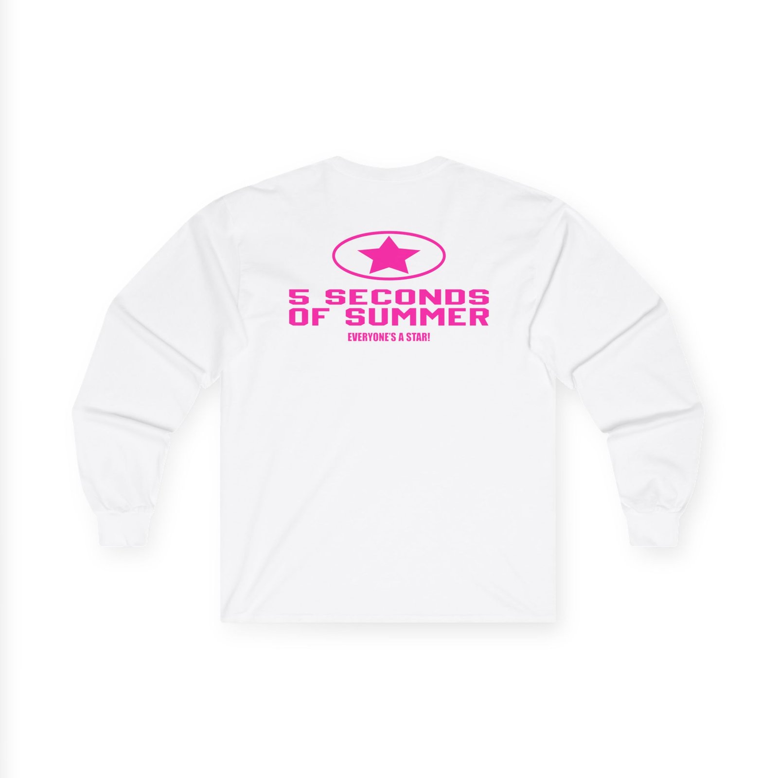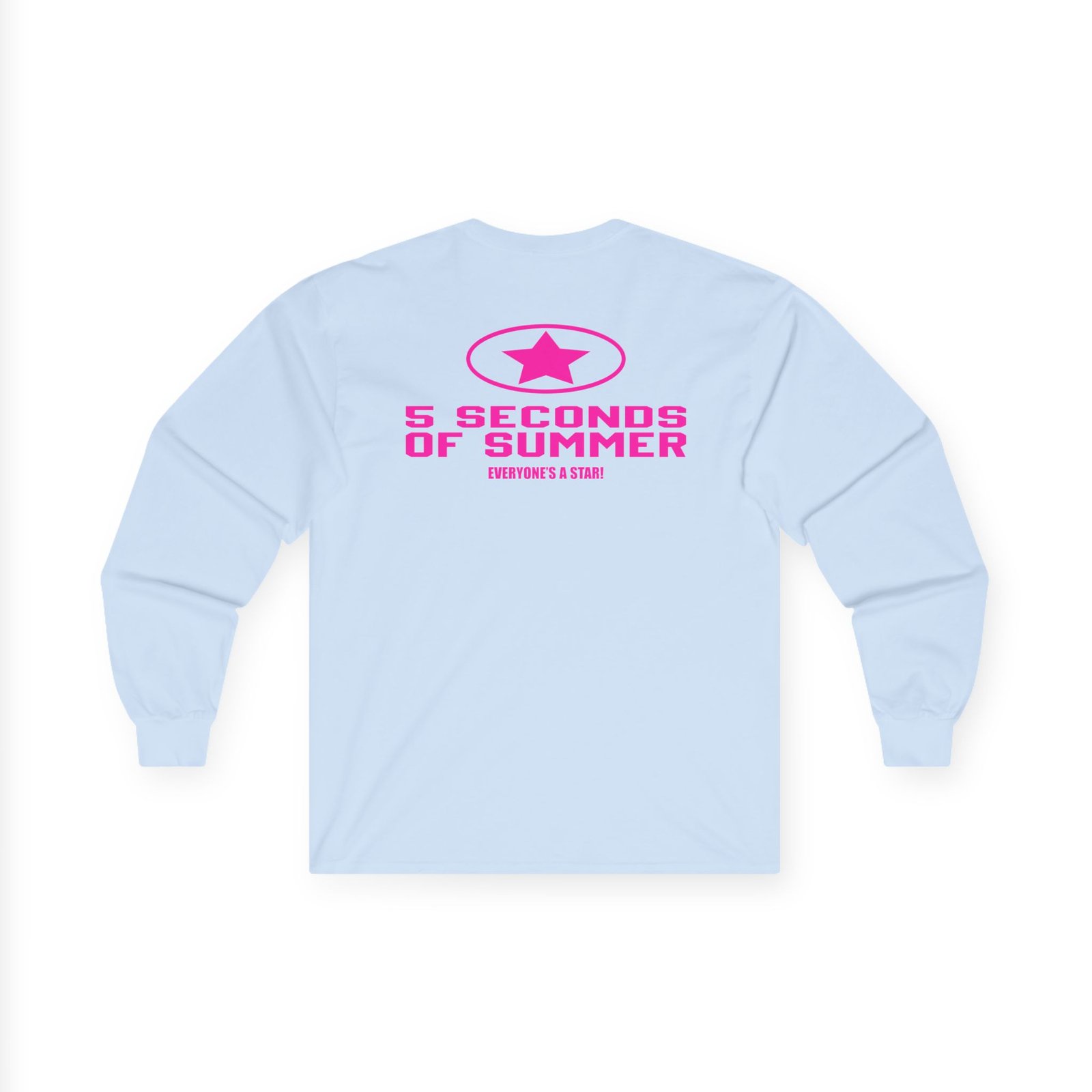 A bit more formal than a standard-issue t-shirt, the 5sos Tour Everyone's a Star! Band ultra cotton long sleeve tee is a clear comfort winner. The sleeves also act as a nice frame. There are no side seams. The shoulders are taped for improved durability. This makes for a good fitting around the shoulders and neck. The cotton used for these shirts is environmentally friendly.