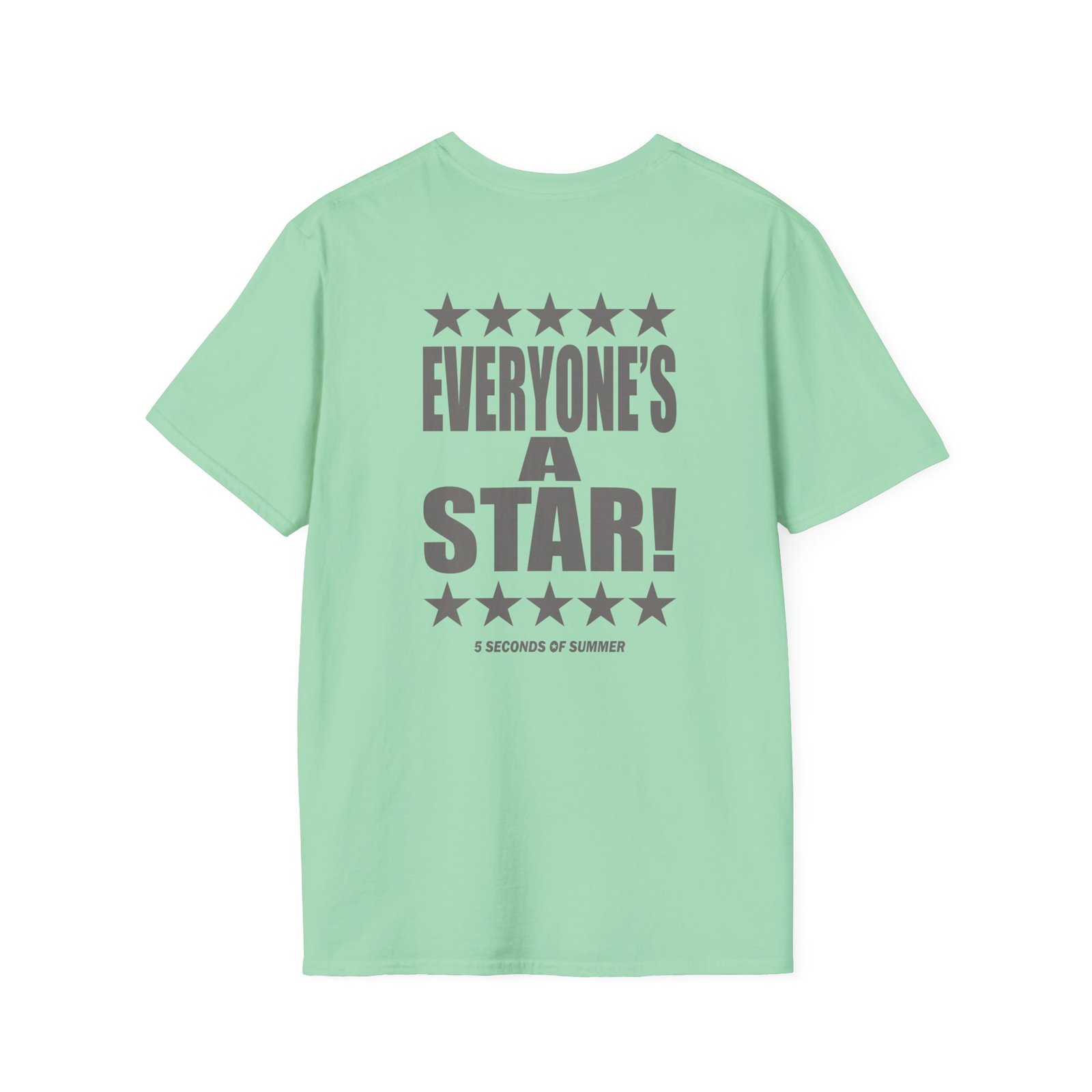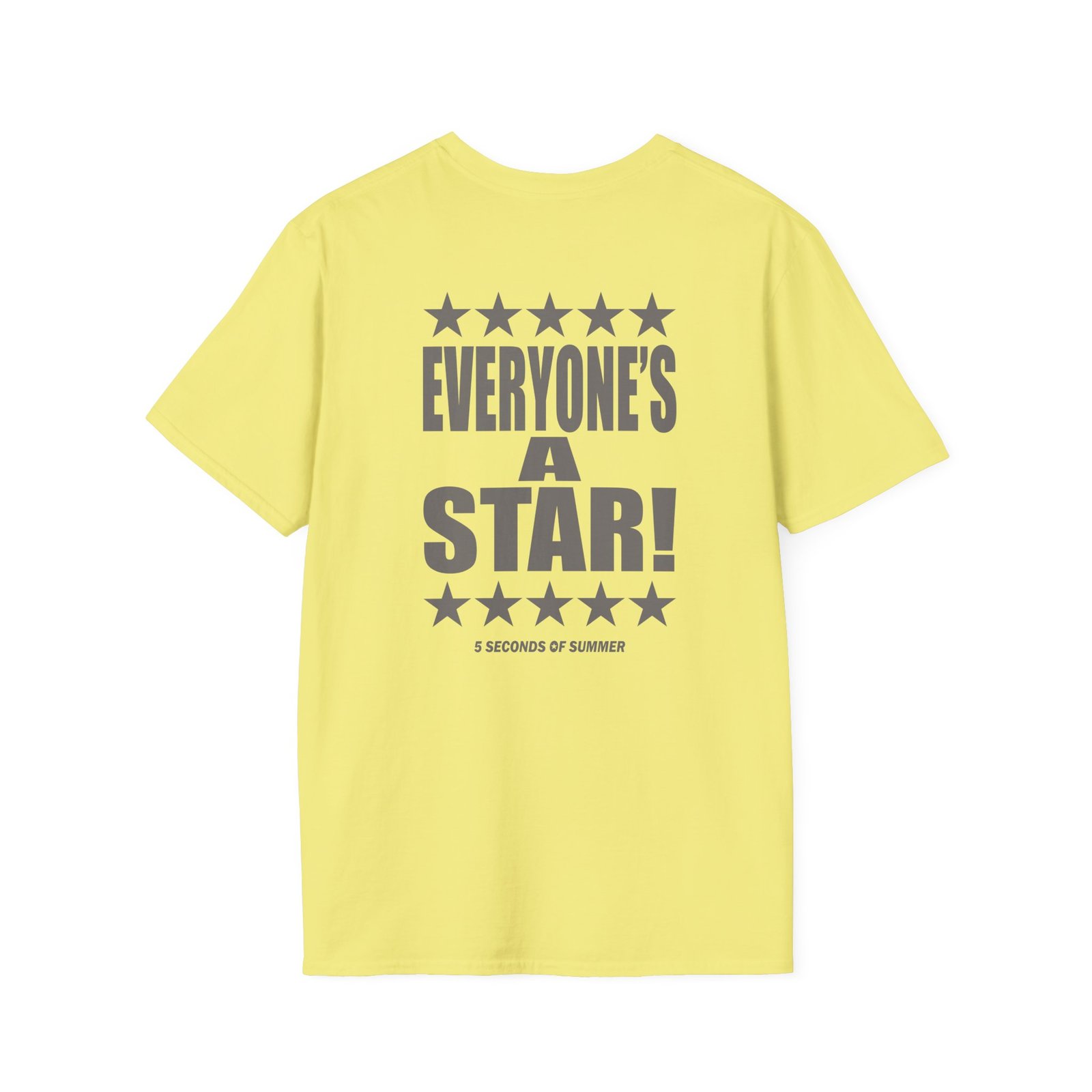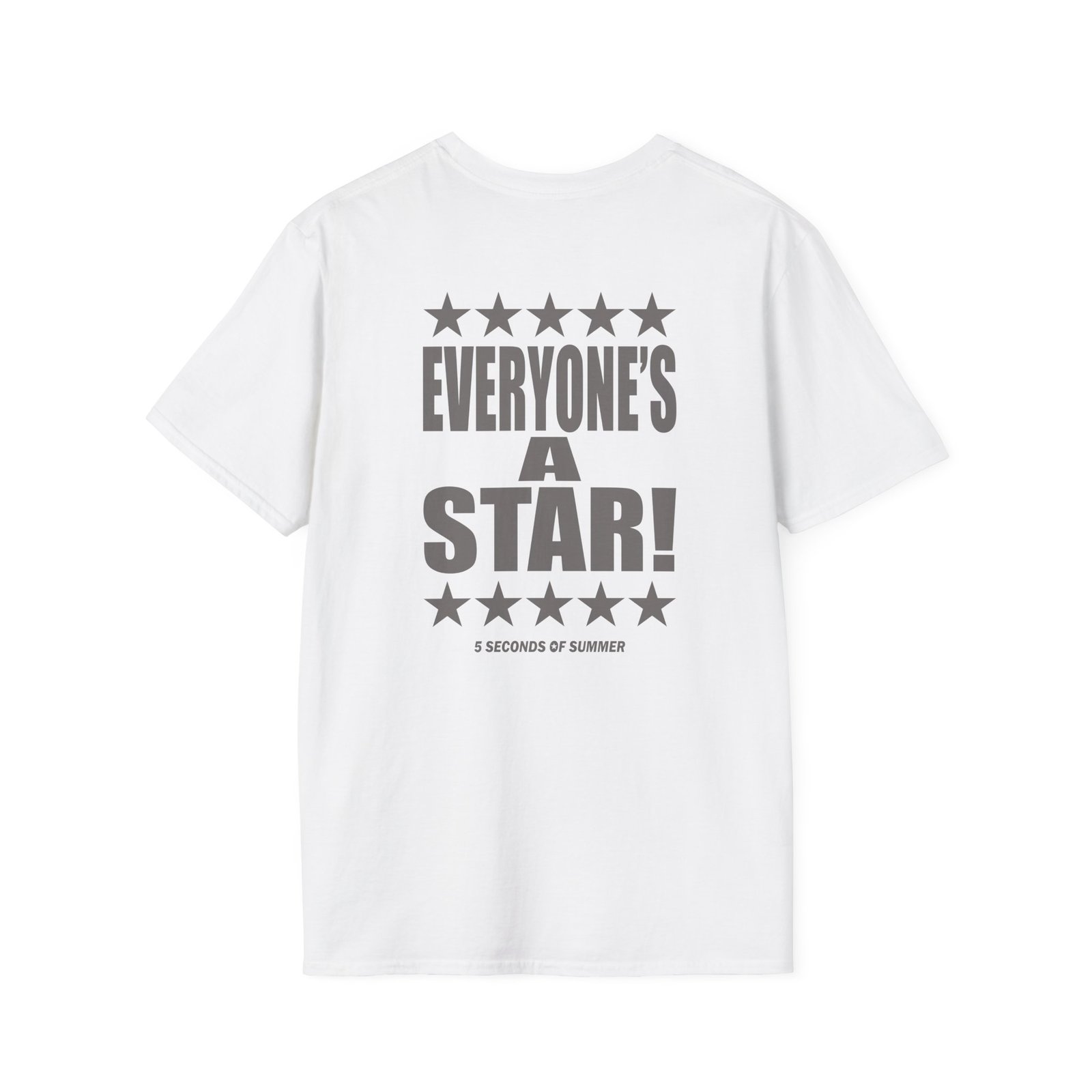 The 5sos Tour Everyone's a Star! unisex soft-style t-shirt puts a new spin on casual comfort. Made from very soft materials, this tee is 100% cotton for solid colors. Heather colors and sports grey include polyester. The shoulders have twill tape for improved durability. There are no side seams. The collar is made with ribbed knitting to prevent curling damage.