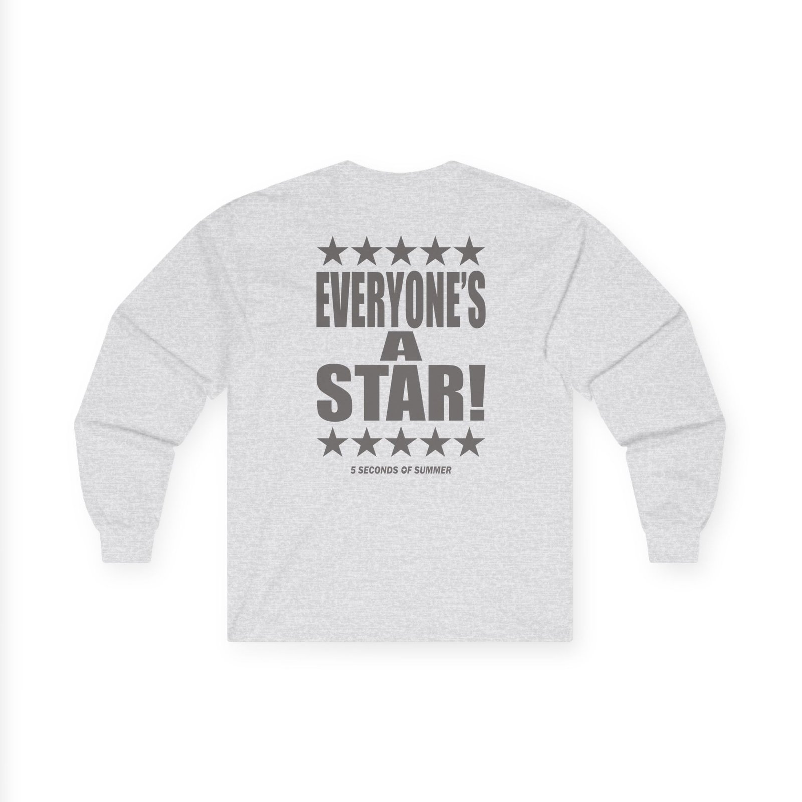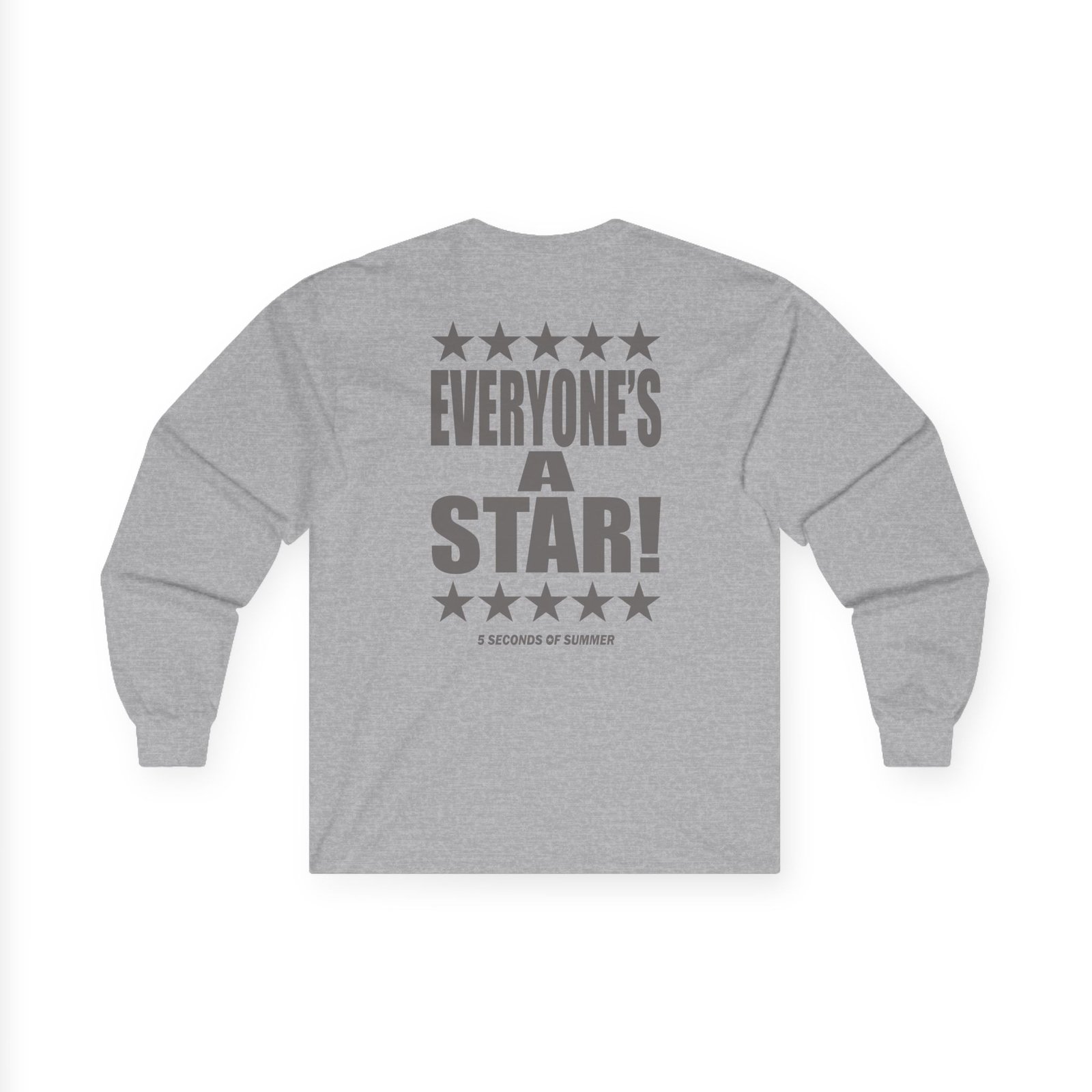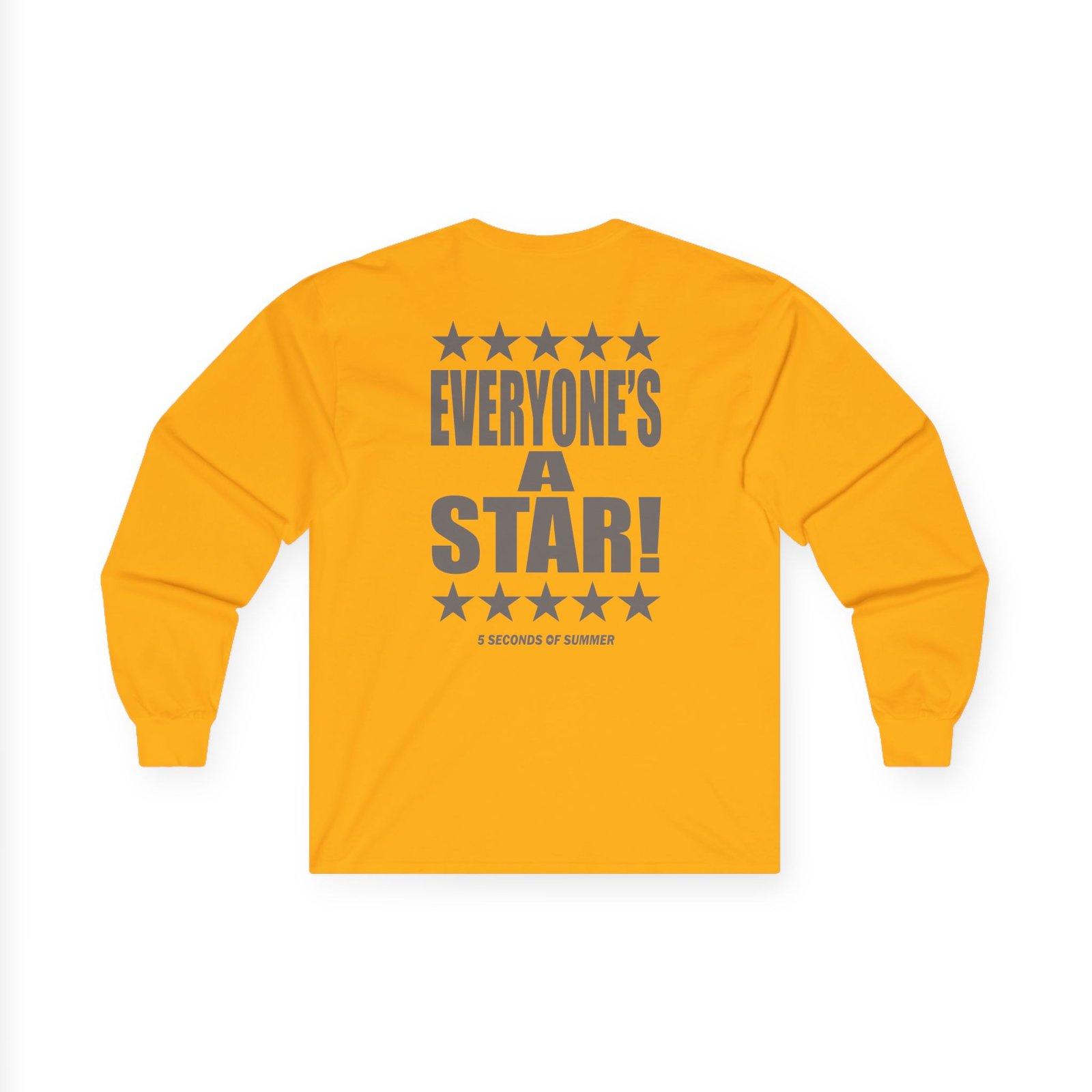 A bit more formal than a standard-issue t-shirt, the 5sos Tour Everyone's a Star! ultra cotton long sleeve tee is a clear comfort winner. The sleeves also act as a nice frame. There are no side seams. The shoulders are taped for improved durability. This makes for a good fitting around the shoulders and neck. The cotton used for these shirts is environmentally friendly.
