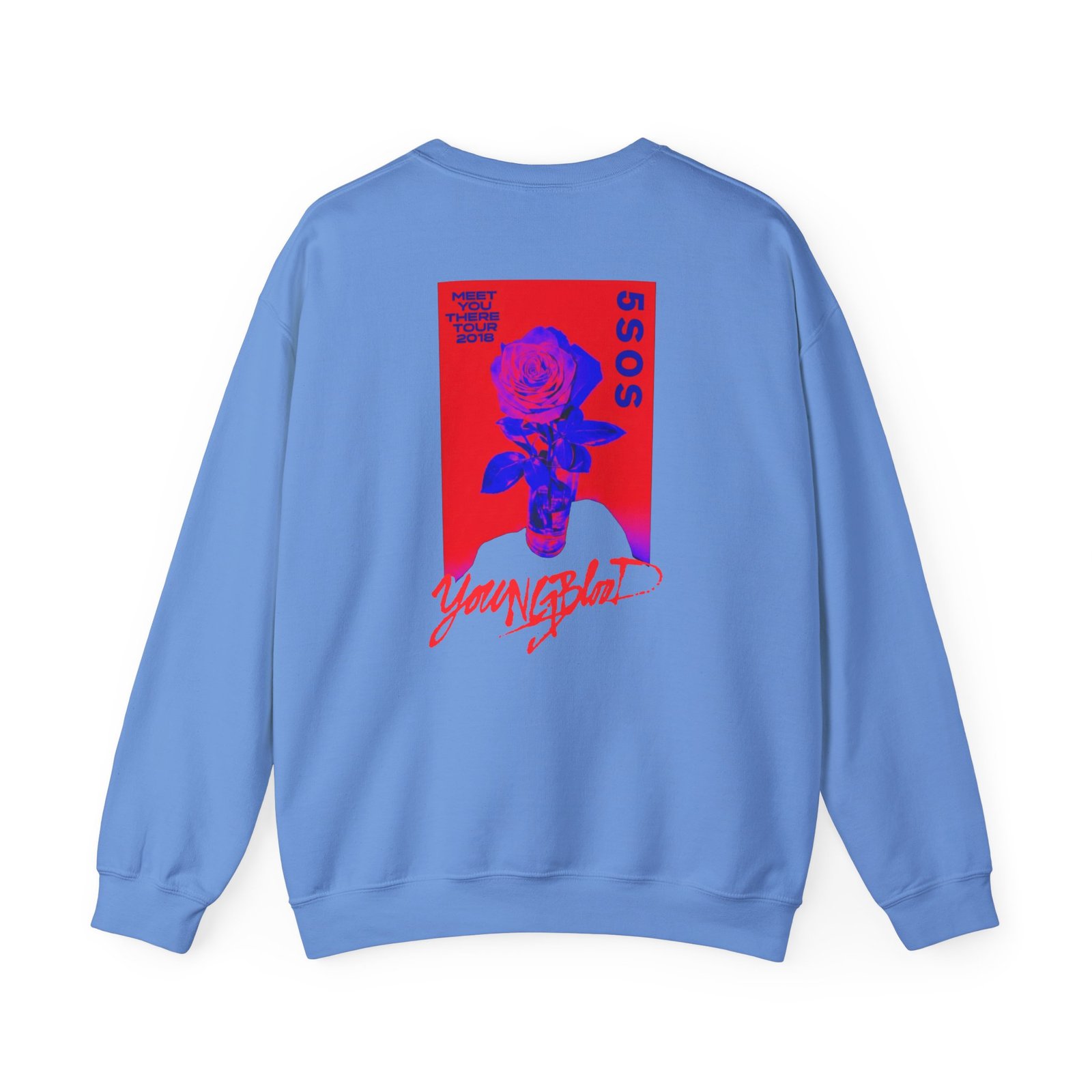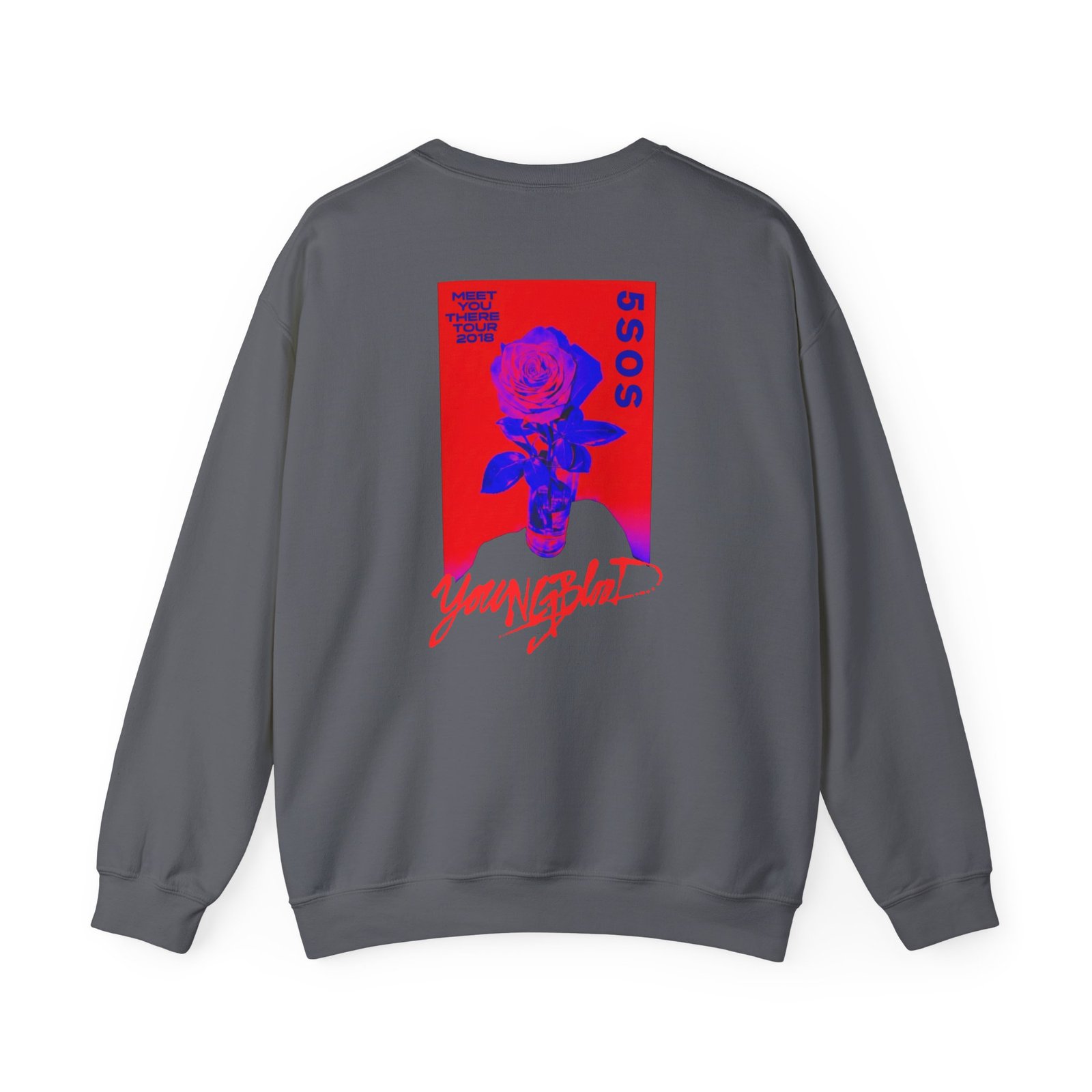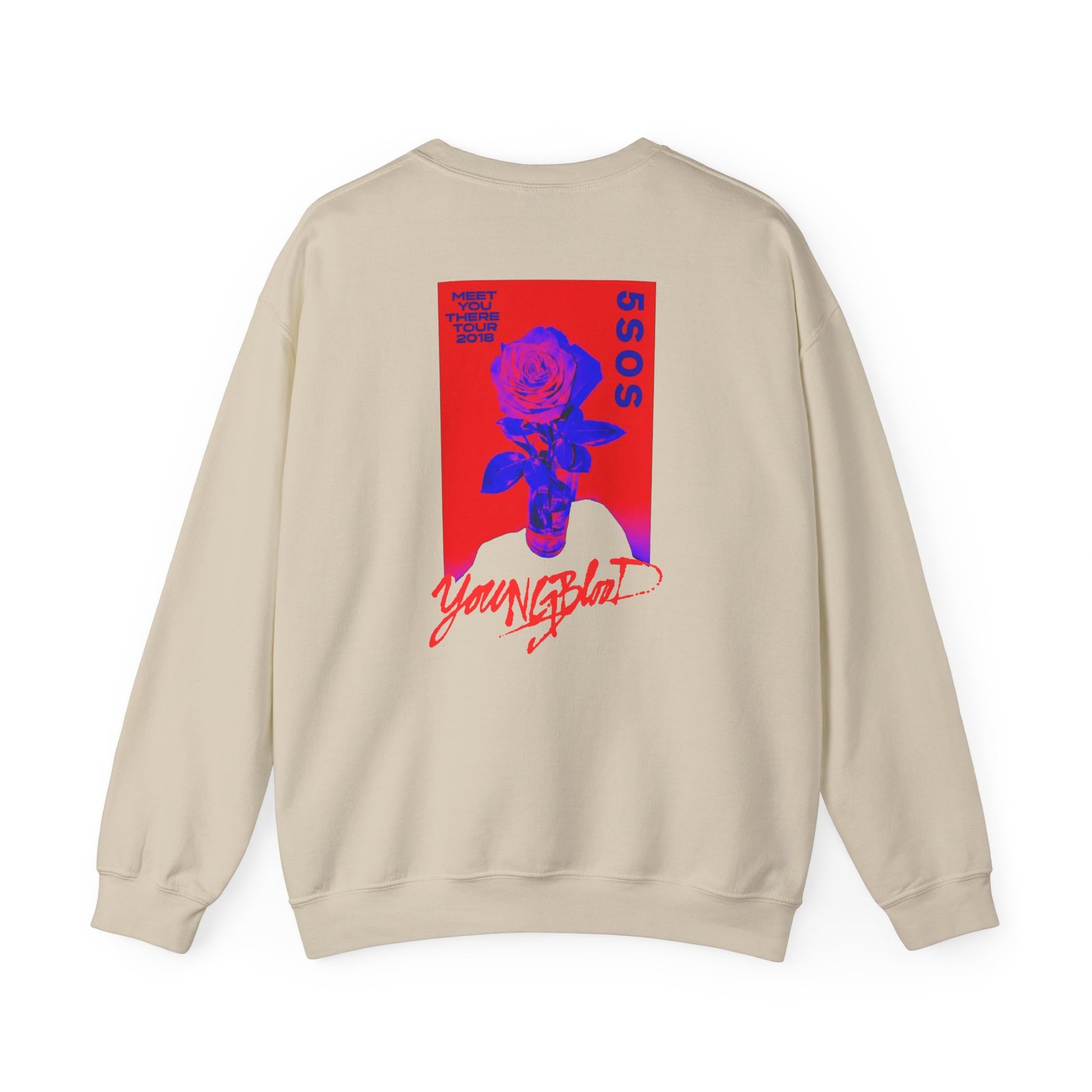 Ideal for any situation, a 5sos Tour Youngblood Logo Rose unisex heavy blend crewneck sweatshirt is pure comfort. These garments are made from polyester and cotton. This combination helps designs come out looking fresh and beautiful. The collar is ribbed knit, so it retains its shape even after washing. There are no itchy side seams on these sweaters.