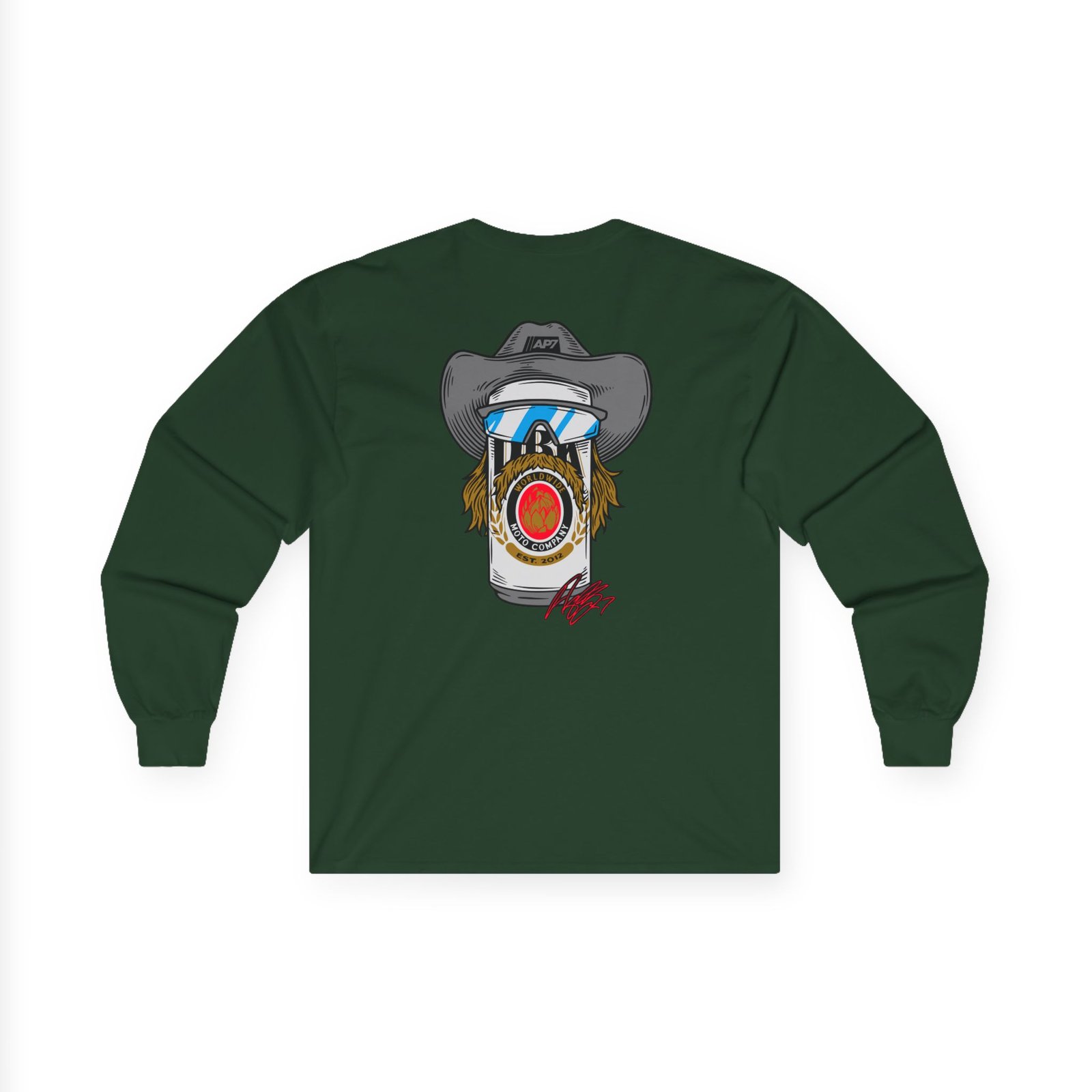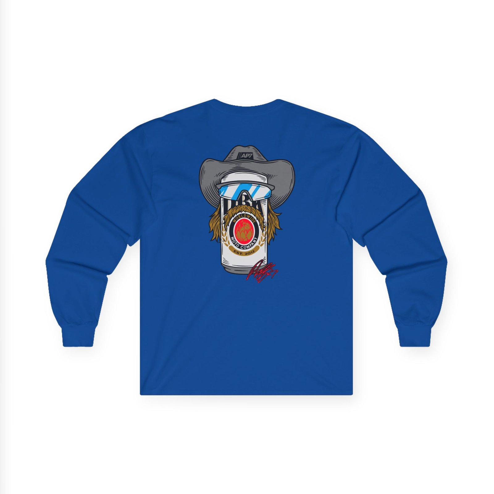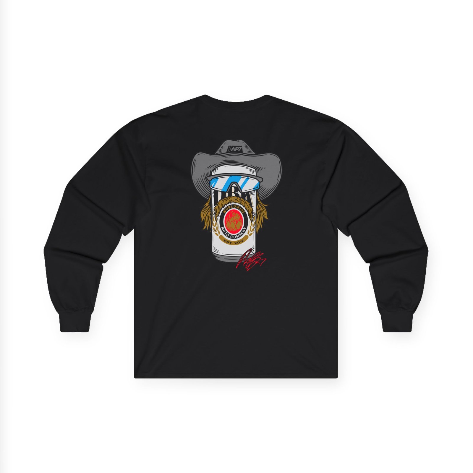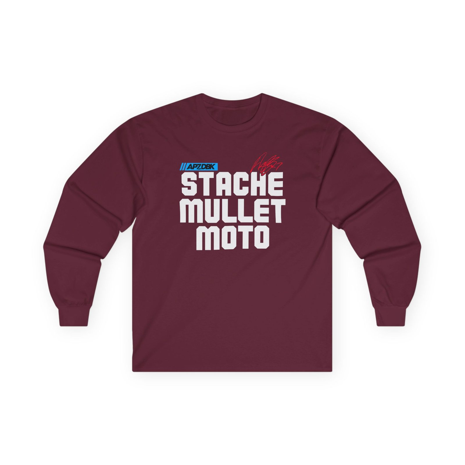 A bit more formal than a standard-issue t-shirt, the Aaron Plessinger Stache Mullet Moto ultra cotton long sleeve tee is a clear comfort winner. The sleeves also act as a nice frame. There are no side seams. The shoulders are taped for improved durability. This makes for a good fitting around the shoulders and neck. The cotton used for these shirts is environmentally friendly.