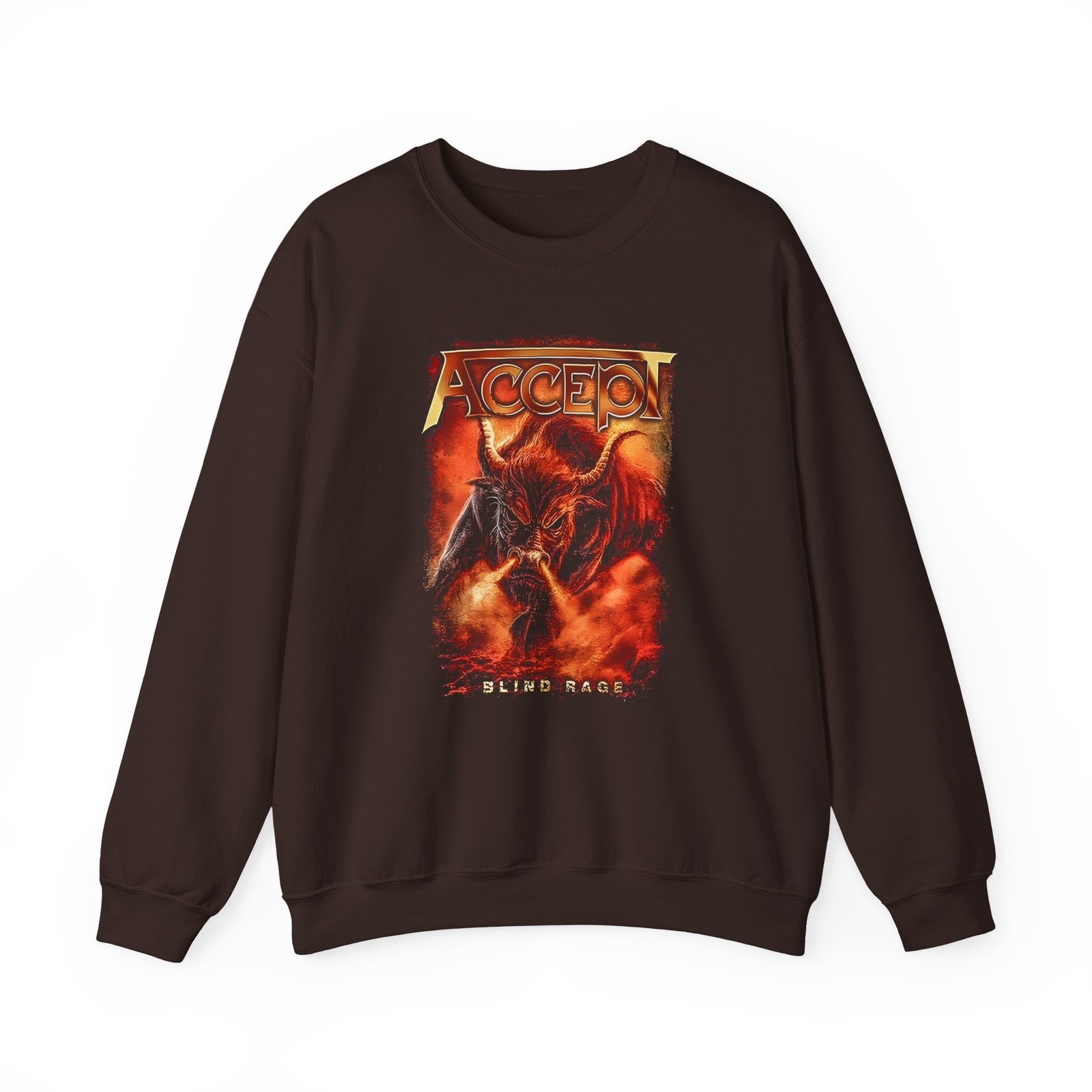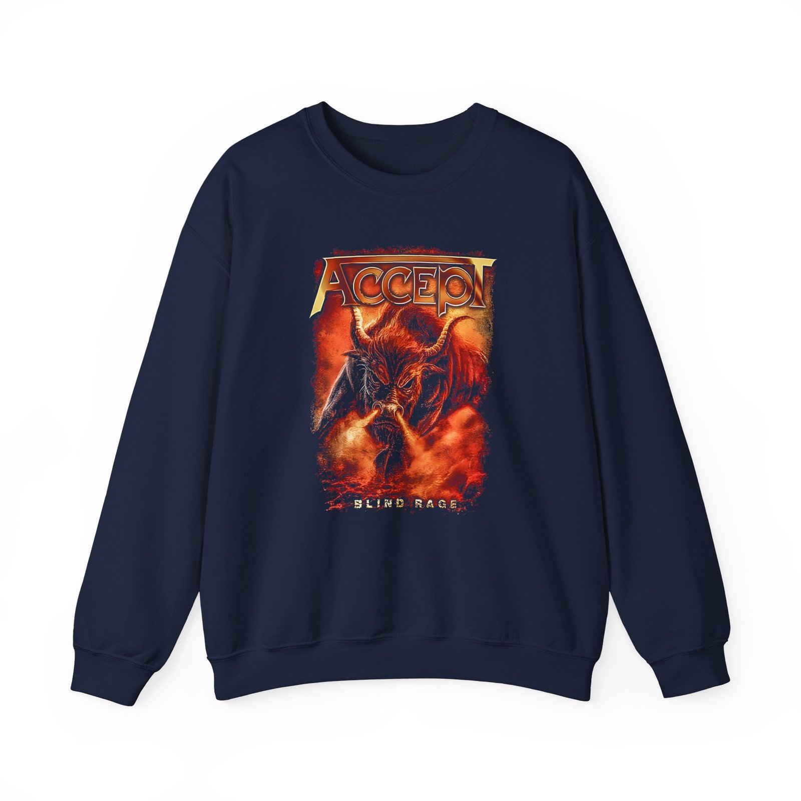 Ideal for any situation, a Accept Blind Rage II unisex heavy blend crewneck sweatshirt is pure comfort. These garments are made from polyester and cotton. This combination helps designs come out looking fresh and beautiful. The collar is ribbed knit, so it retains its shape even after washing. There are no itchy side seams on these sweaters.