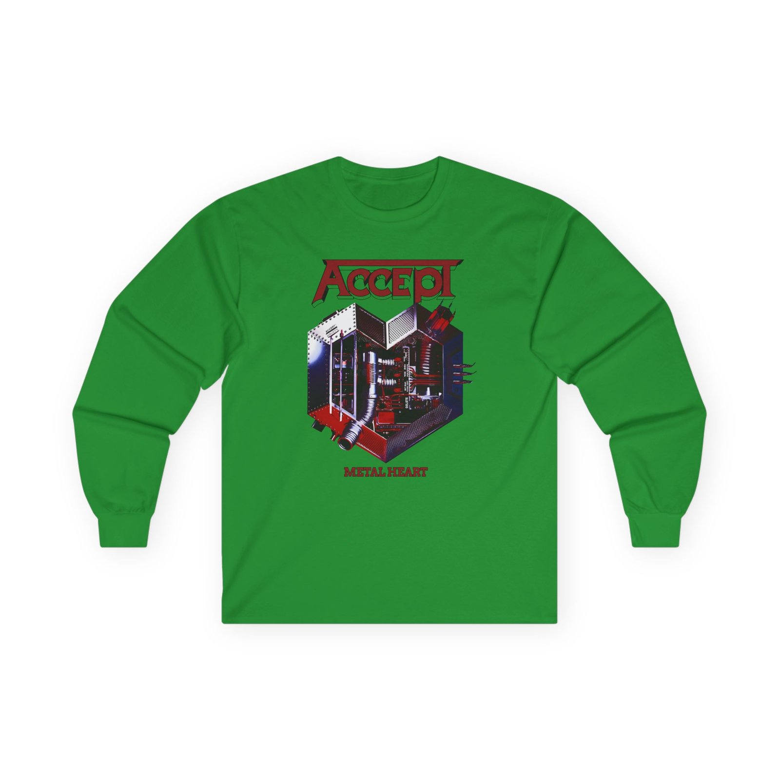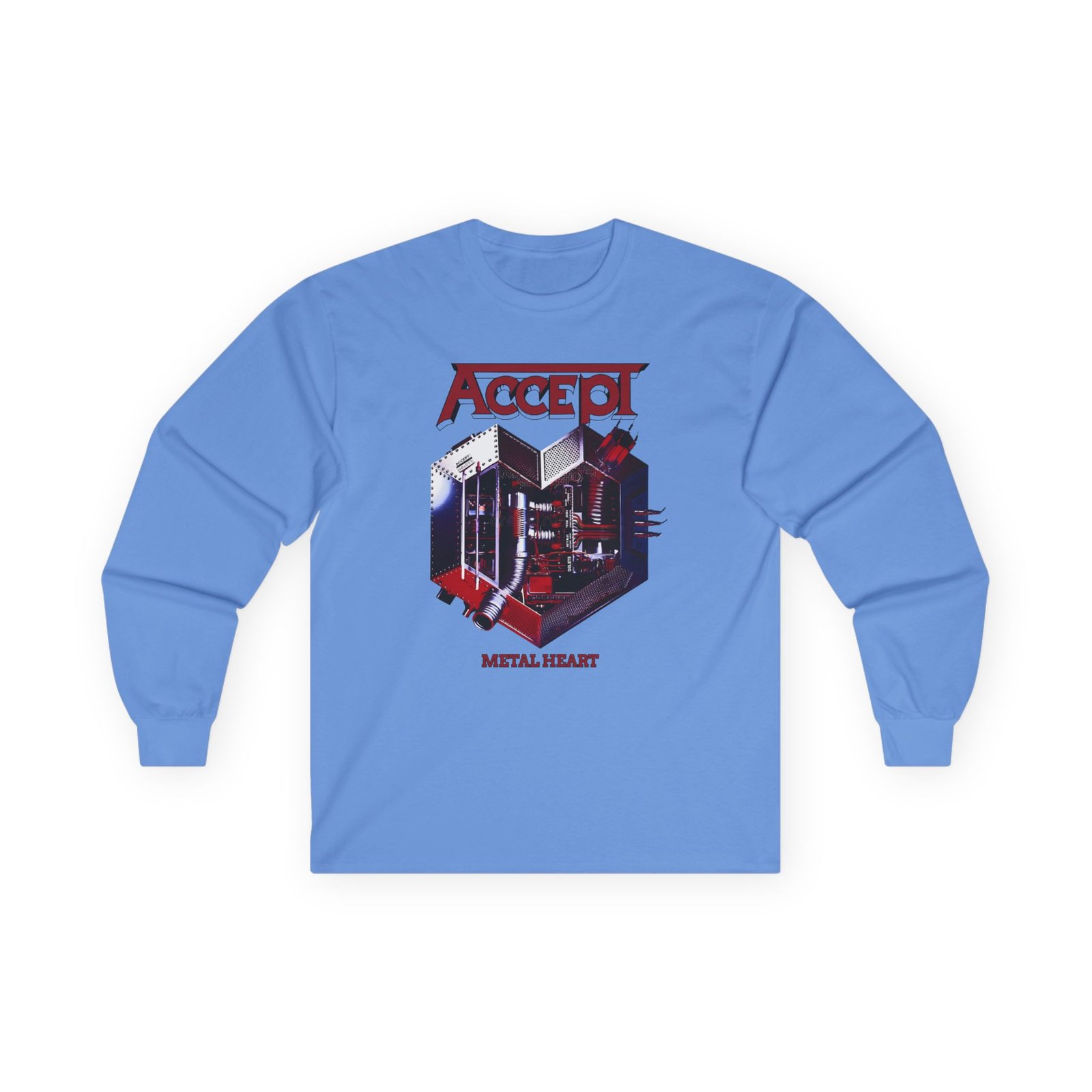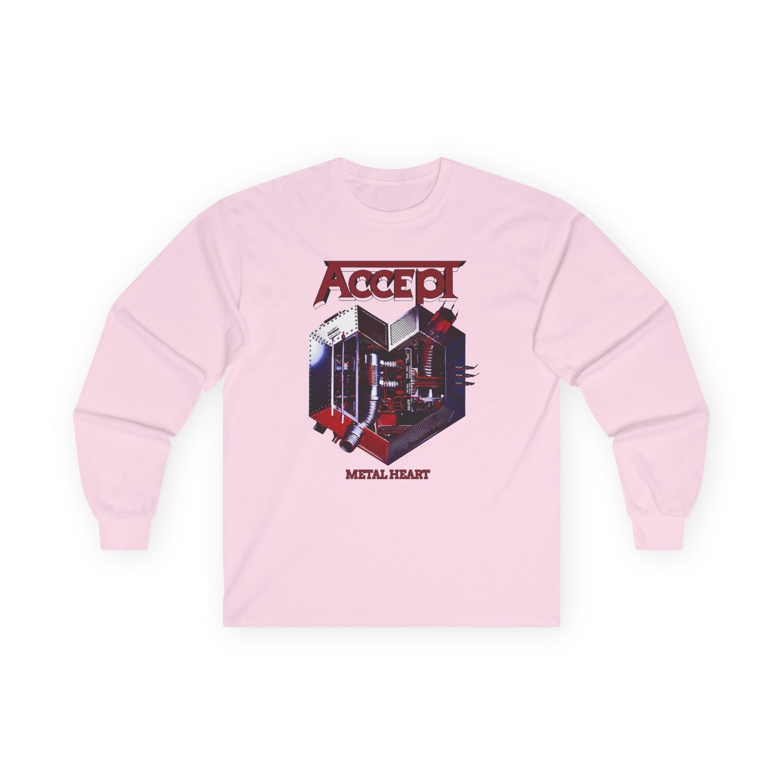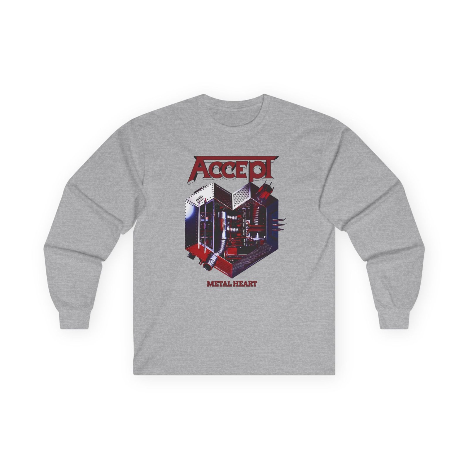A bit more formal than a standard-issue t-shirt, the Accept Metal Heart 2 ultra cotton long sleeve tee is a clear comfort winner. The sleeves also act as a nice frame. There are no side seams. The shoulders are taped for improved durability. This makes for a good fitting around the shoulders and neck. The cotton used for these shirts is environmentally friendly.