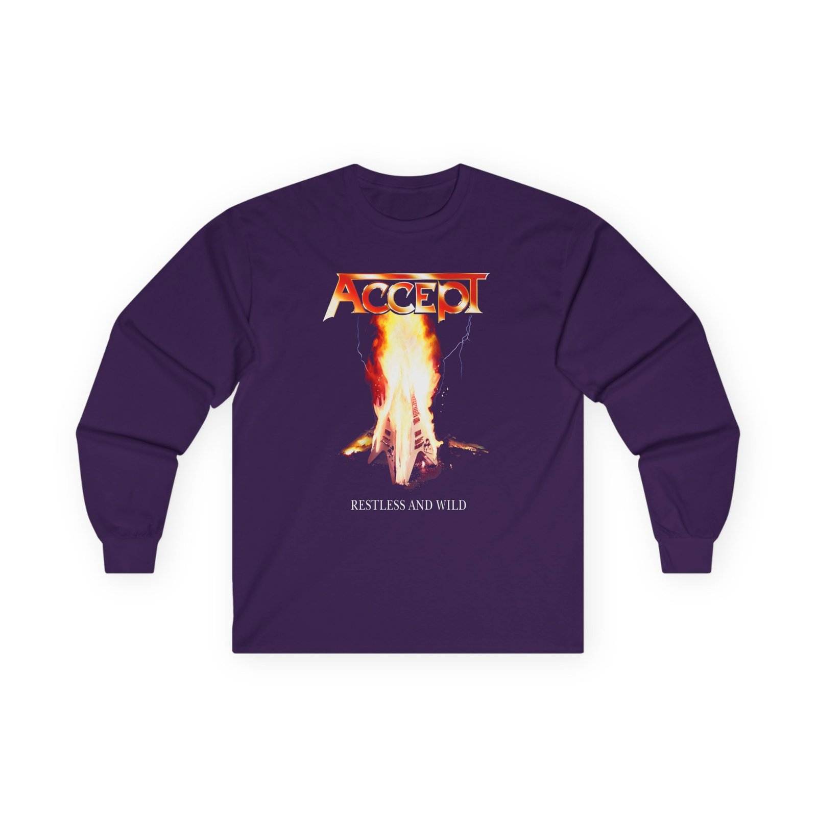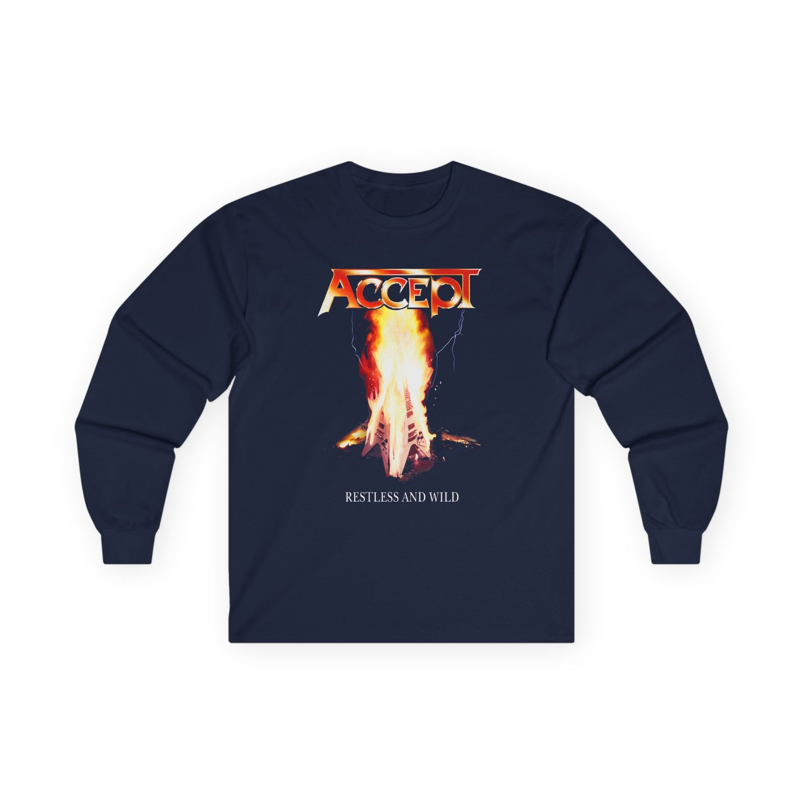 A bit more formal than a standard-issue t-shirt, the Accept Restless and Wild ultra cotton long sleeve tee is a clear comfort winner. The sleeves also act as a nice frame. There are no side seams. The shoulders are taped for improved durability. This makes for a good fitting around the shoulders and neck. The cotton used for these shirts is environmentally friendly.