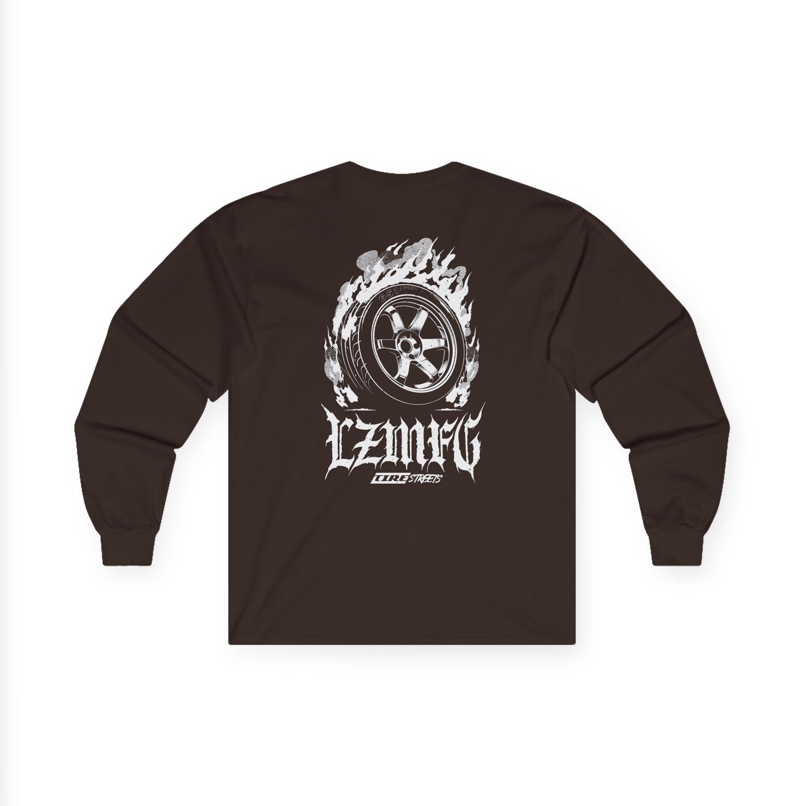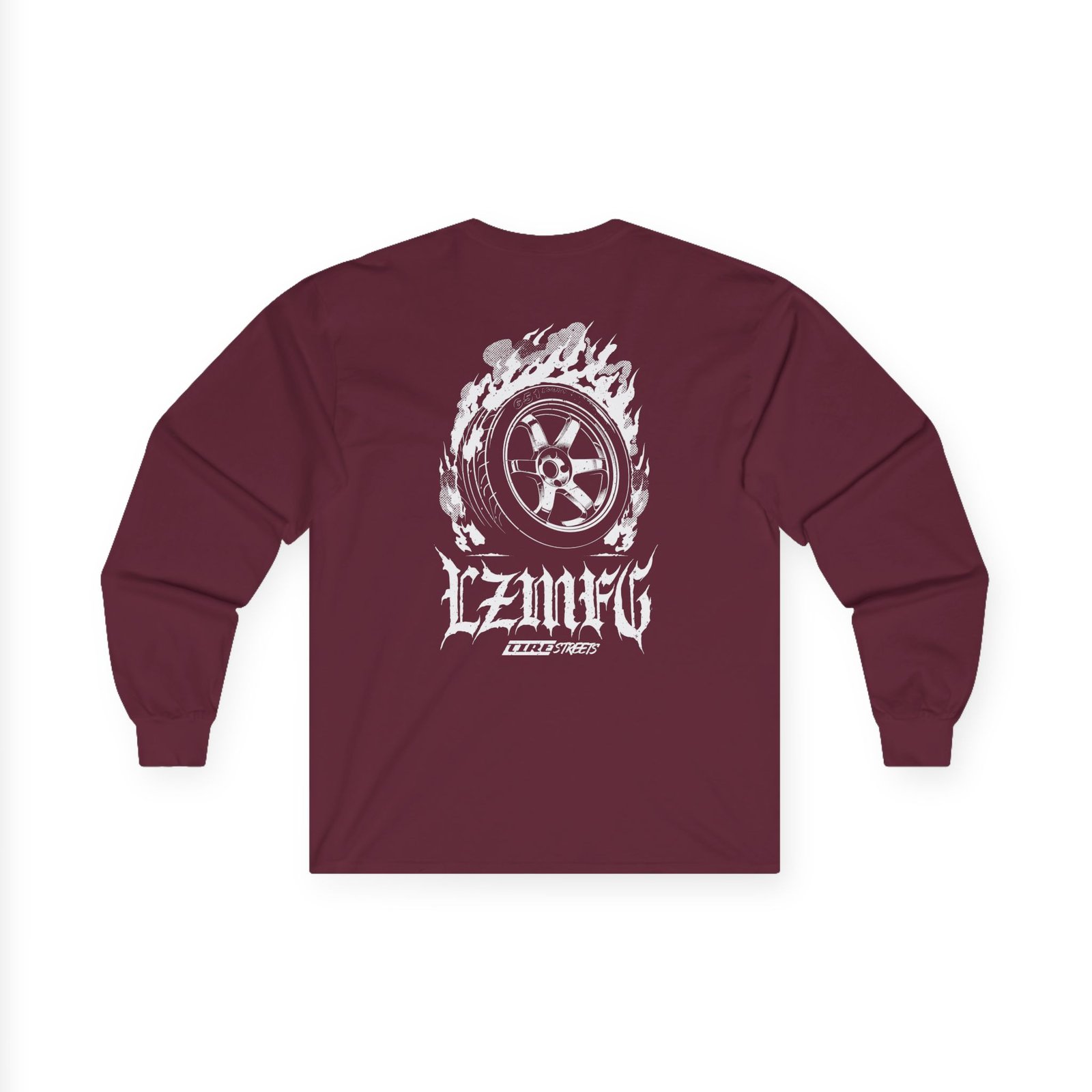 A bit more formal than a standard-issue t-shirt, the Adam LZ Tire Fire ultra cotton long sleeve tee is a clear comfort winner. The sleeves also act as a nice frame. There are no side seams. The shoulders are taped for improved durability. This makes for a good fitting around the shoulders and neck. The cotton used for these shirts is environmentally friendly.