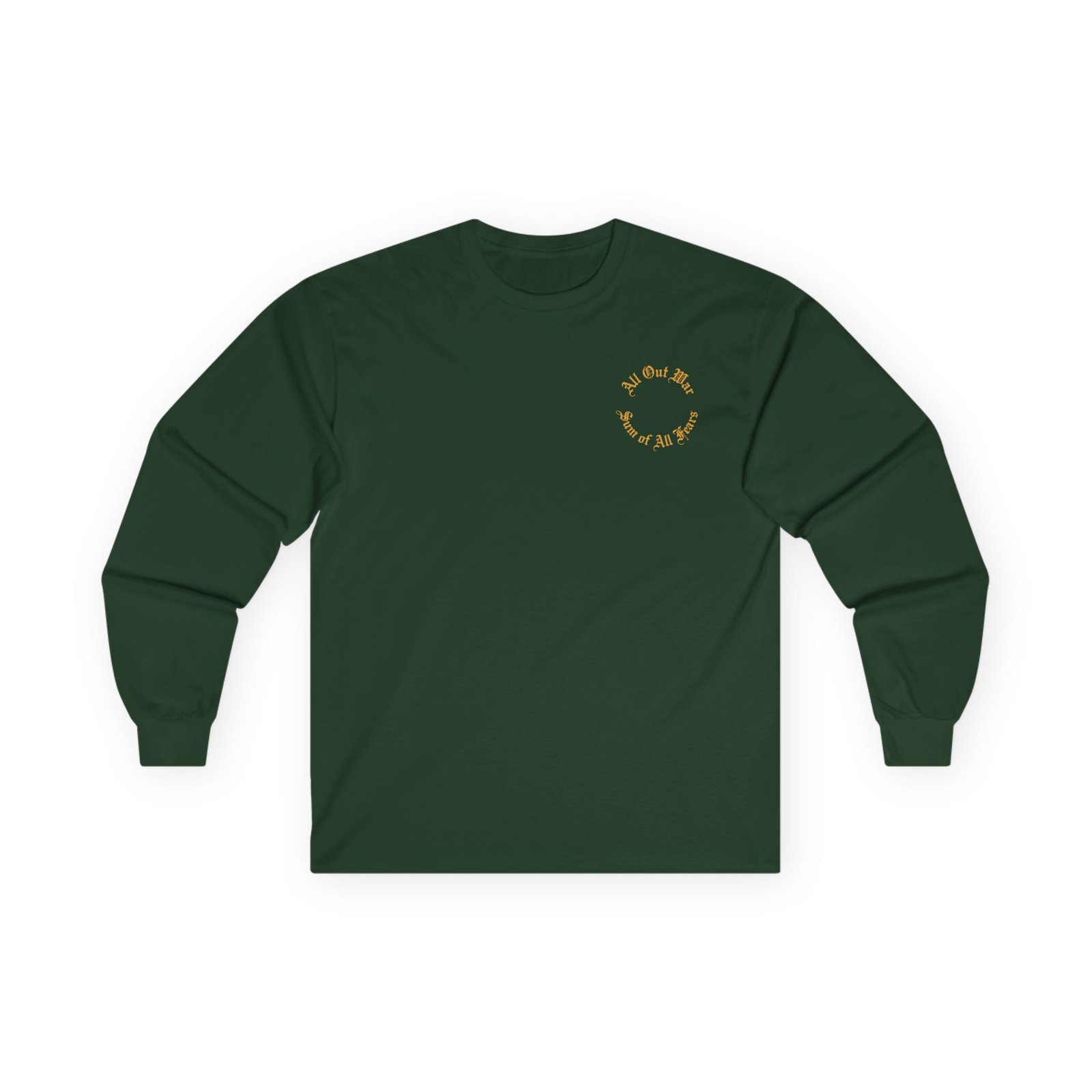 A bit more formal than a standard-issue t-shirt, the All Out War Destined ultra cotton long sleeve tee is a clear comfort winner. The sleeves also act as a nice frame. There are no side seams. The shoulders are taped for improved durability. This makes for a good fitting around the shoulders and neck. The cotton used for these shirts is environmentally friendly.