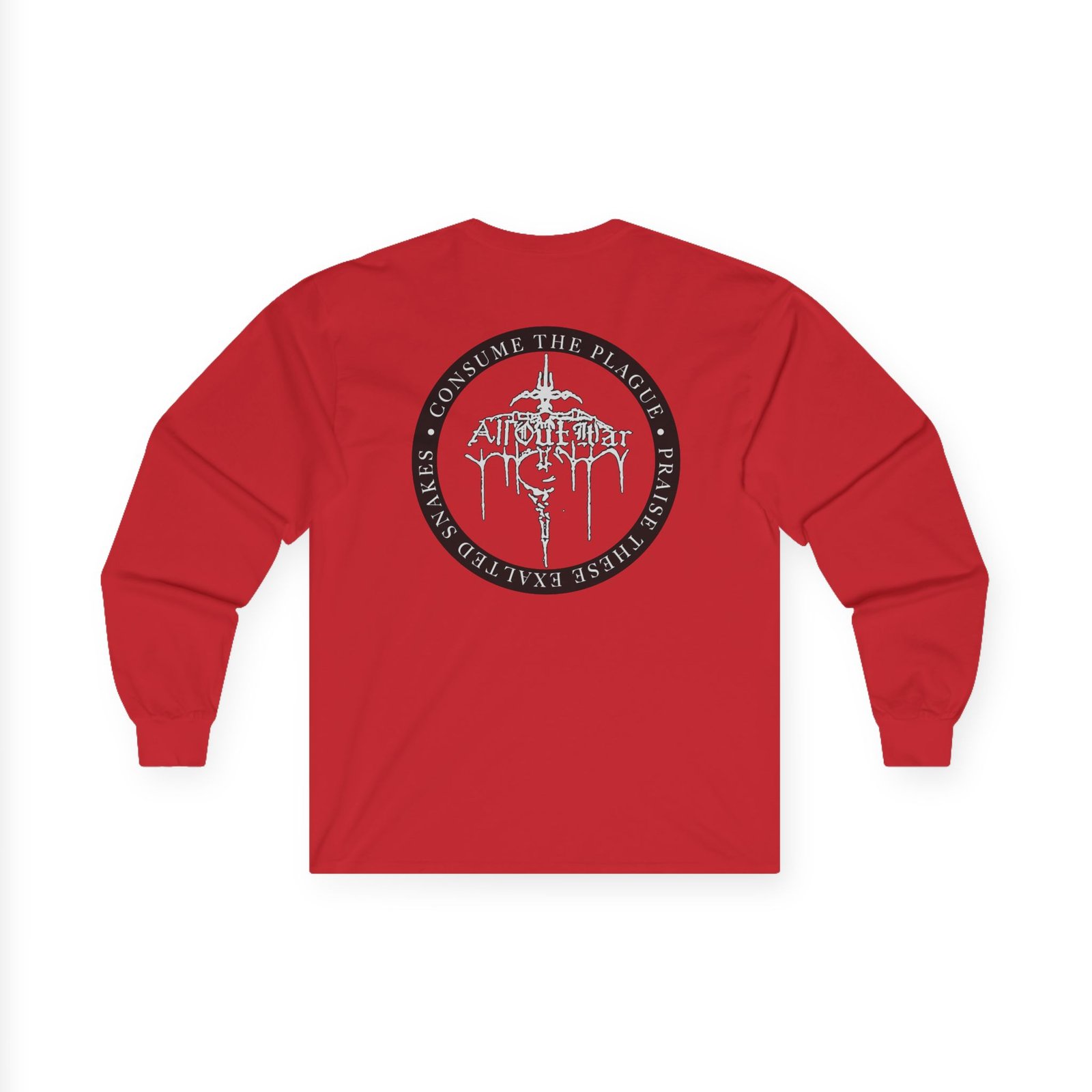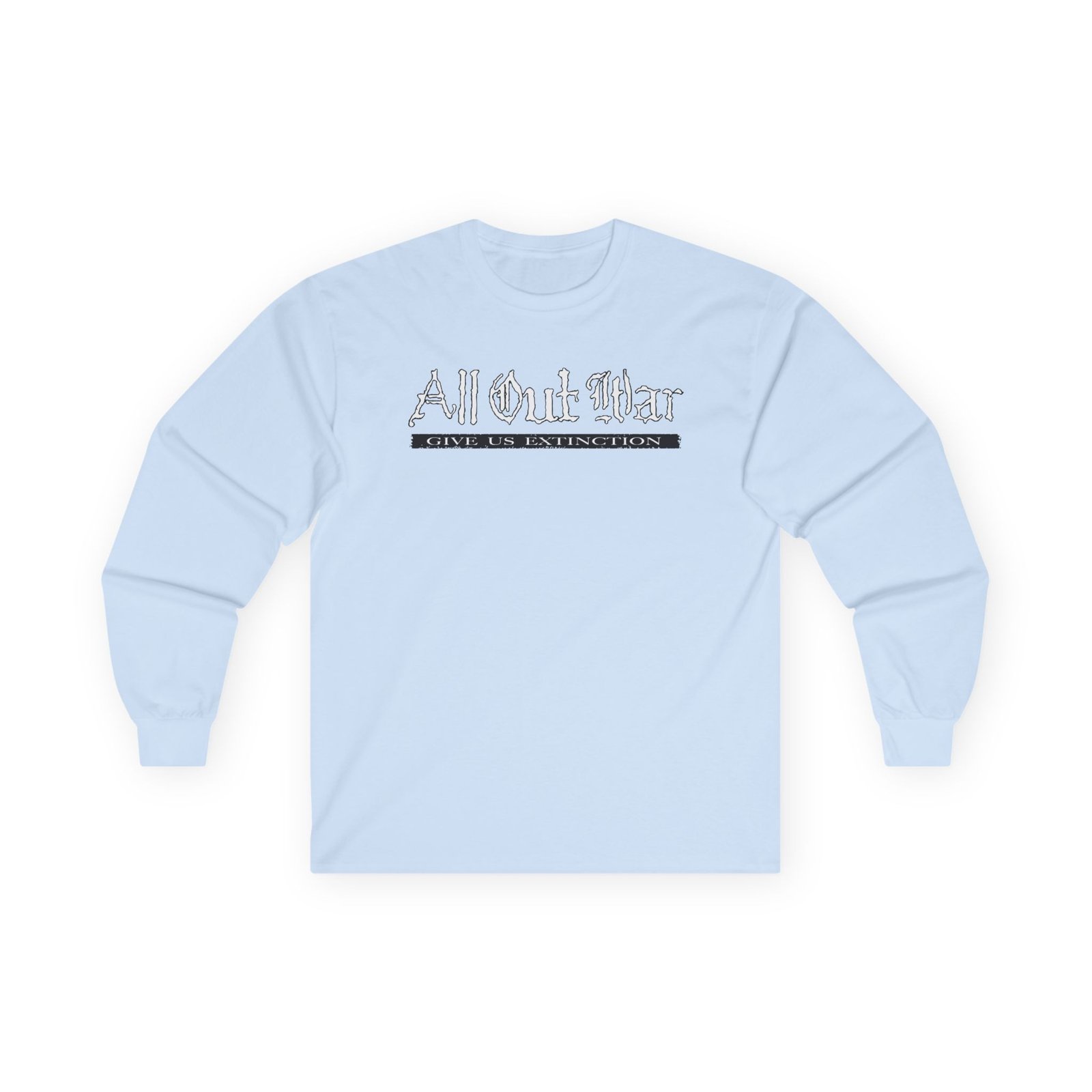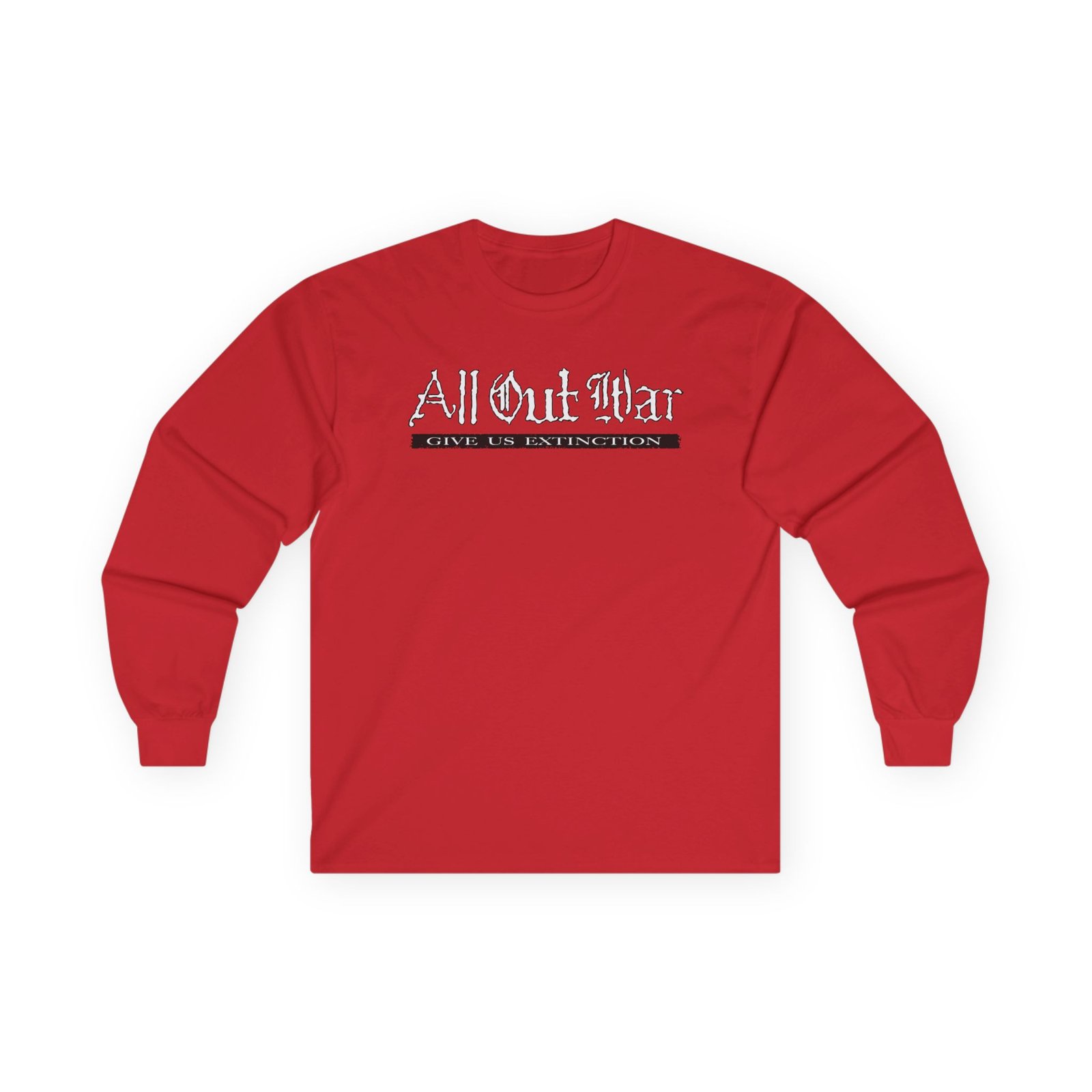 A bit more formal than a standard-issue t-shirt, the All Out War Extinction ultra cotton long sleeve tee is a clear comfort winner. The sleeves also act as a nice frame. There are no side seams. The shoulders are taped for improved durability. This makes for a good fitting around the shoulders and neck. The cotton used for these shirts is environmentally friendly.