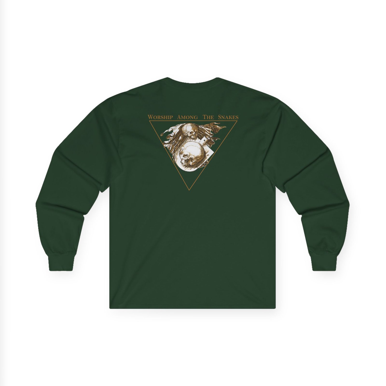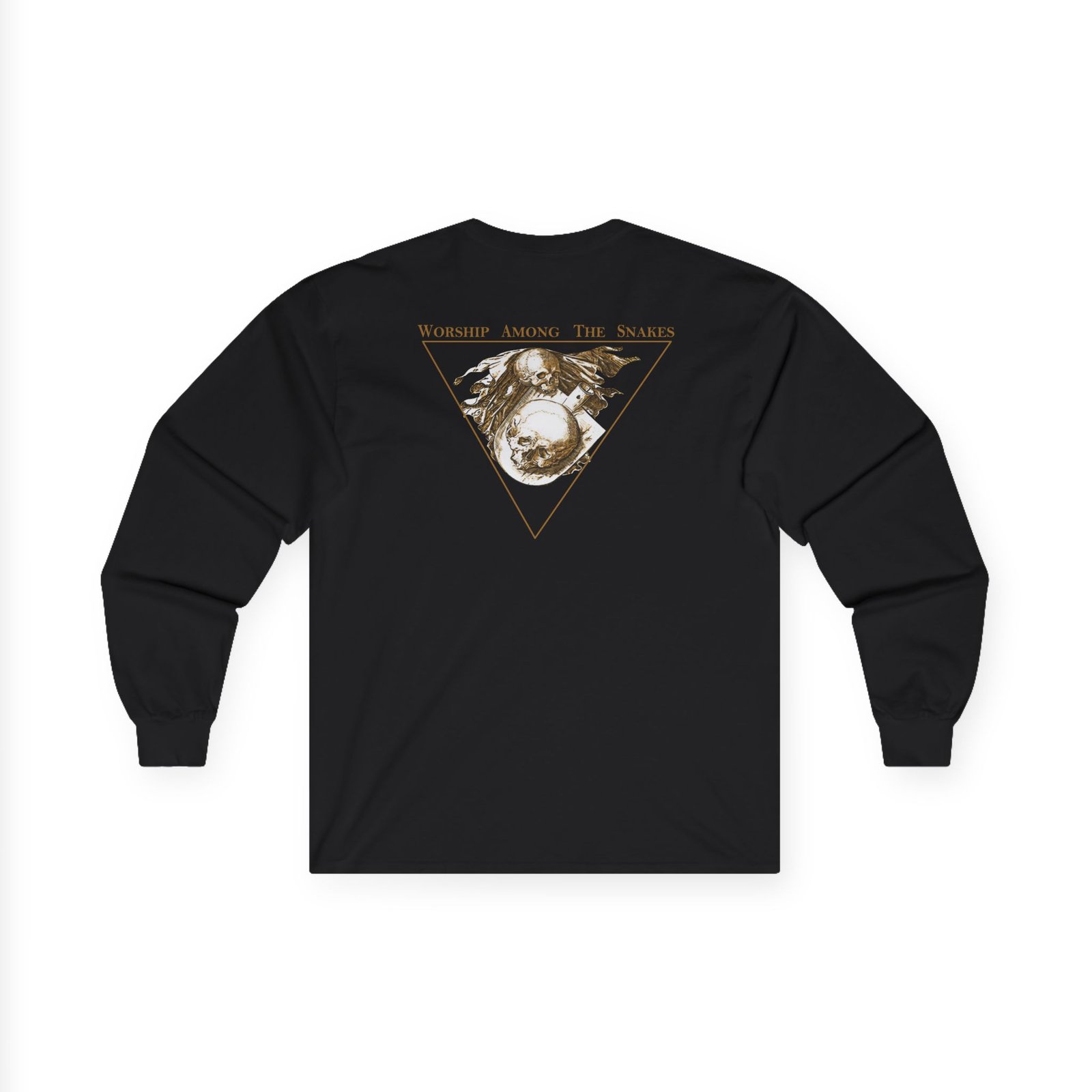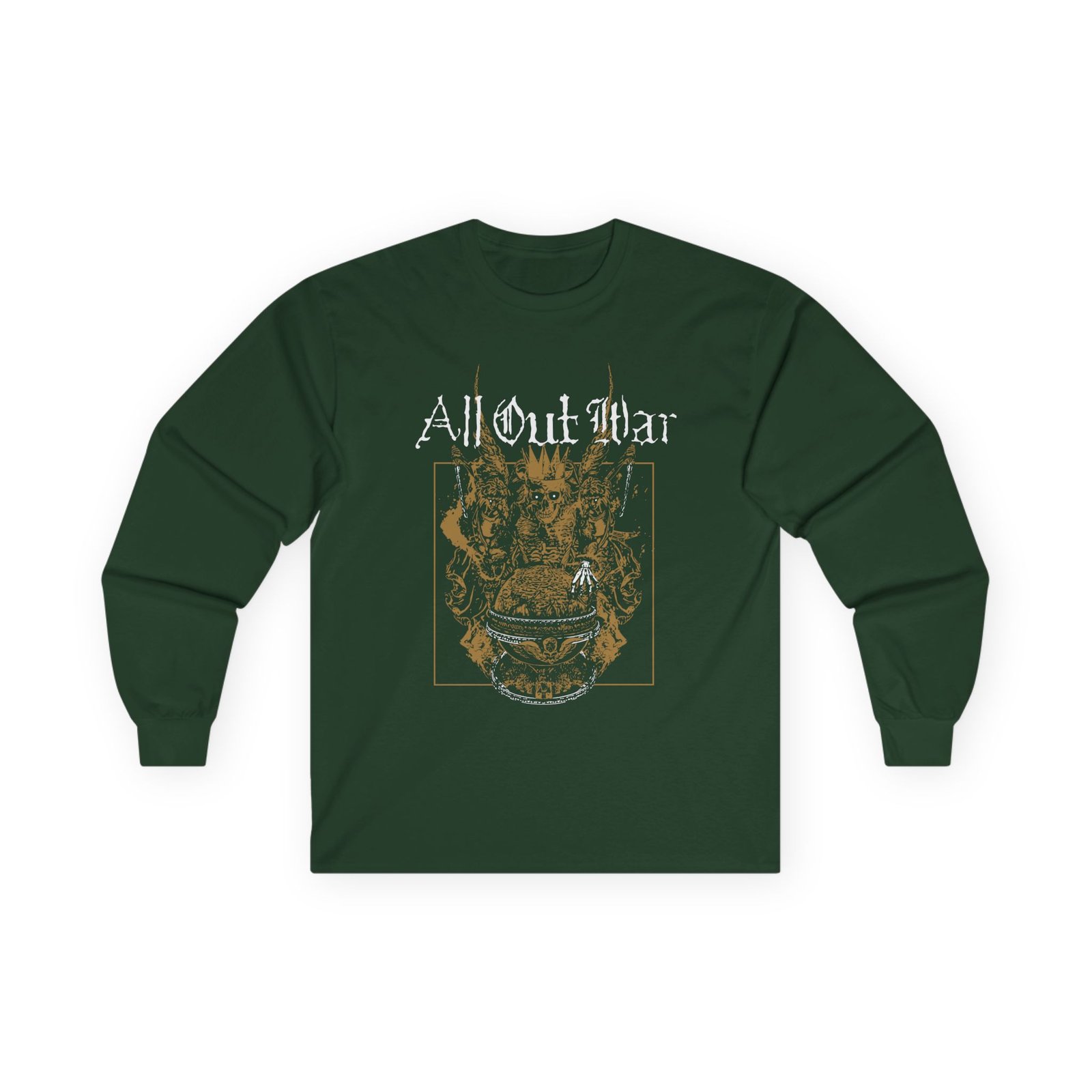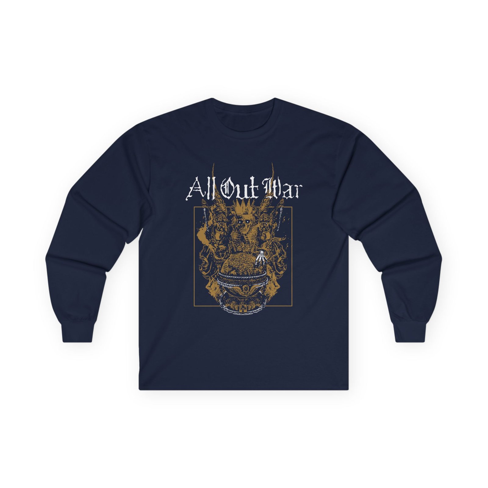 A bit more formal than a standard-issue t-shirt, the All Out War Worship ultra cotton long sleeve tee is a clear comfort winner. The sleeves also act as a nice frame. There are no side seams. The shoulders are taped for improved durability. This makes for a good fitting around the shoulders and neck. The cotton used for these shirts is environmentally friendly.