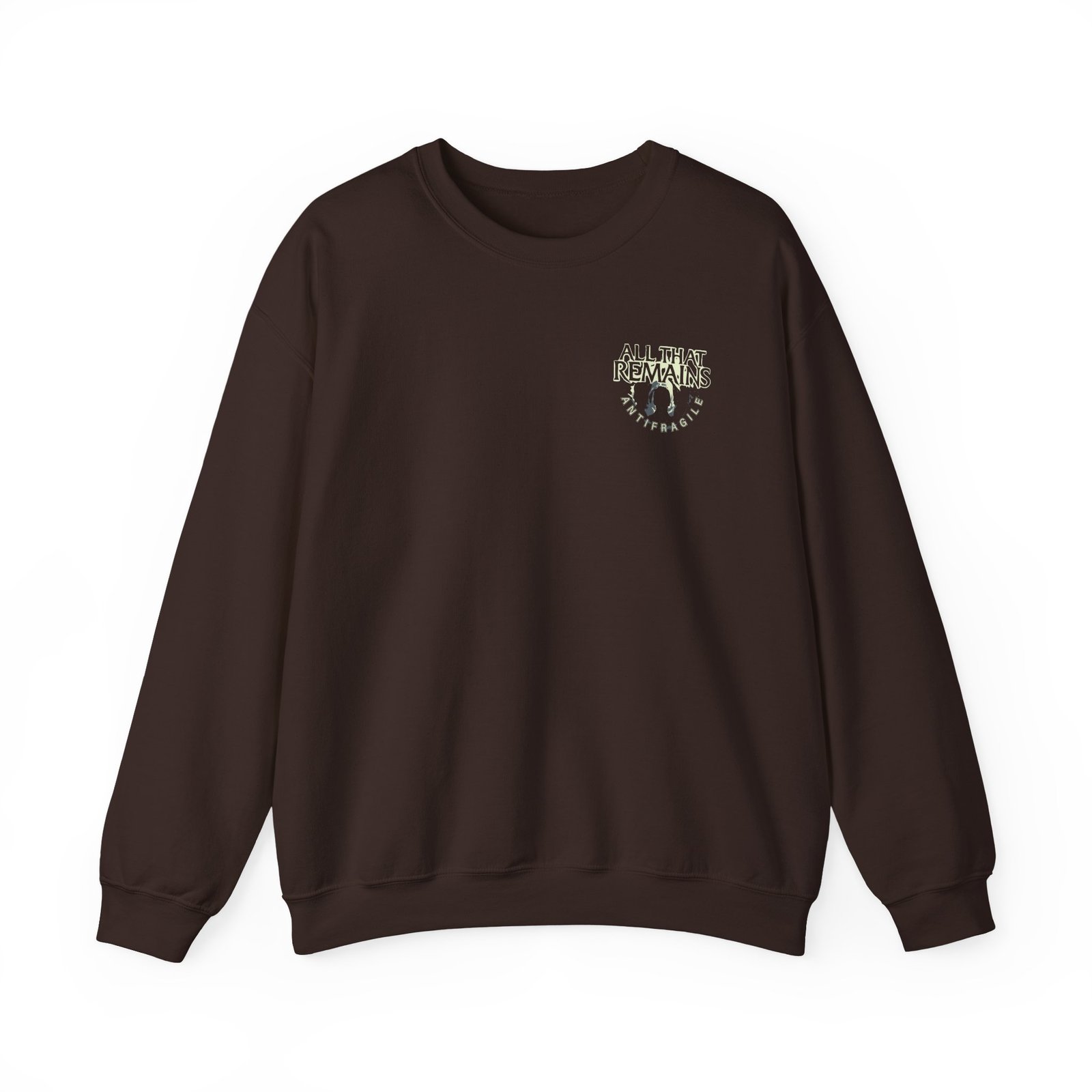 Ideal for any situation, a All That Remains Kerosene unisex heavy blend crewneck sweatshirt is pure comfort. These garments are made from polyester and cotton. This combination helps designs come out looking fresh and beautiful. The collar is ribbed knit, so it retains its shape even after washing. There are no itchy side seams on these sweaters.