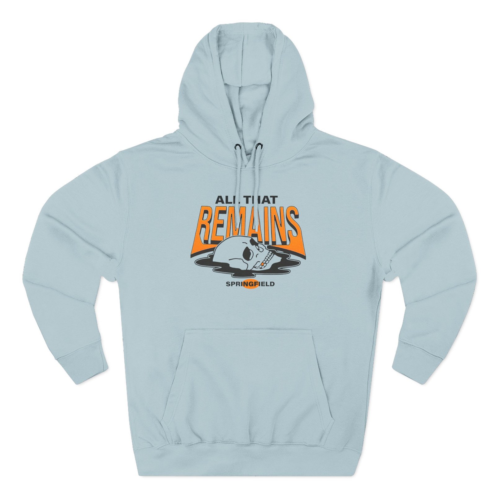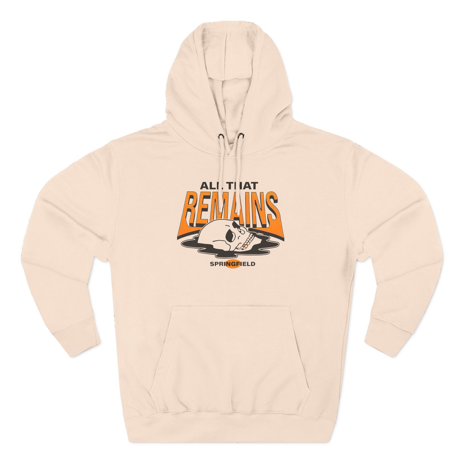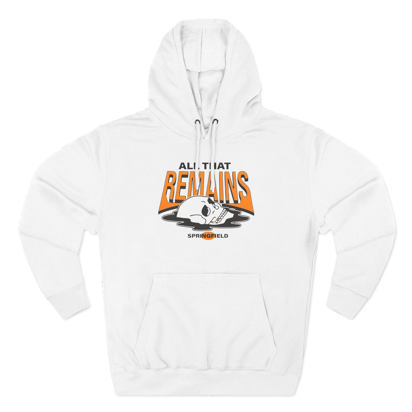 Beat the cold with this All That Remains Springfield Skull premium pullover hoodie that’s just the right layer of warm and cozy. Made with three-panel fleece lining, this pullover is double stitched for durability and roomy. Pick one in your favorite color to match your style.