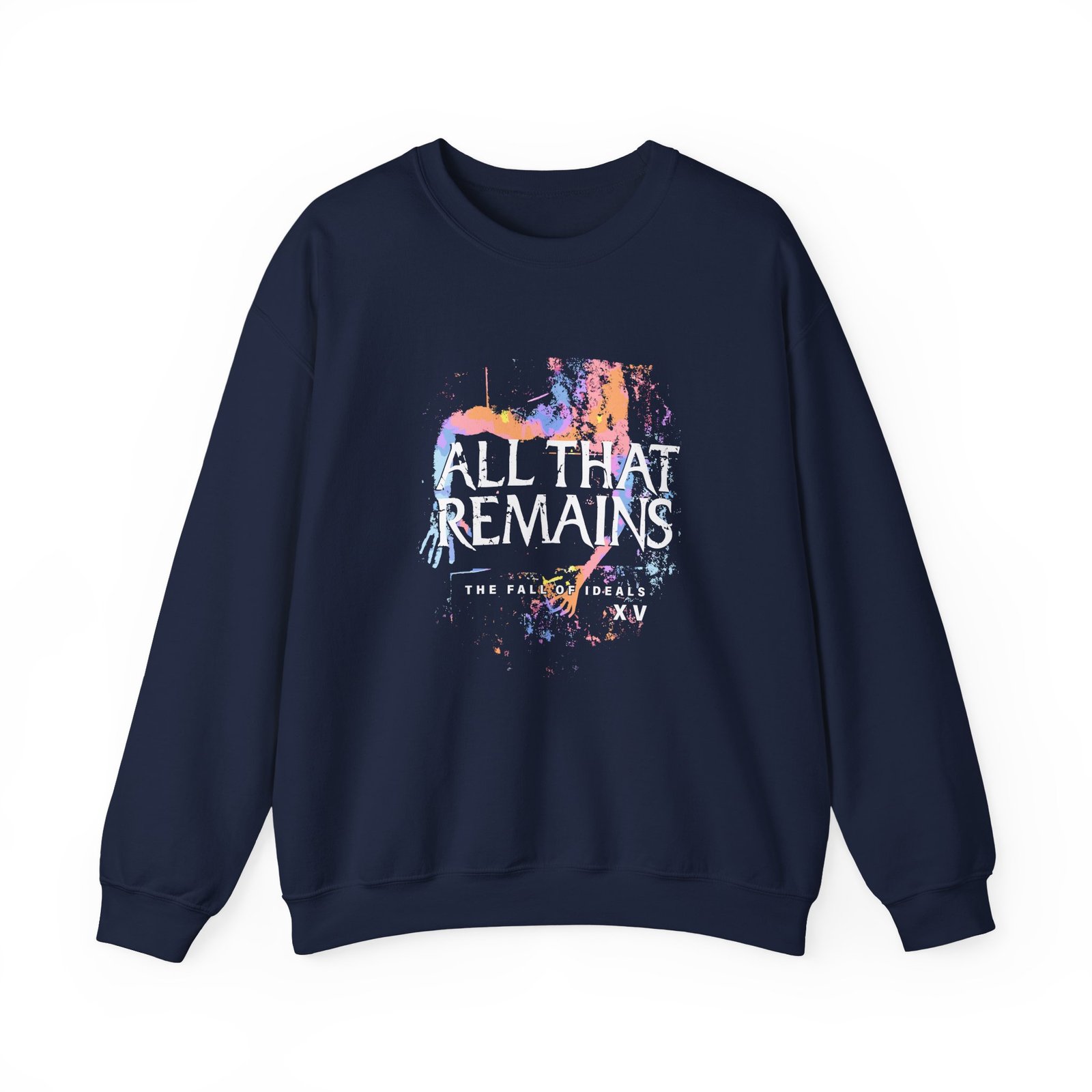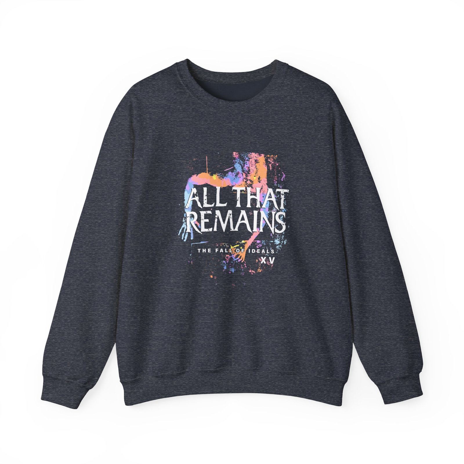 Ideal for any situation, a All That Remains the Fall of Ideals Xv Anniversary unisex heavy blend crewneck sweatshirt is pure comfort. These garments are made from polyester and cotton. This combination helps designs come out looking fresh and beautiful. The collar is ribbed knit, so it retains its shape even after washing. There are no itchy side seams on these sweaters.