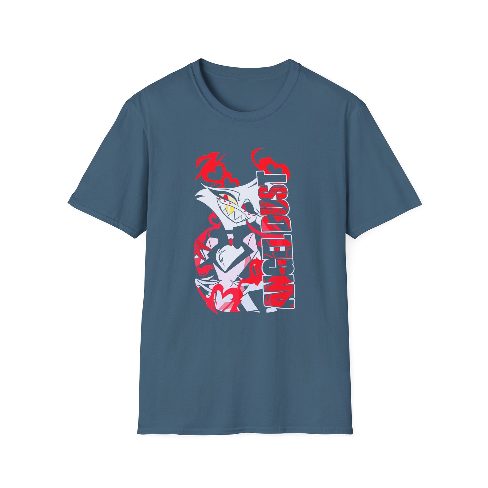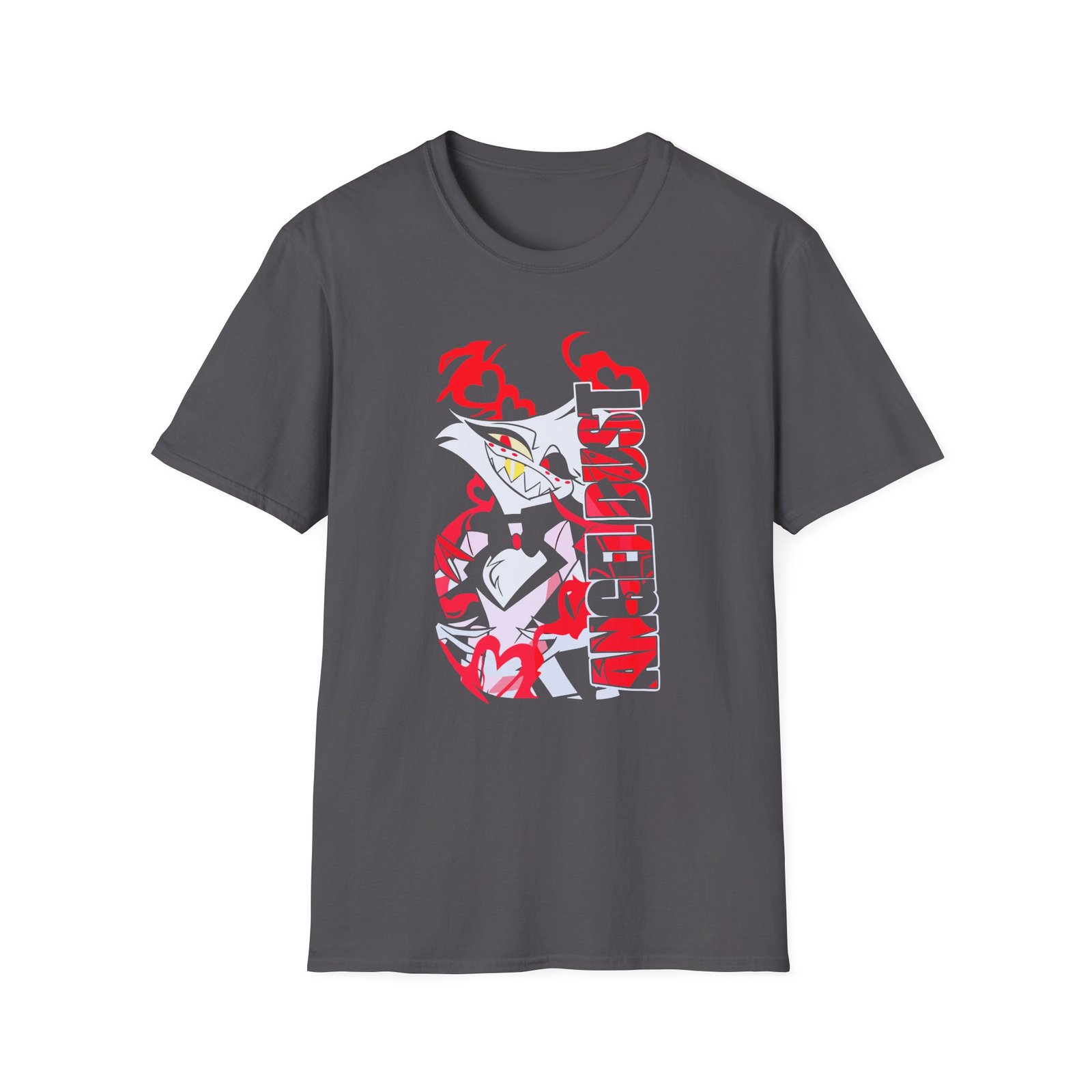 The Angel Dust unisex soft-style t-shirt puts a new spin on casual comfort. Made from very soft materials, this tee is 100% cotton for solid colors. Heather colors and sports grey include polyester. The shoulders have twill tape for improved durability. There are no side seams. The collar is made with ribbed knitting to prevent curling damage.