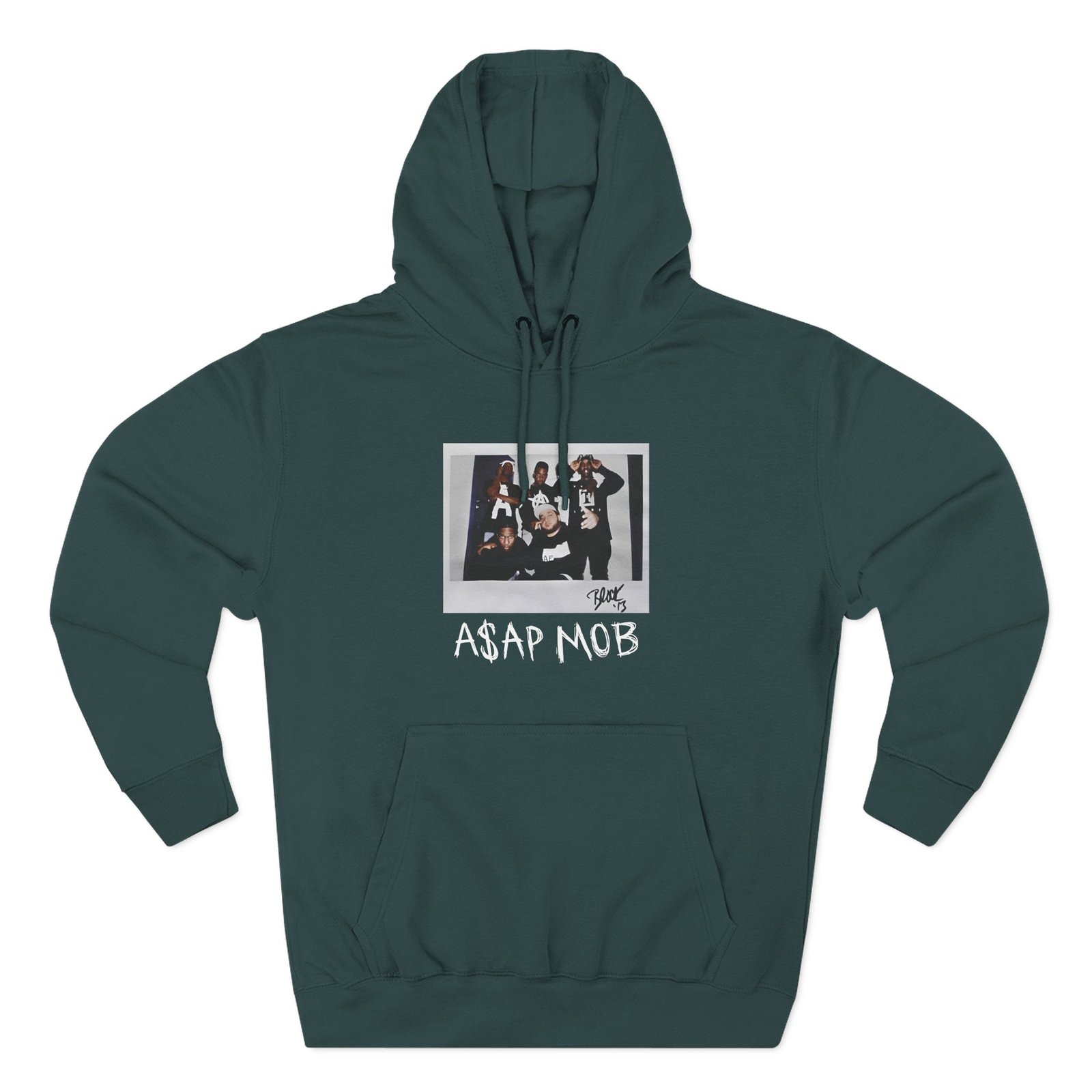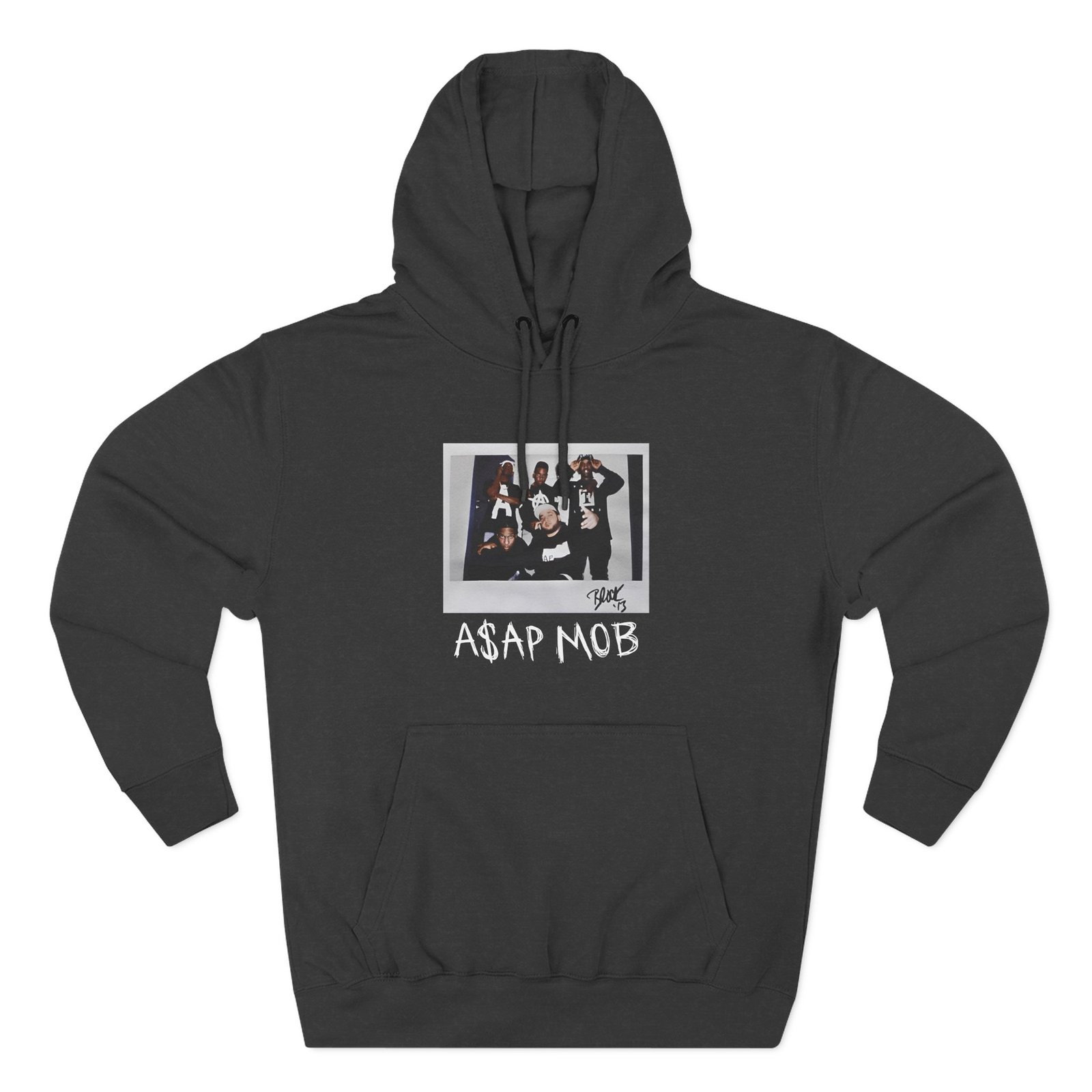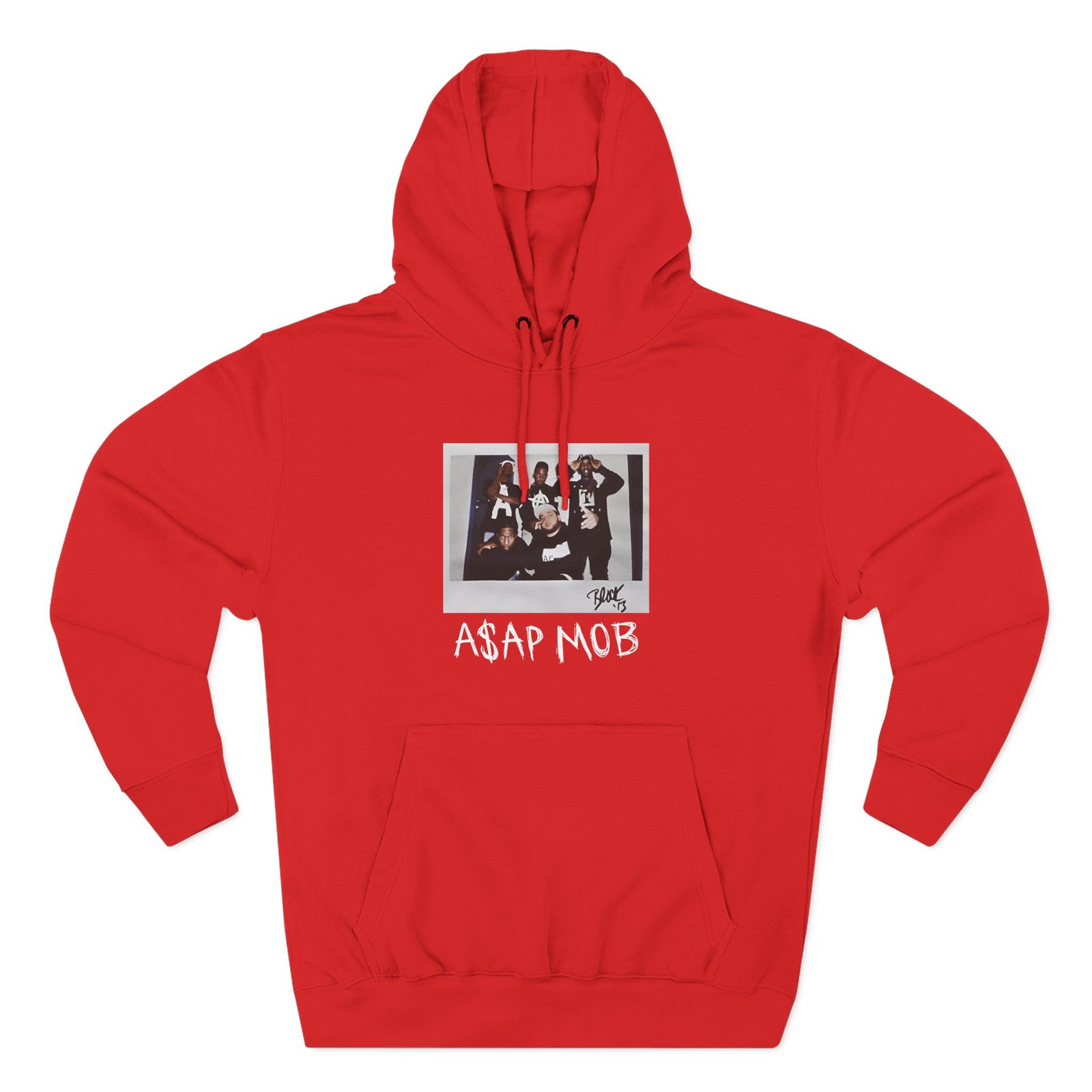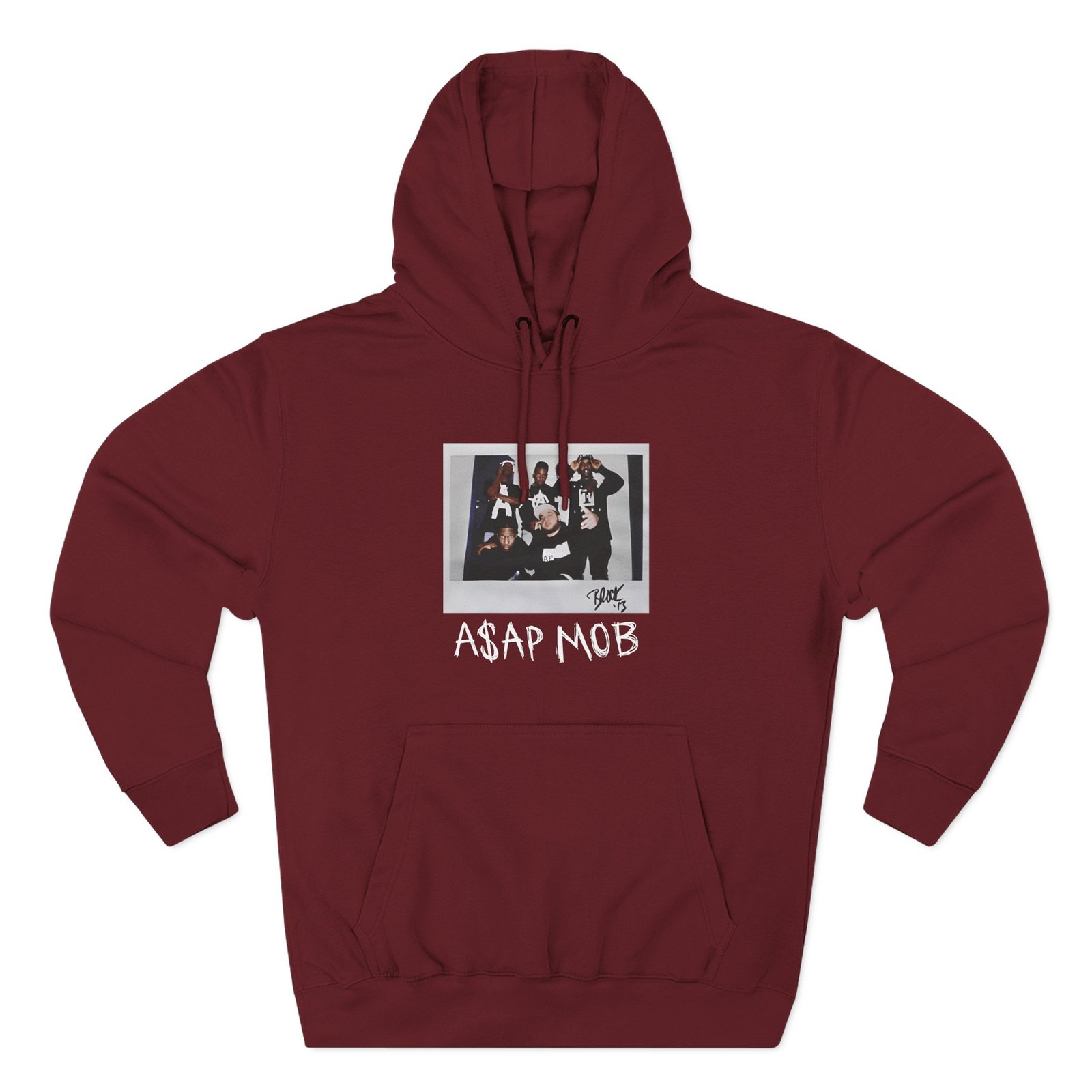 Beat the cold with this Asap Mob Og 2015 Block 13 premium pullover hoodie that’s just the right layer of warm and cozy. Made with three-panel fleece lining, this pullover is double stitched for durability and roomy. Pick one in your favorite color to match your style.