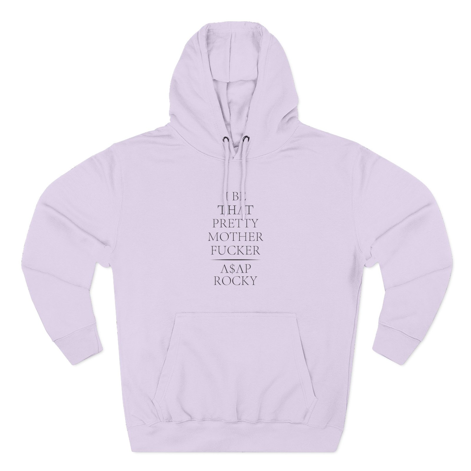 Beat the cold with this Asap Rocky I Be That Pretty Mother Fucker premium pullover hoodie that’s just the right layer of warm and cozy. Made with three-panel fleece lining, this pullover is double stitched for durability and roomy. Pick one in your favorite color to match your style.