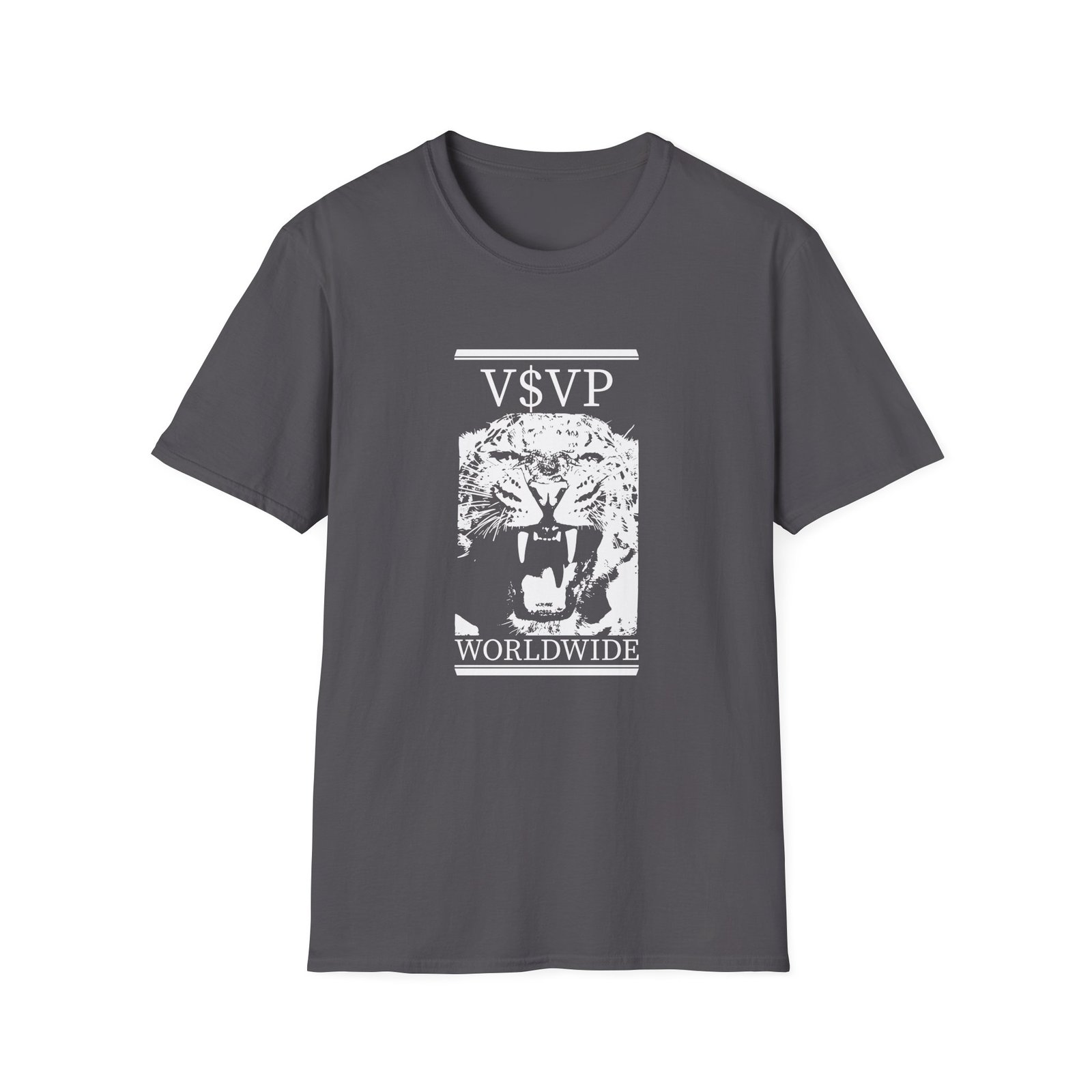 The Asap Rocky V$vp Worldwide unisex soft-style t-shirt puts a new spin on casual comfort. Made from very soft materials, this tee is 100% cotton for solid colors. Heather colors and sports grey include polyester. The shoulders have twill tape for improved durability. There are no side seams. The collar is made with ribbed knitting to prevent curling damage.