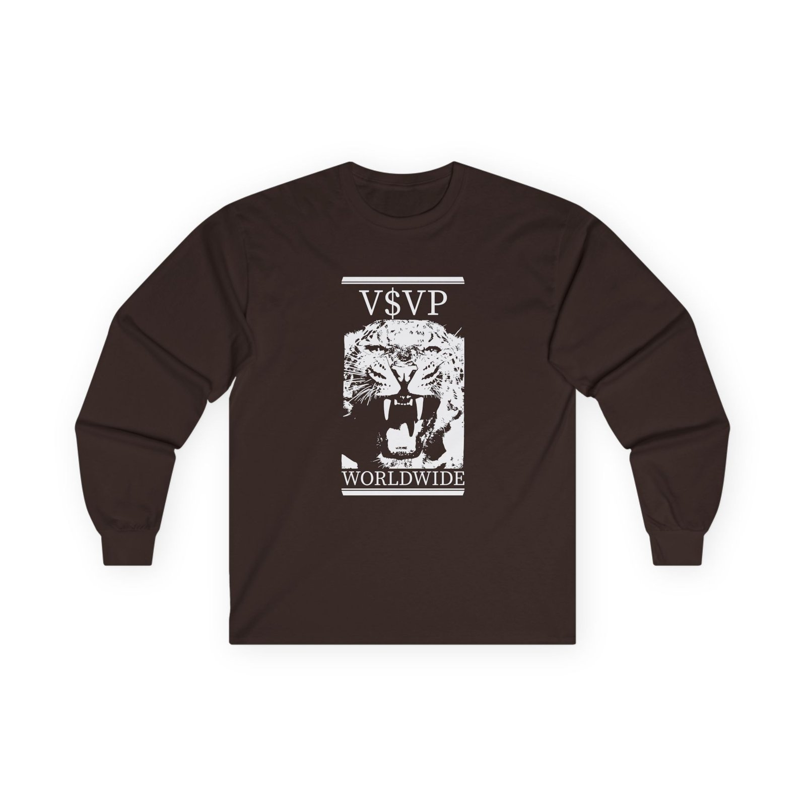 A bit more formal than a standard-issue t-shirt, the Asap Rocky V$vp Worldwide ultra cotton long sleeve tee is a clear comfort winner. The sleeves also act as a nice frame. There are no side seams. The shoulders are taped for improved durability. This makes for a good fitting around the shoulders and neck. The cotton used for these shirts is environmentally friendly.