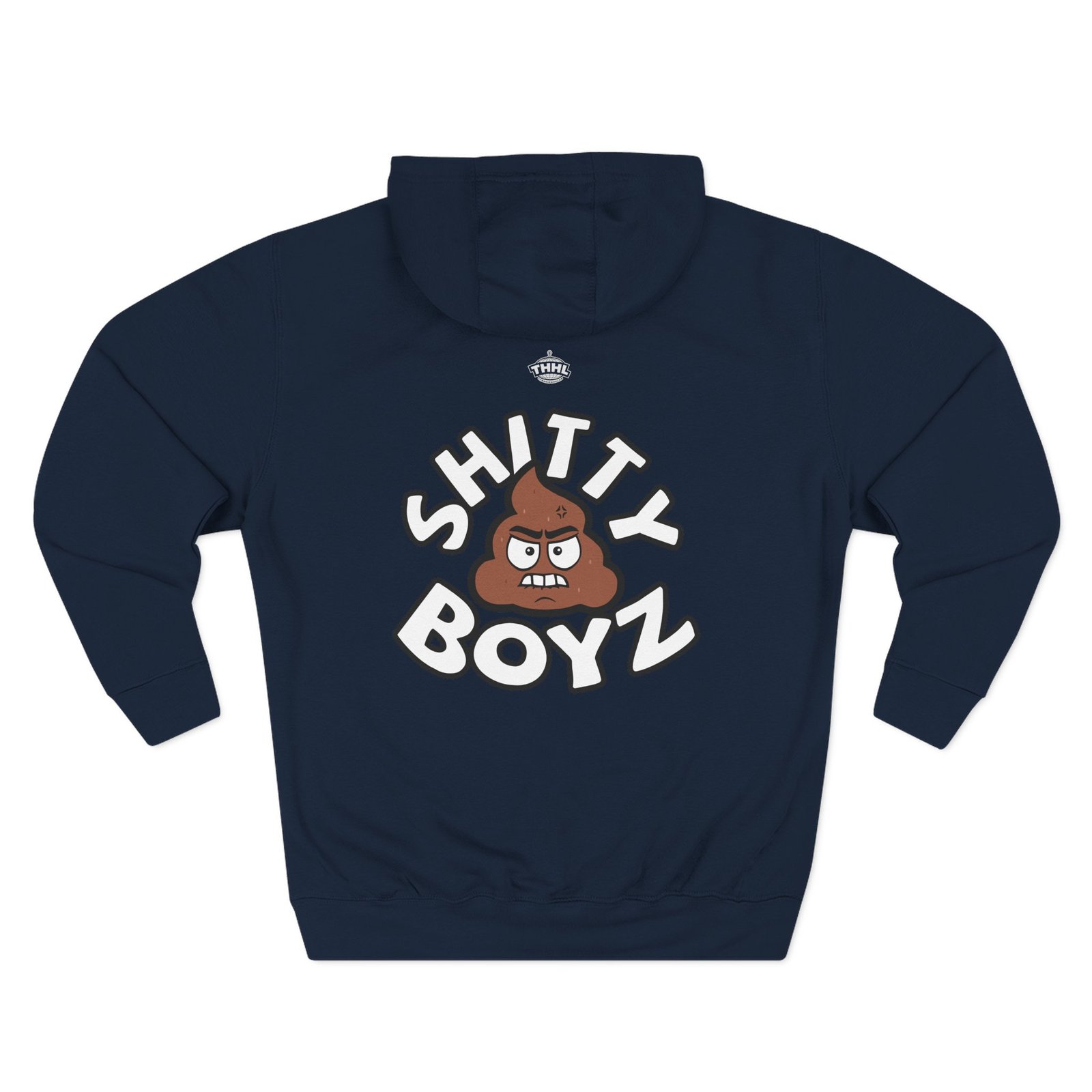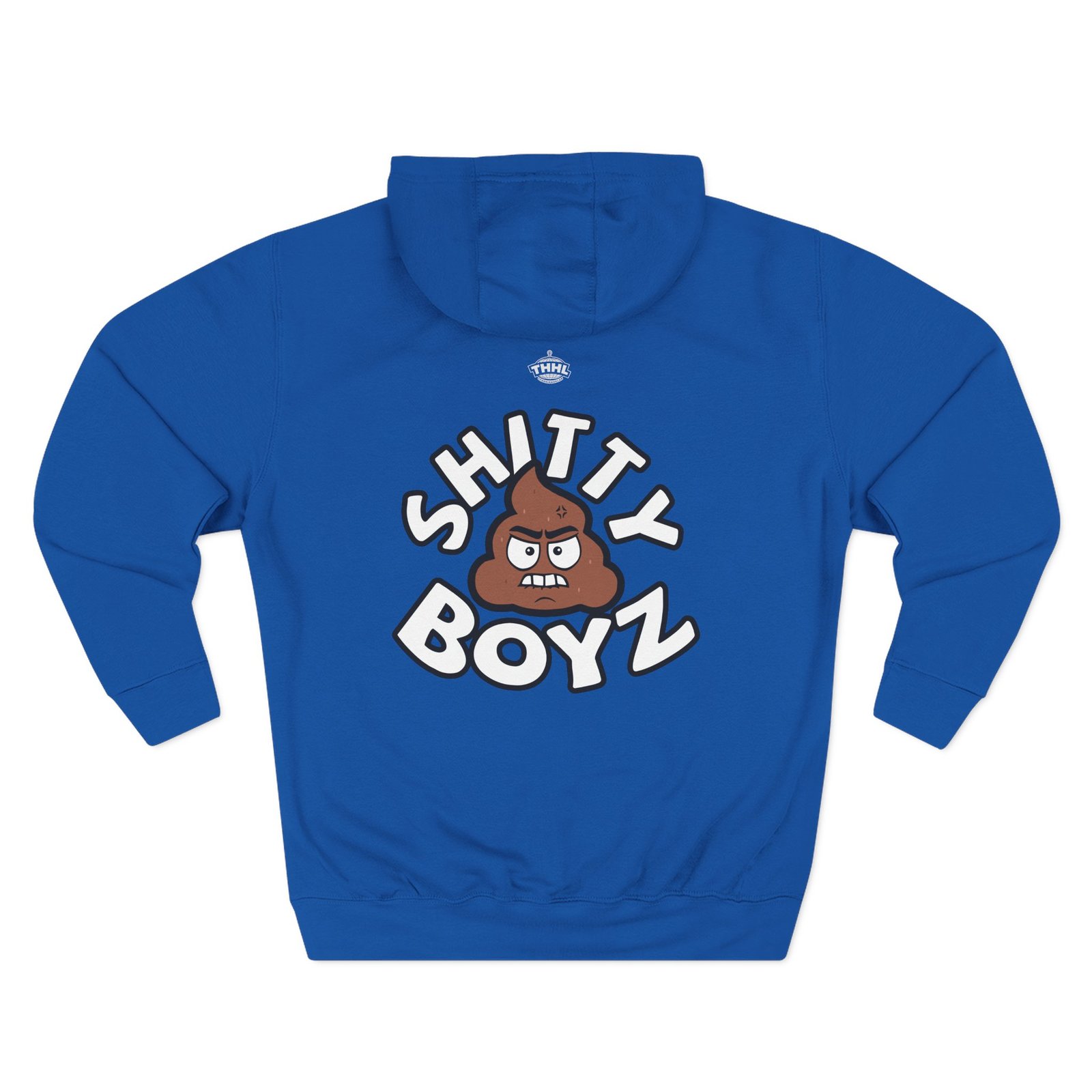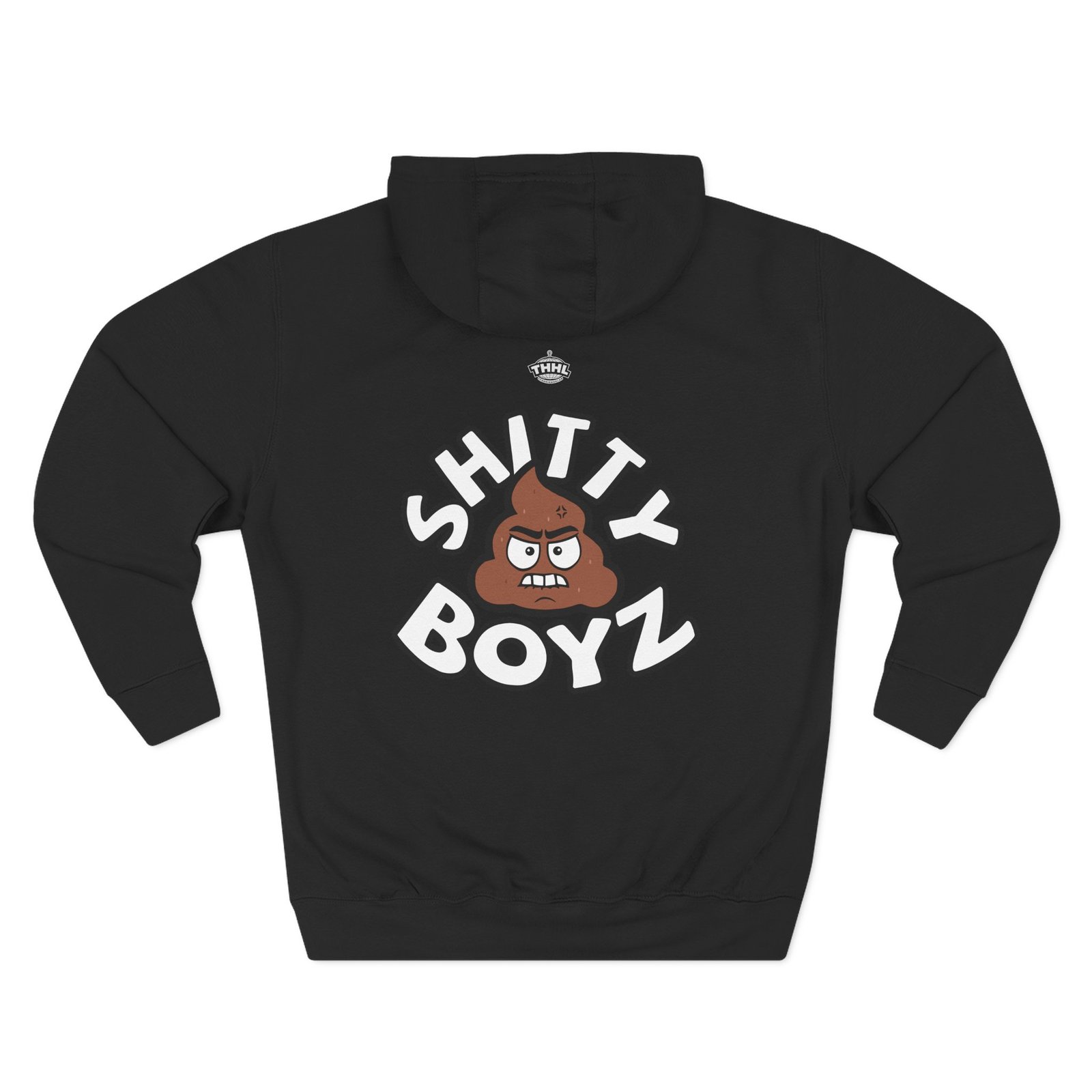Beat the cold with this Babytron Shittyboyz Logo premium pullover hoodie that’s just the right layer of warm and cozy. Made with three-panel fleece lining, this pullover is double stitched for durability and roomy. Pick one in your favorite color to match your style.
