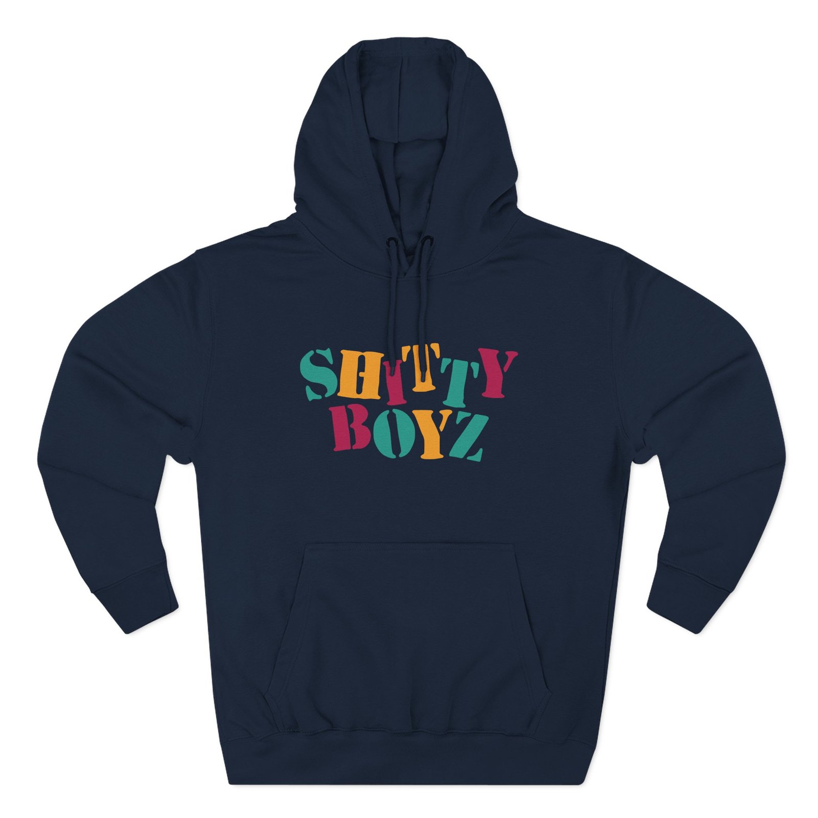 Beat the cold with this Babytron Shittyboyz Stencil premium pullover hoodie that’s just the right layer of warm and cozy. Made with three-panel fleece lining, this pullover is double stitched for durability and roomy. Pick one in your favorite color to match your style.