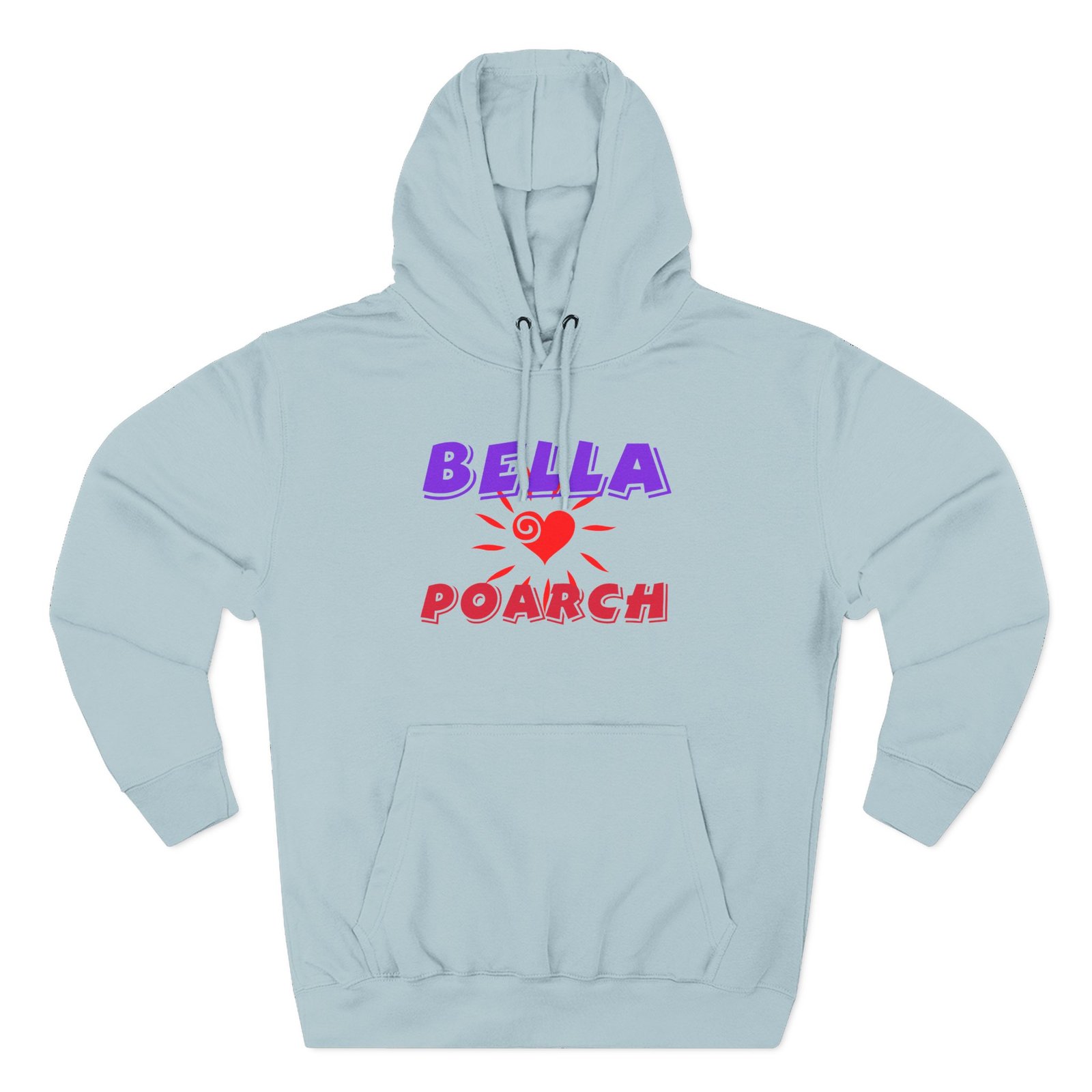 Beat the cold with this Bella Poarch premium pullover hoodie that’s just the right layer of warm and cozy. Made with three-panel fleece lining, this pullover is double stitched for durability and roomy. Pick one in your favorite color to match your style.