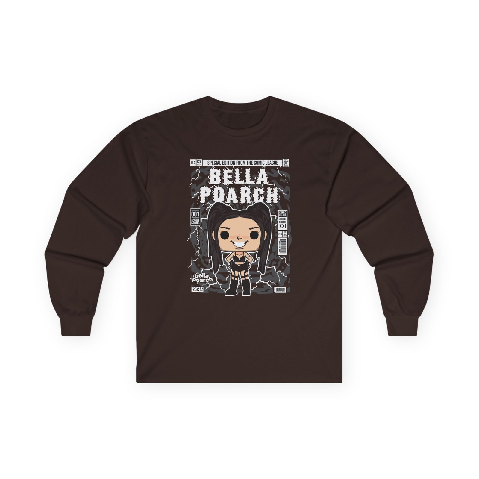 A bit more formal than a standard-issue t-shirt, the Bella Poarch ultra cotton long sleeve tee is a clear comfort winner. The sleeves also act as a nice frame. There are no side seams. The shoulders are taped for improved durability. This makes for a good fitting around the shoulders and neck. The cotton used for these shirts is environmentally friendly.