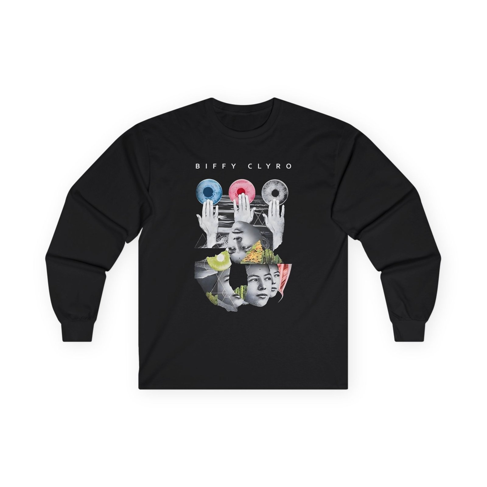 A bit more formal than a standard-issue t-shirt, the Biffy Clyro Hands ultra cotton long sleeve tee is a clear comfort winner. The sleeves also act as a nice frame. There are no side seams. The shoulders are taped for improved durability. This makes for a good fitting around the shoulders and neck. The cotton used for these shirts is environmentally friendly.