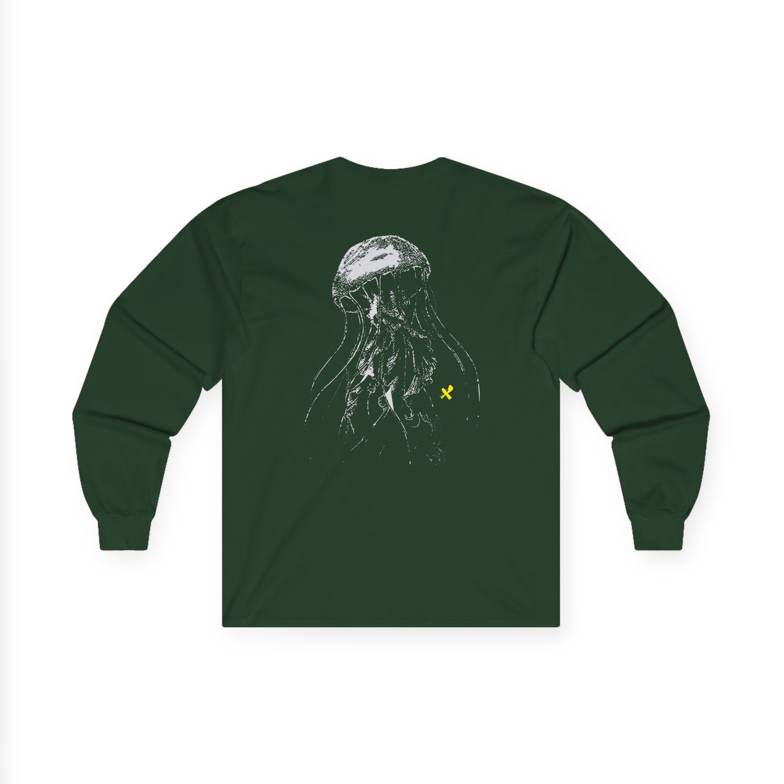 A bit more formal than a standard-issue t-shirt, the Biffy Clyro Jellyfish X ultra cotton long sleeve tee is a clear comfort winner. The sleeves also act as a nice frame. There are no side seams. The shoulders are taped for improved durability. This makes for a good fitting around the shoulders and neck. The cotton used for these shirts is environmentally friendly.