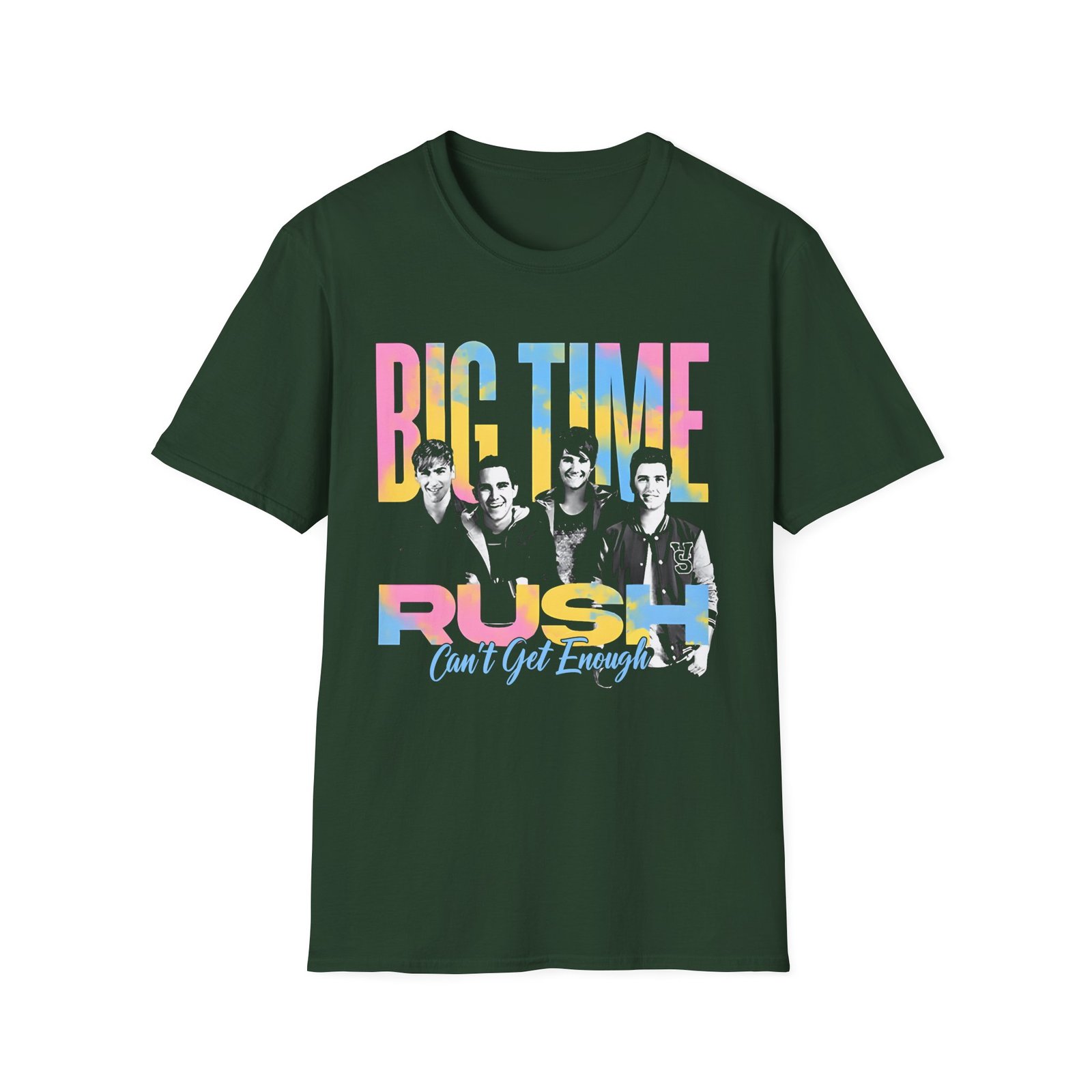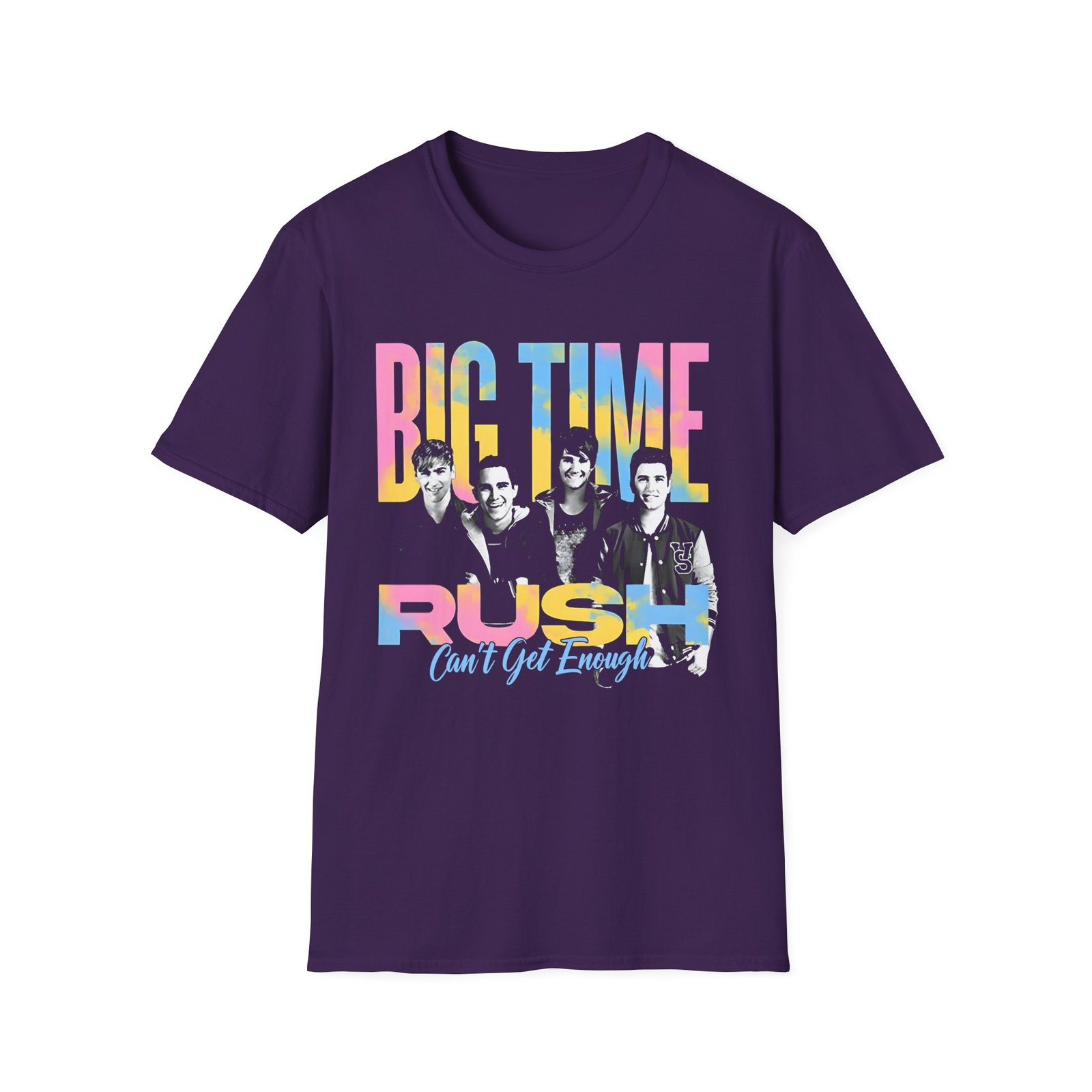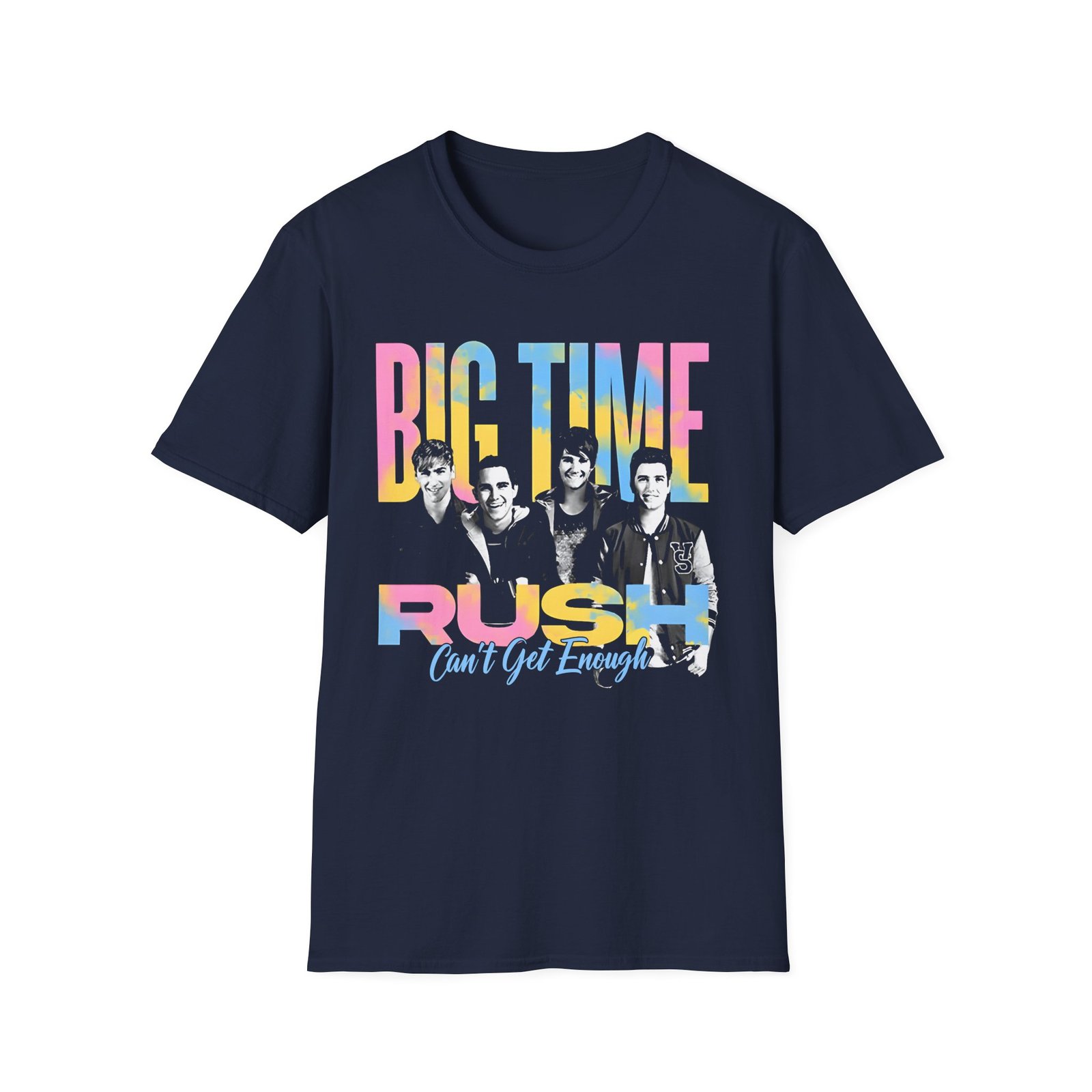 The Big Time Rush Can't Get Enough unisex soft-style t-shirt puts a new spin on casual comfort. Made from very soft materials, this tee is 100% cotton for solid colors. Heather colors and sports grey include polyester. The shoulders have twill tape for improved durability. There are no side seams. The collar is made with ribbed knitting to prevent curling damage.