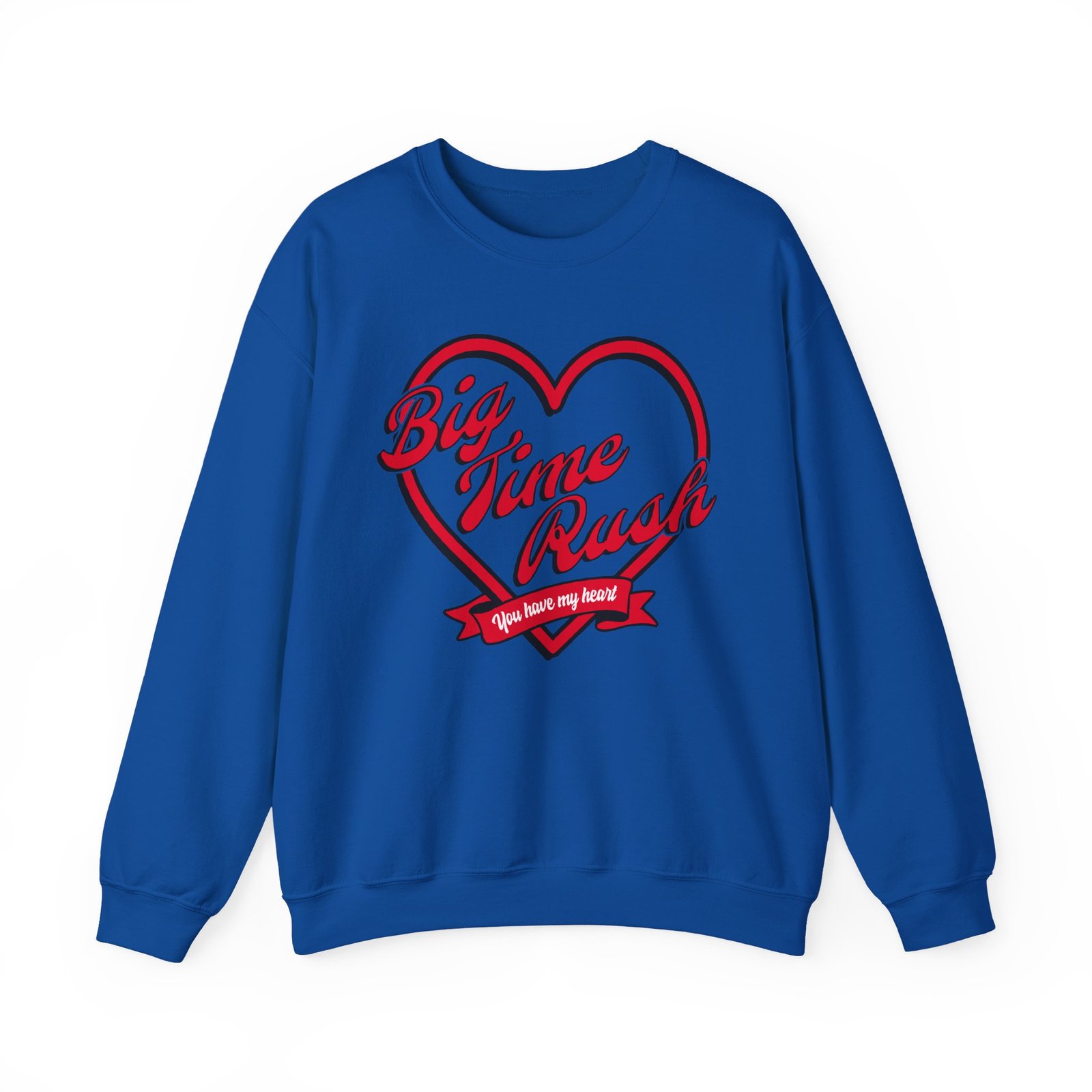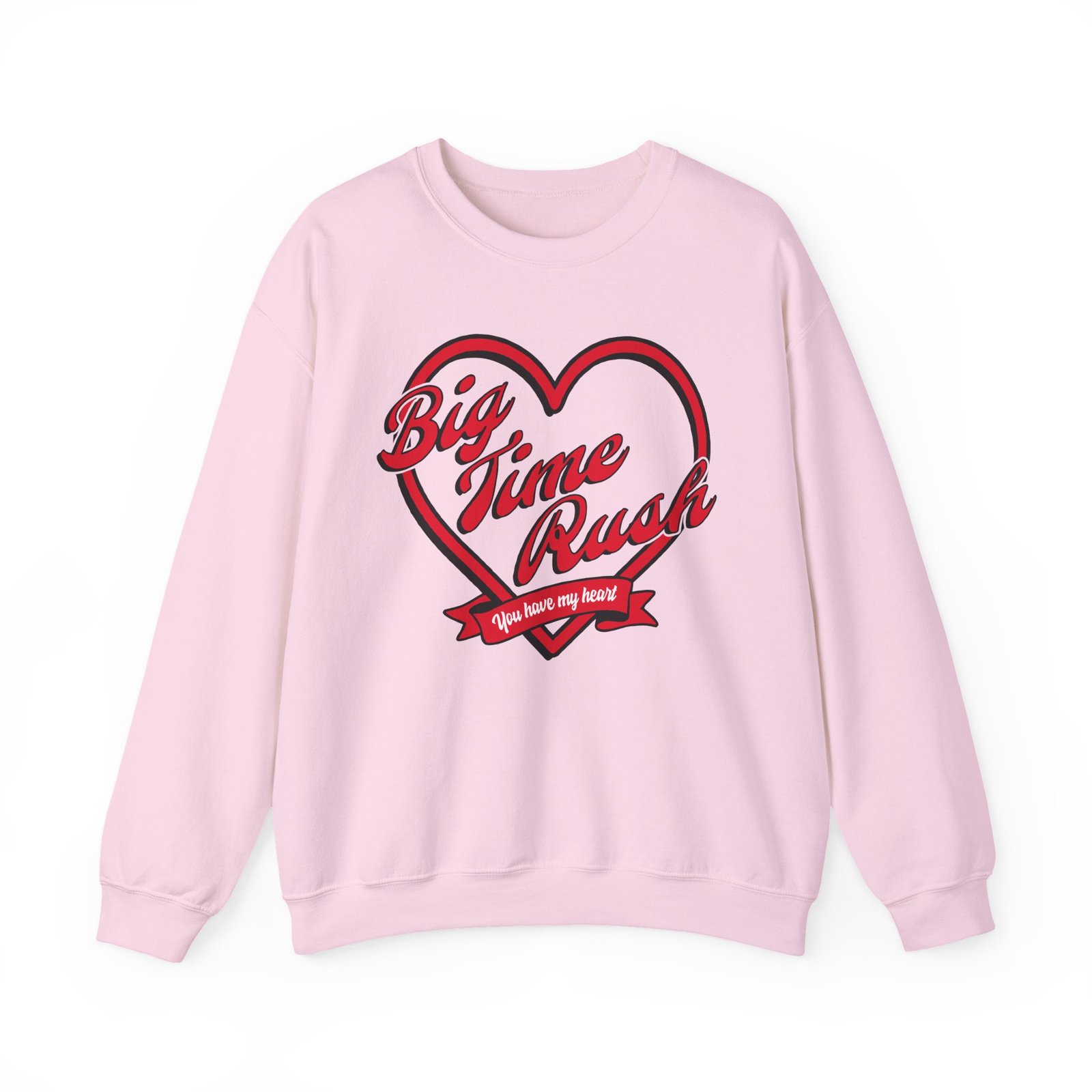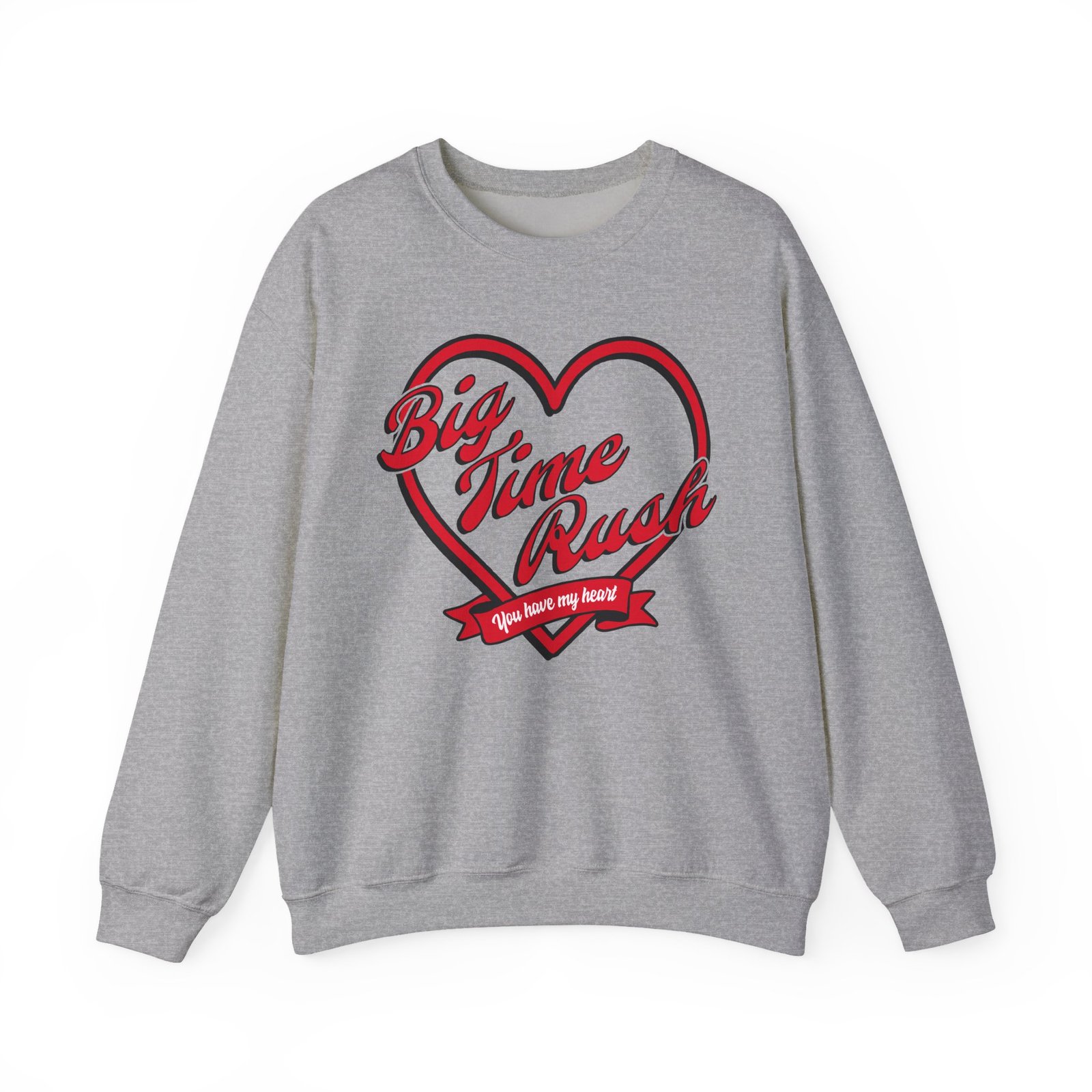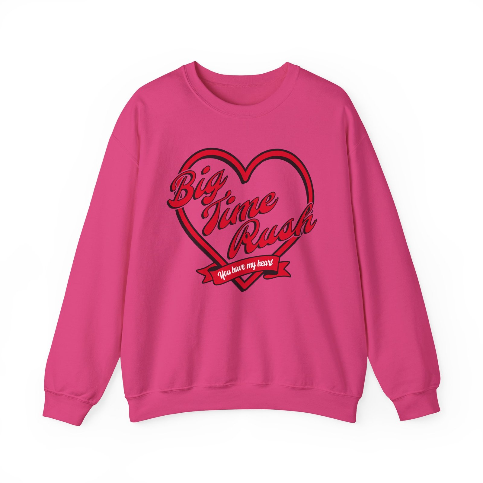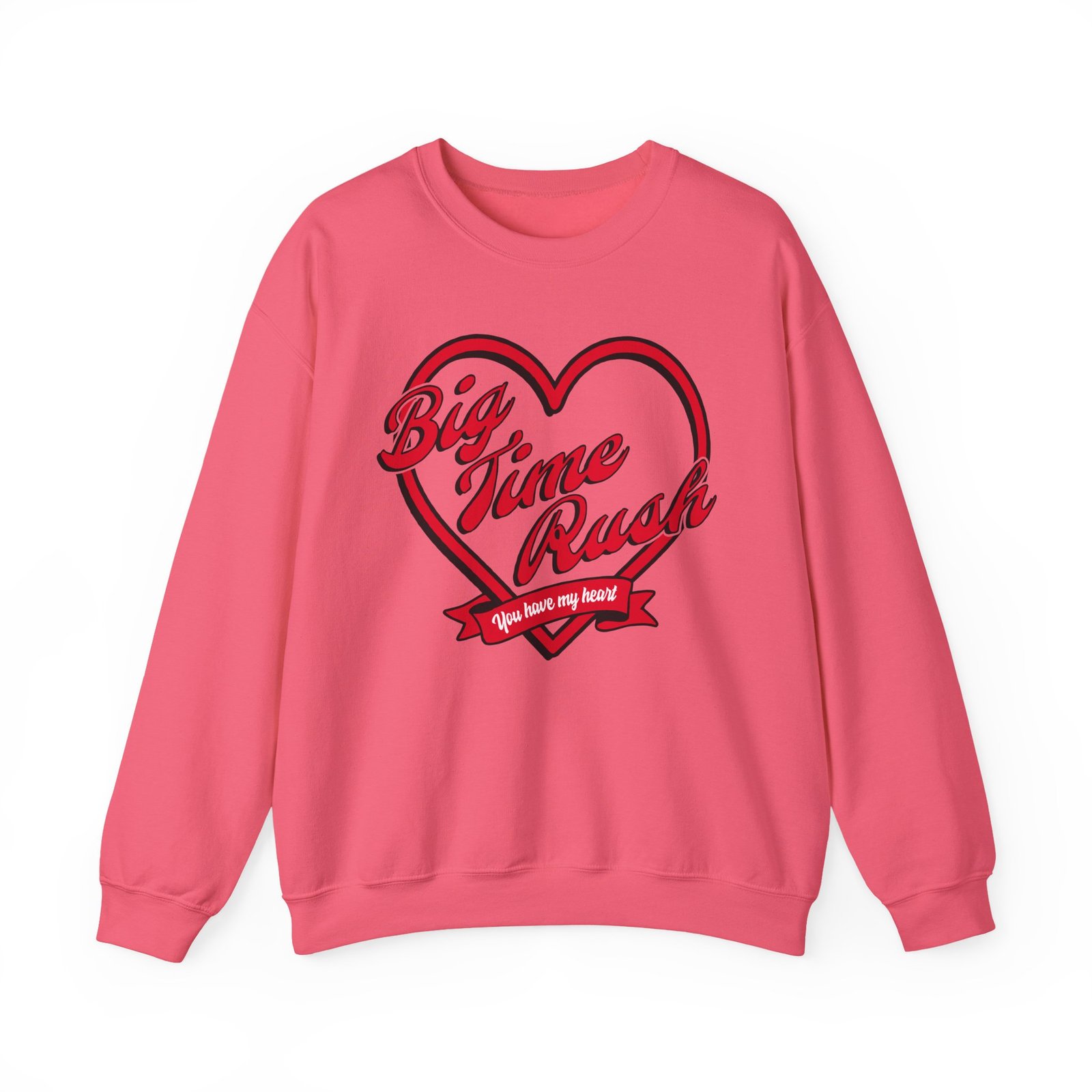 Ideal for any situation, a Big Time Rush You Have My Heart Valentine unisex heavy blend crewneck sweatshirt is pure comfort. These garments are made from polyester and cotton. This combination helps designs come out looking fresh and beautiful. The collar is ribbed knit, so it retains its shape even after washing. There are no itchy side seams on these sweaters.