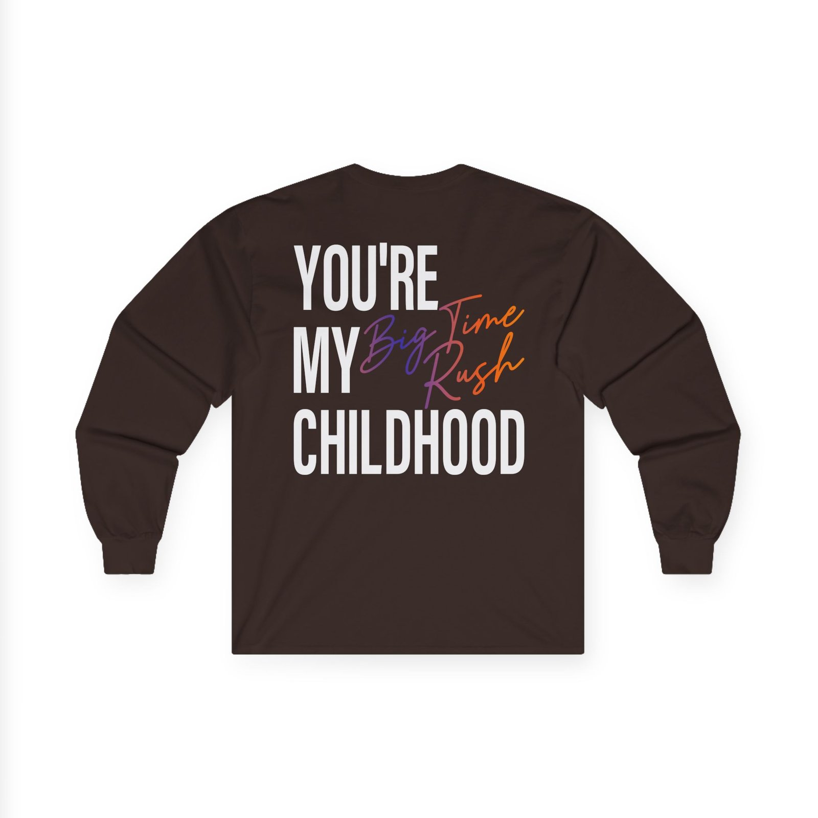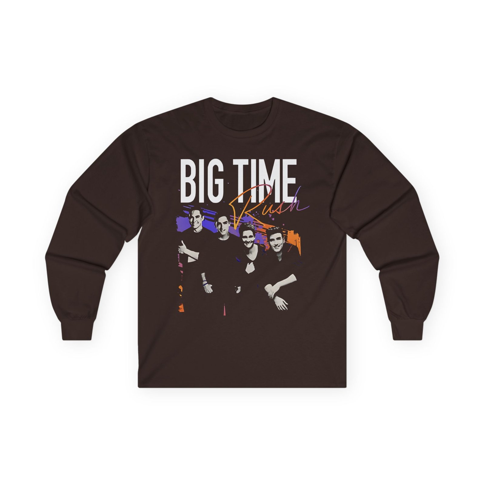 A bit more formal than a standard-issue t-shirt, the Big Time Rush You're My Childhood ultra cotton long sleeve tee is a clear comfort winner. The sleeves also act as a nice frame. There are no side seams. The shoulders are taped for improved durability. This makes for a good fitting around the shoulders and neck. The cotton used for these shirts is environmentally friendly.