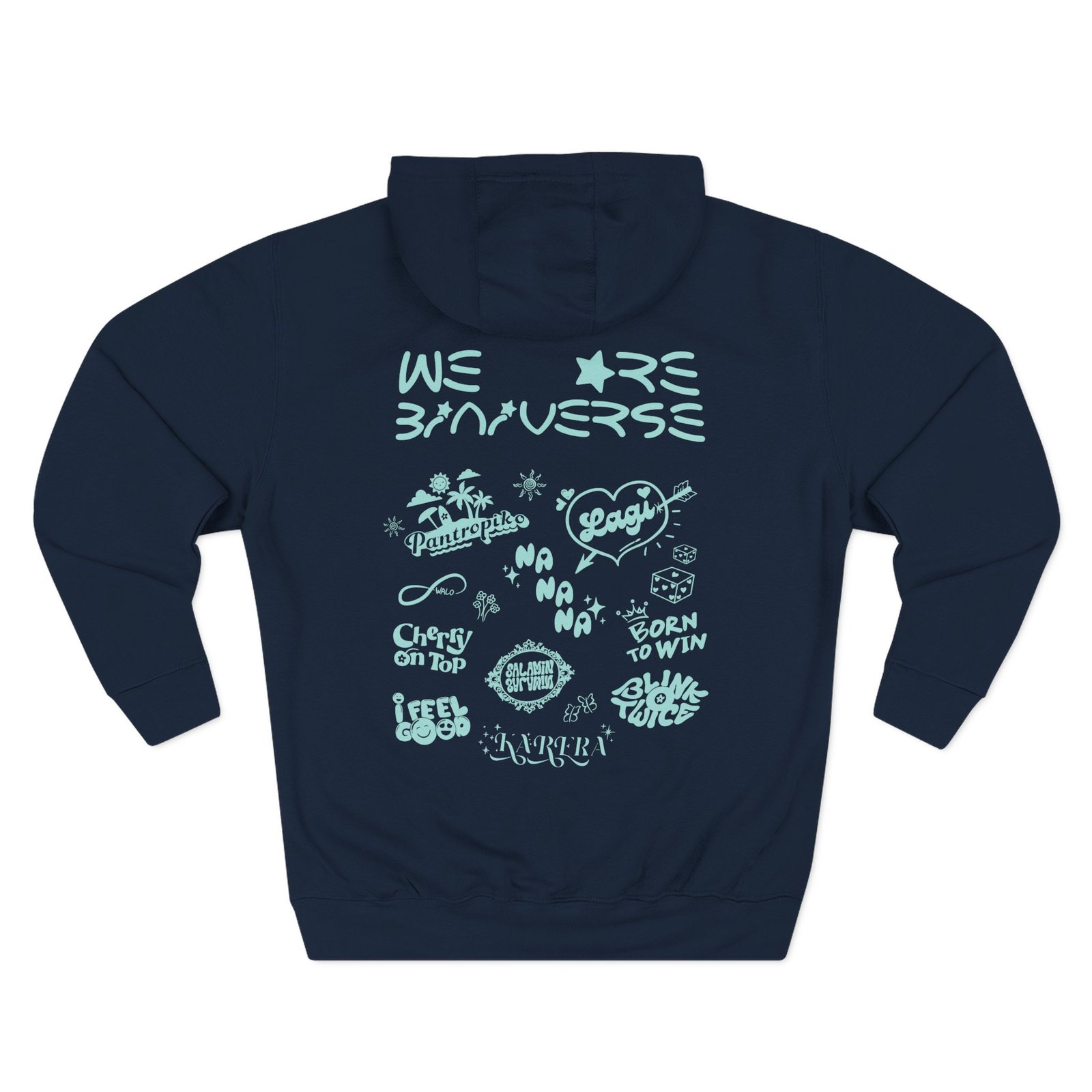 Beat the cold with this Bini Verse World Tour premium pullover hoodie that’s just the right layer of warm and cozy. Made with three-panel fleece lining, this pullover is double stitched for durability and roomy. Pick one in your favorite color to match your style.