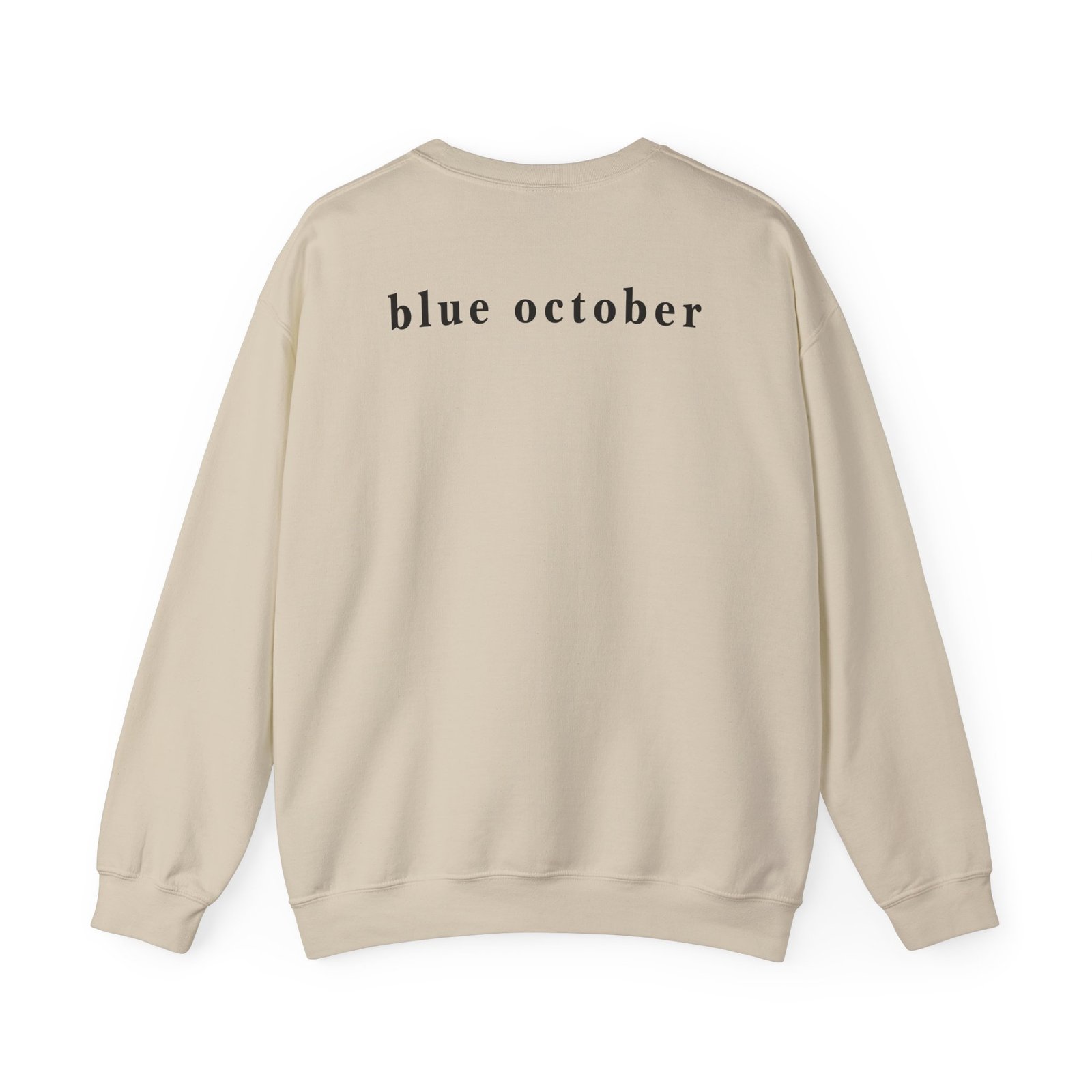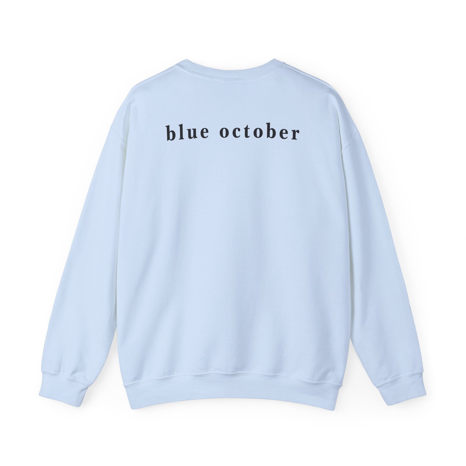 Ideal for any situation, a Blue October Big Rose unisex heavy blend crewneck sweatshirt is pure comfort. These garments are made from polyester and cotton. This combination helps designs come out looking fresh and beautiful. The collar is ribbed knit, so it retains its shape even after washing. There are no itchy side seams on these sweaters.