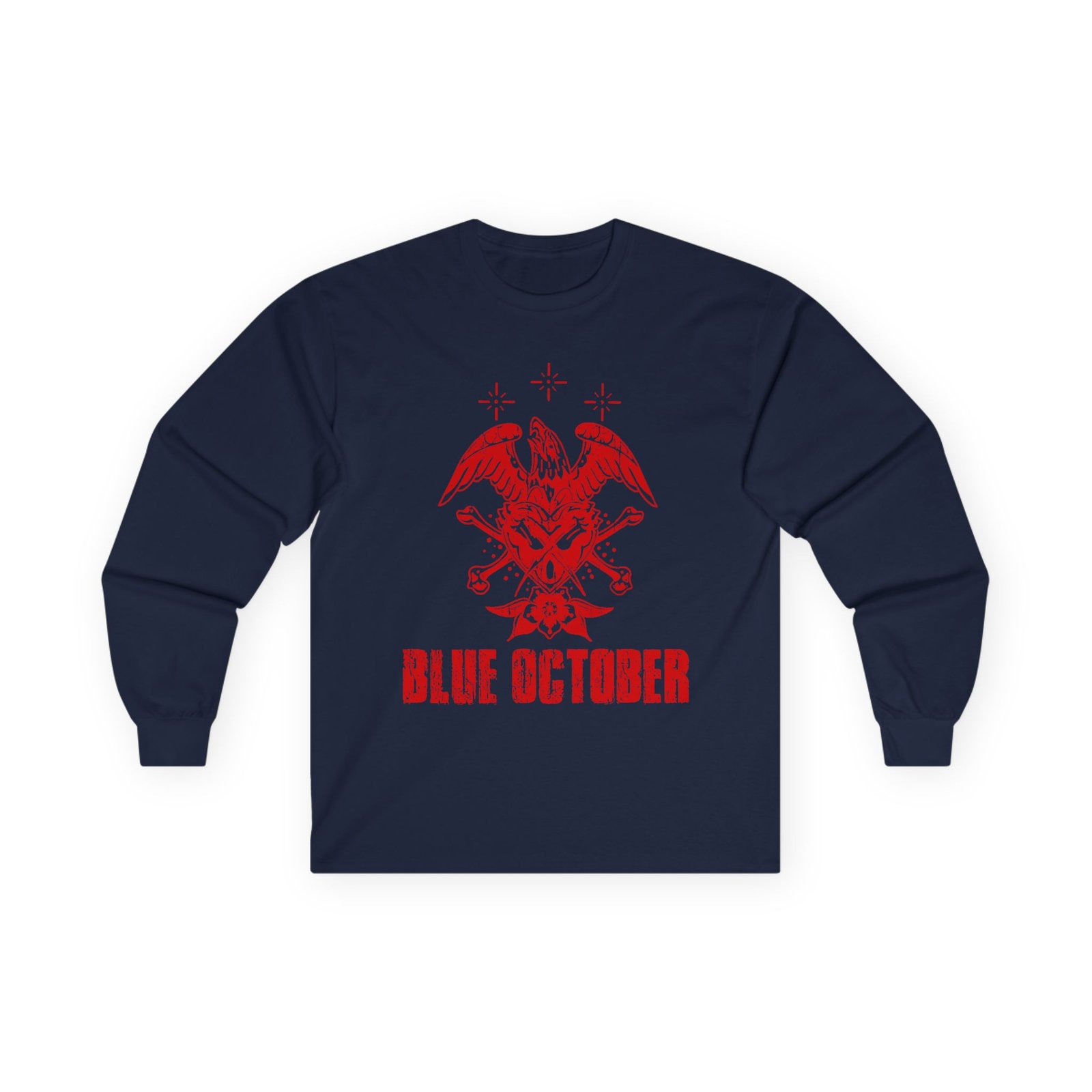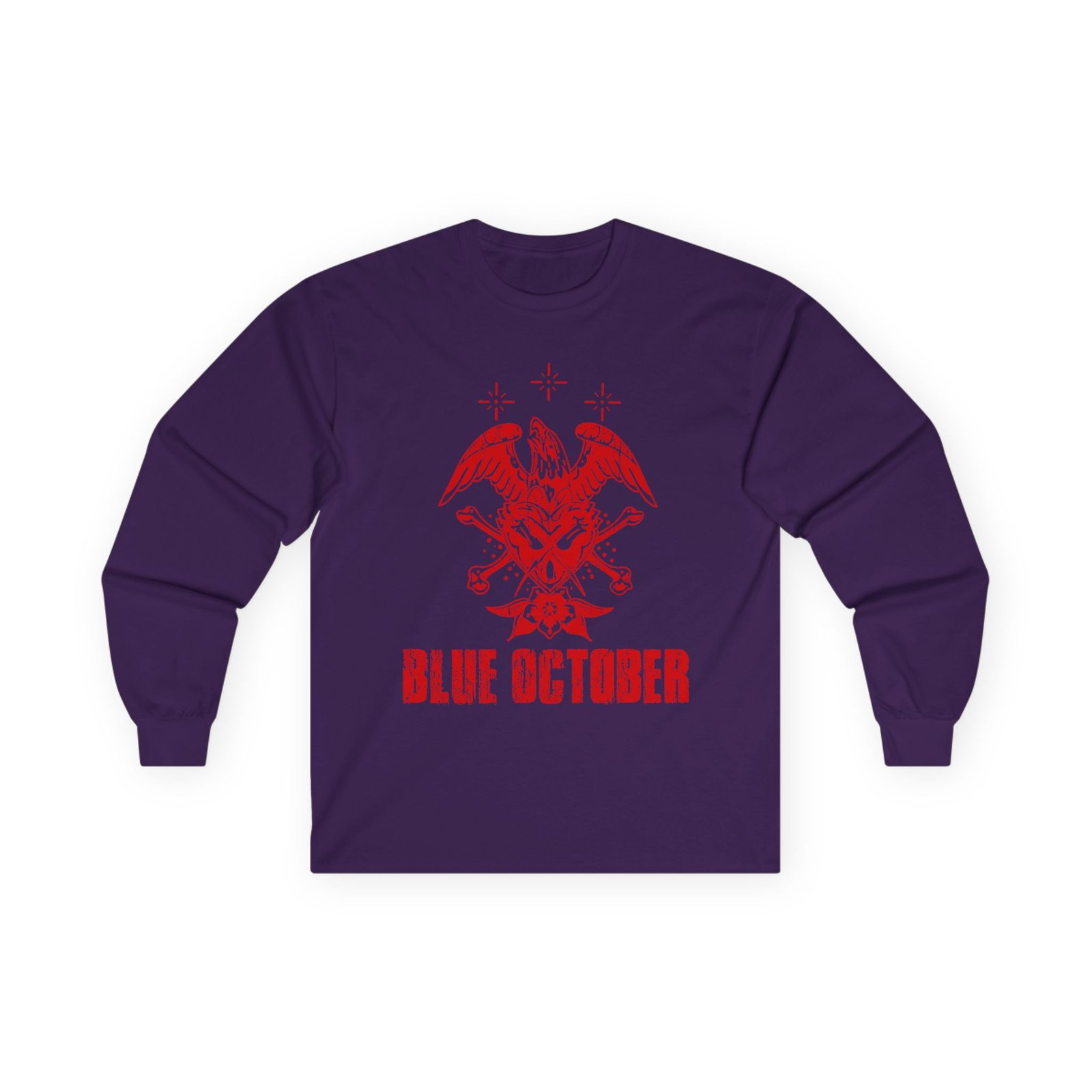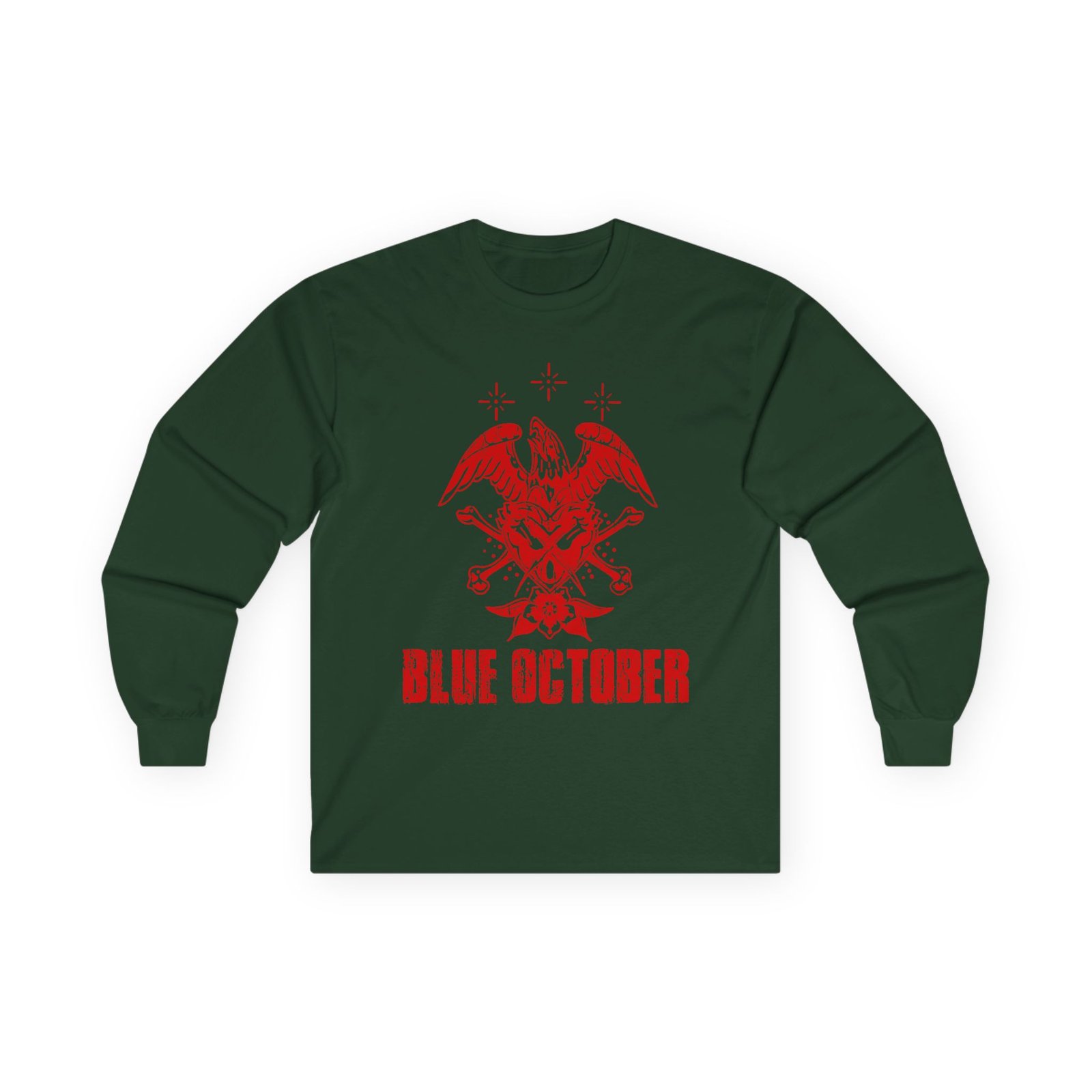 A bit more formal than a standard-issue t-shirt, the Blue October Heart Eagle Splatter ultra cotton long sleeve tee is a clear comfort winner. The sleeves also act as a nice frame. There are no side seams. The shoulders are taped for improved durability. This makes for a good fitting around the shoulders and neck. The cotton used for these shirts is environmentally friendly.