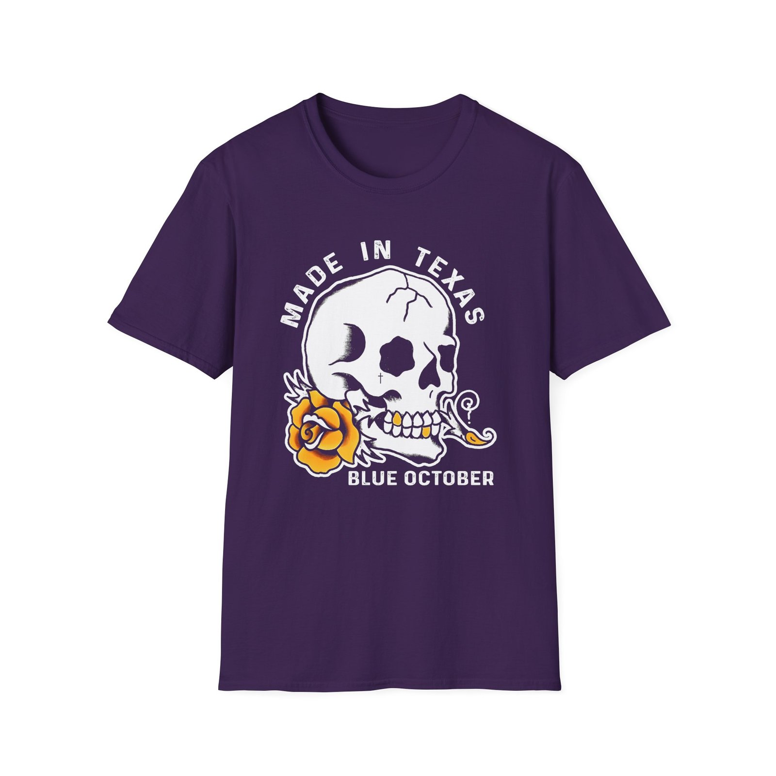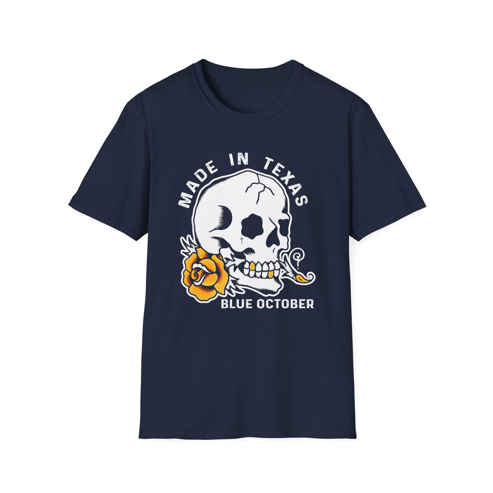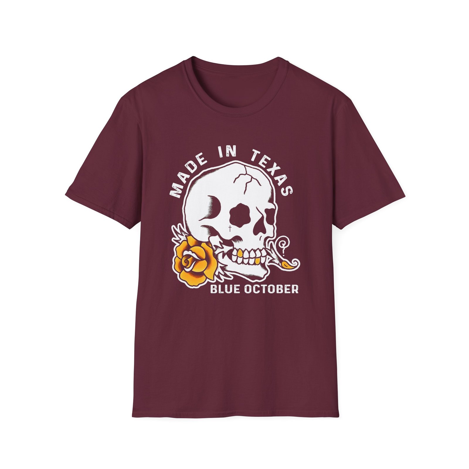 The Blue October Skull Rose unisex soft-style t-shirt puts a new spin on casual comfort. Made from very soft materials, this tee is 100% cotton for solid colors. Heather colors and sports grey include polyester. The shoulders have twill tape for improved durability. There are no side seams. The collar is made with ribbed knitting to prevent curling damage.