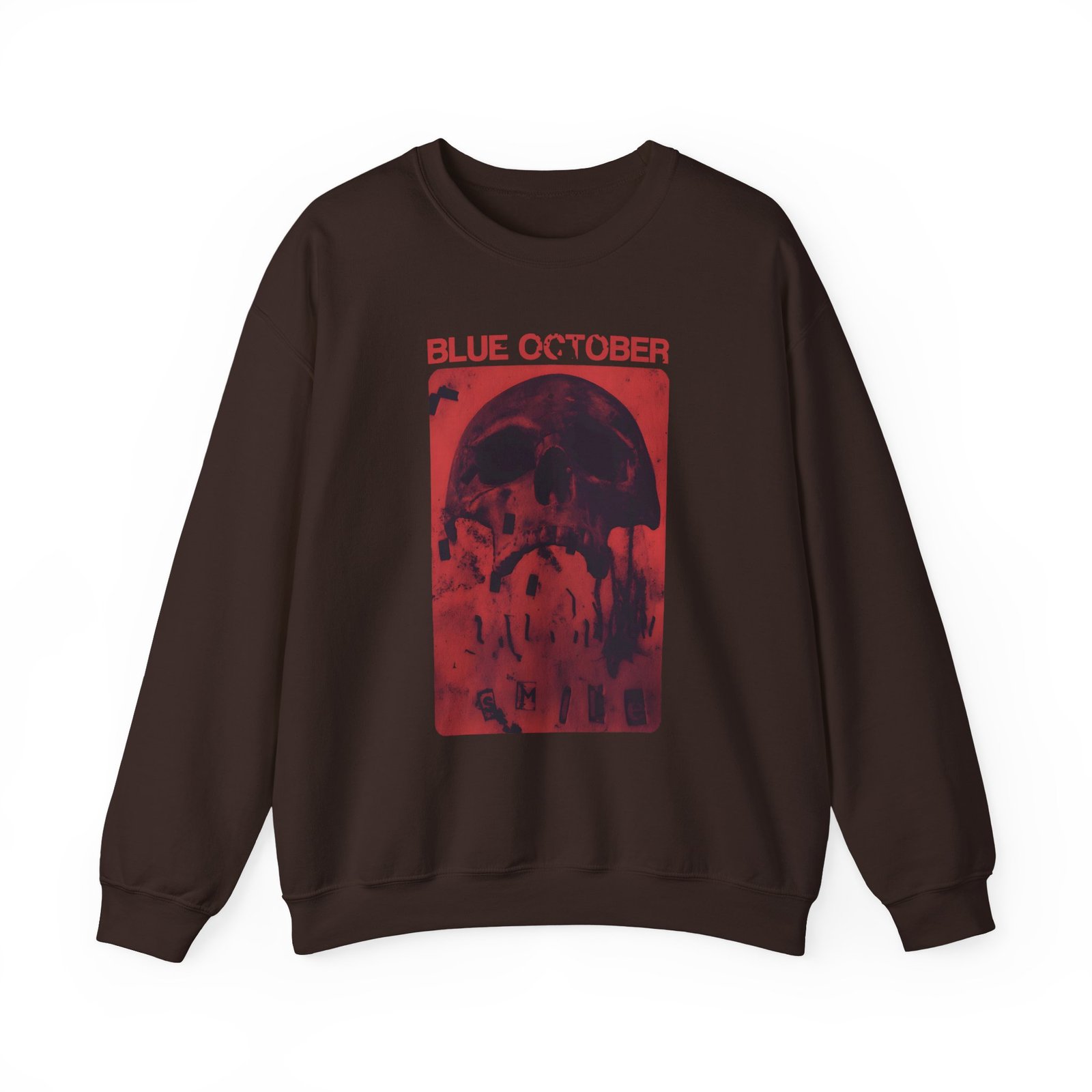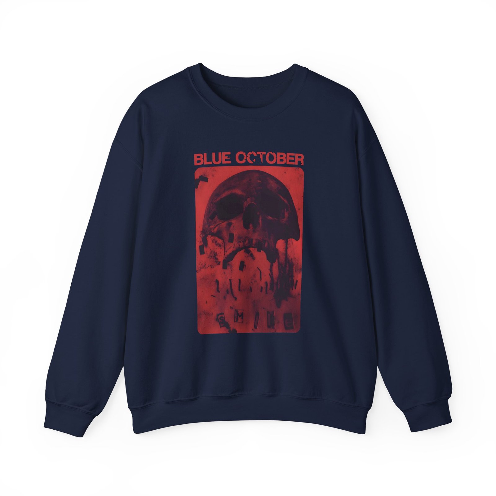 Ideal for any situation, a Blue October Skull Smile unisex heavy blend crewneck sweatshirt is pure comfort. These garments are made from polyester and cotton. This combination helps designs come out looking fresh and beautiful. The collar is ribbed knit, so it retains its shape even after washing. There are no itchy side seams on these sweaters.