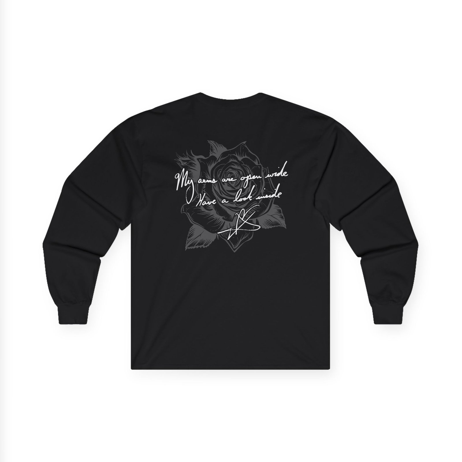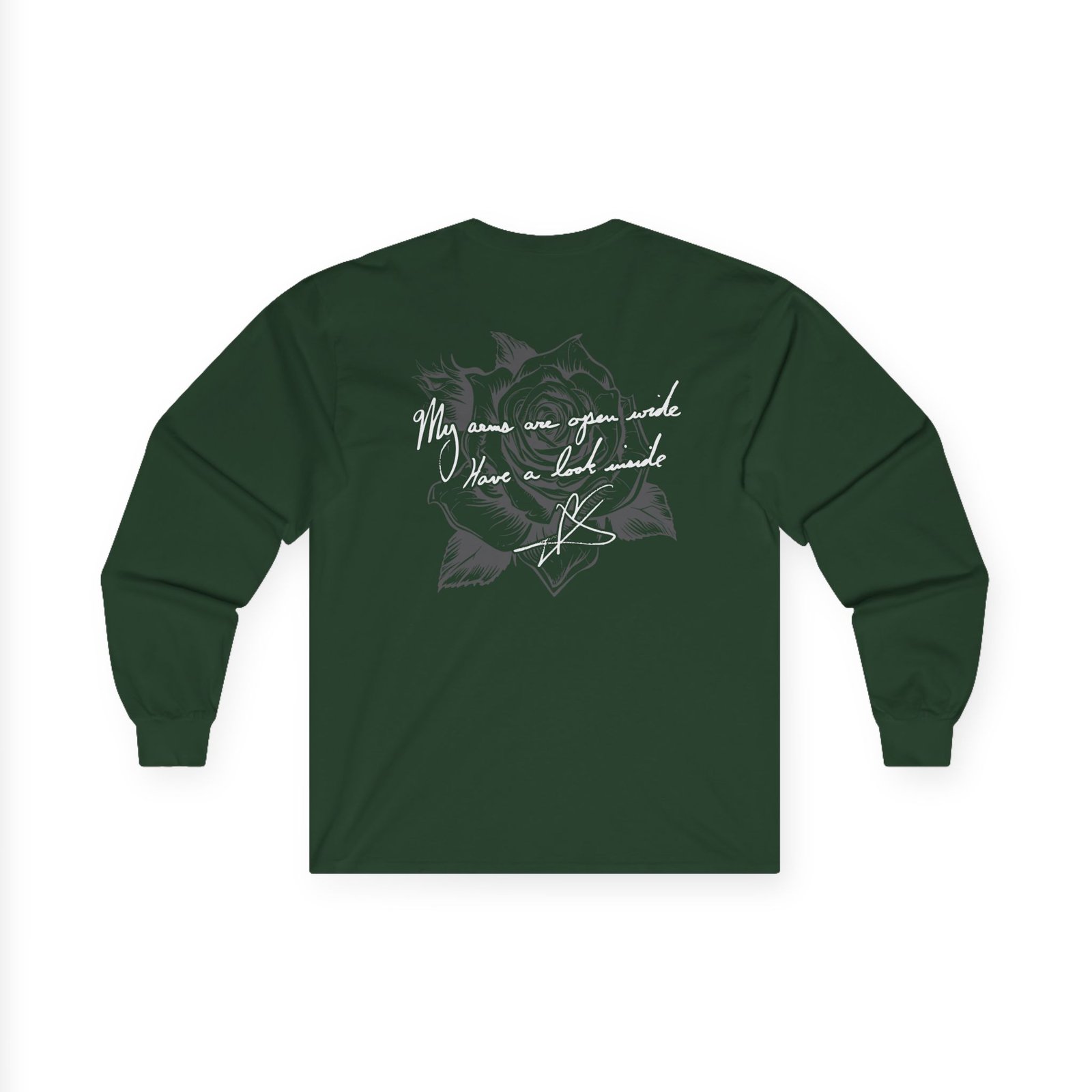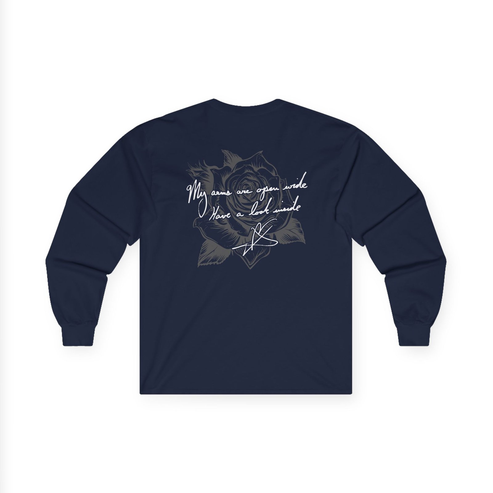 A bit more formal than a standard-issue t-shirt, the Blue October the Answers ultra cotton long sleeve tee is a clear comfort winner. The sleeves also act as a nice frame. There are no side seams. The shoulders are taped for improved durability. This makes for a good fitting around the shoulders and neck. The cotton used for these shirts is environmentally friendly.