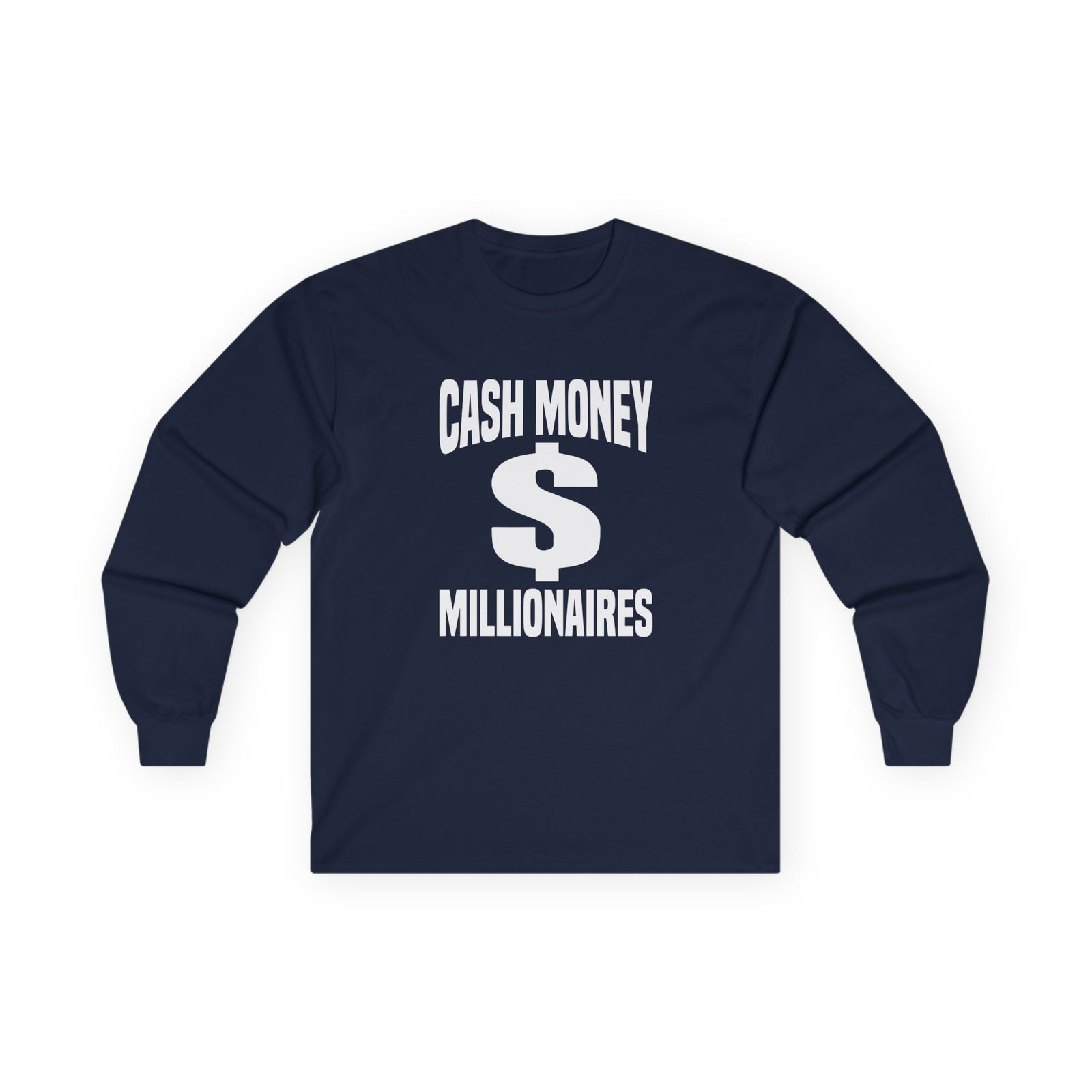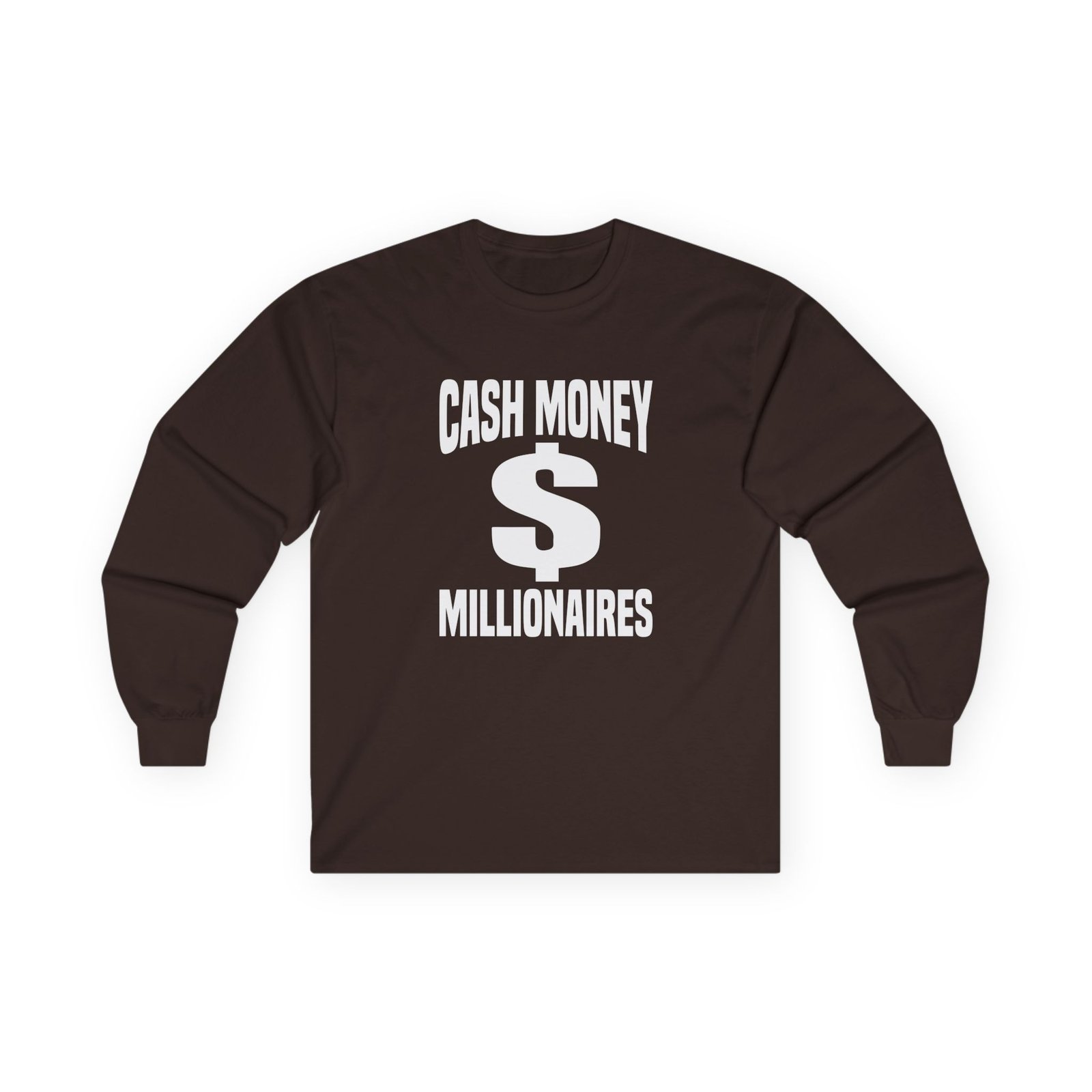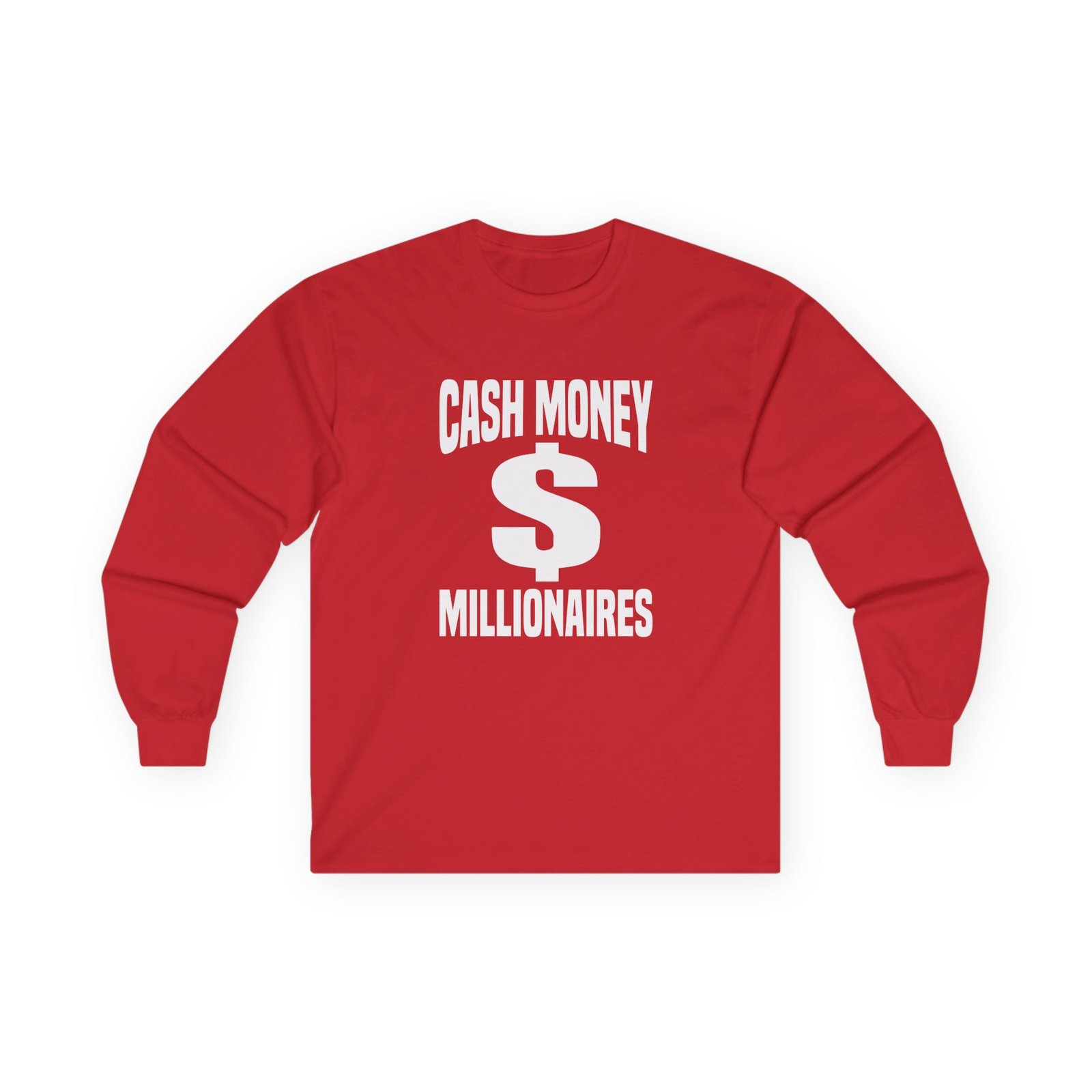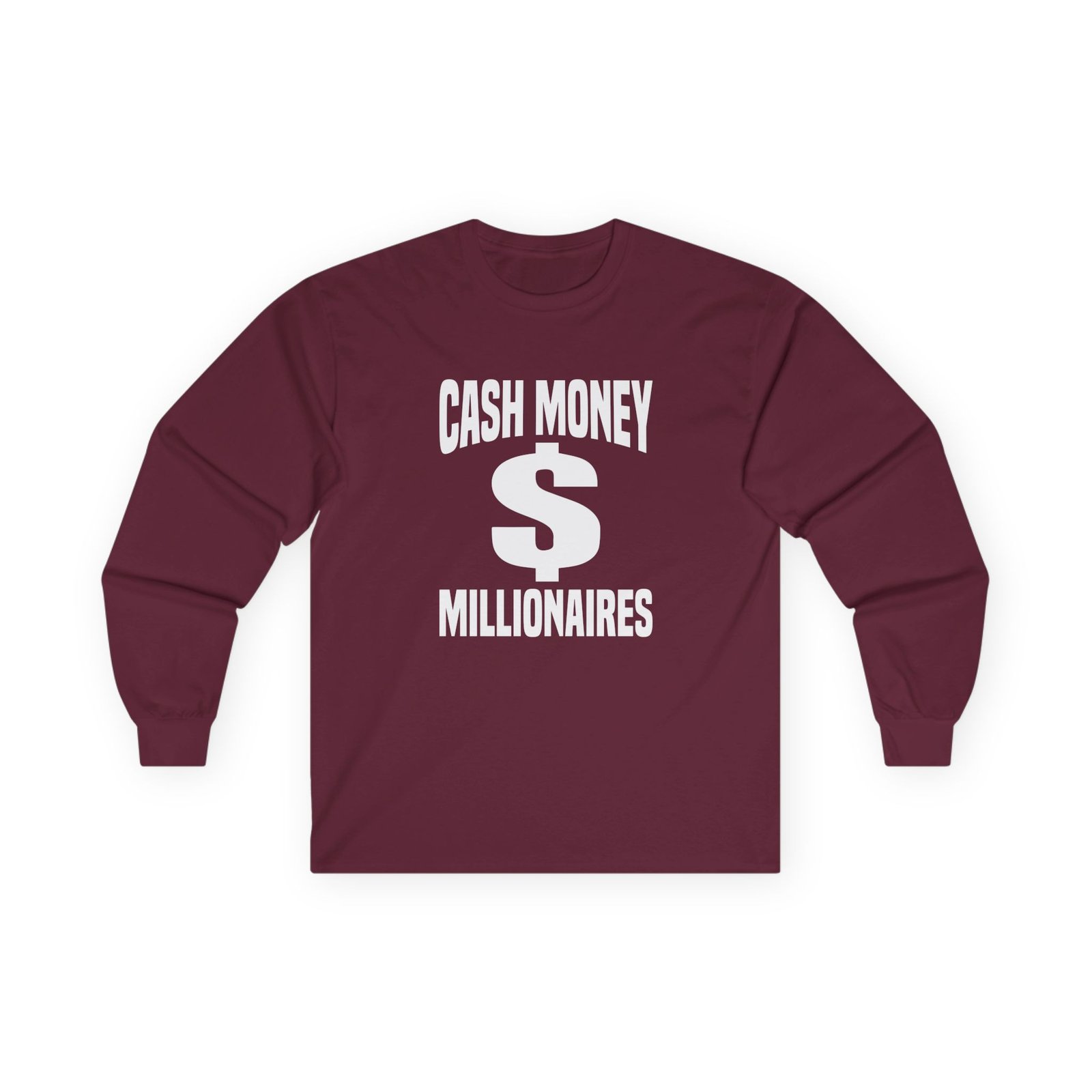 A bit more formal than a standard-issue t-shirt, the Cash Money Millionaires ultra cotton long sleeve tee is a clear comfort winner. The sleeves also act as a nice frame. There are no side seams. The shoulders are taped for improved durability. This makes for a good fitting around the shoulders and neck. The cotton used for these shirts is environmentally friendly.