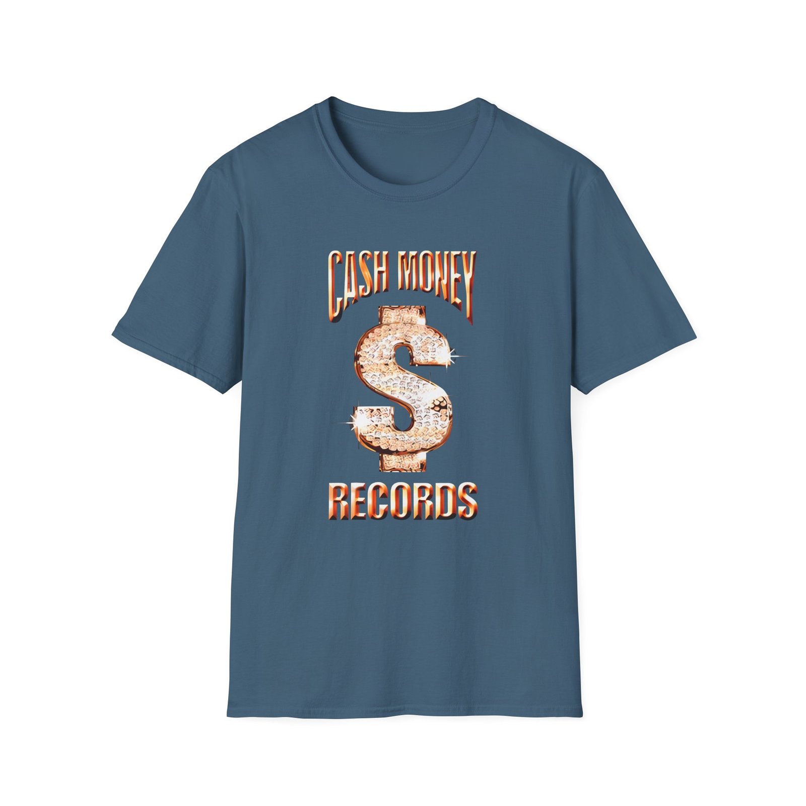 The Cash Money Records unisex soft-style t-shirt puts a new spin on casual comfort. Made from very soft materials, this tee is 100% cotton for solid colors. Heather colors and sports grey include polyester. The shoulders have twill tape for improved durability. There are no side seams. The collar is made with ribbed knitting to prevent curling damage.