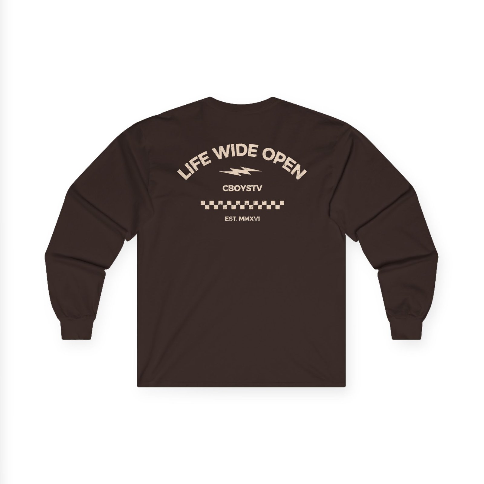 A bit more formal than a standard-issue t-shirt, the Cboystv Checkered Tournament ultra cotton long sleeve tee is a clear comfort winner. The sleeves also act as a nice frame. There are no side seams. The shoulders are taped for improved durability. This makes for a good fitting around the shoulders and neck. The cotton used for these shirts is environmentally friendly.