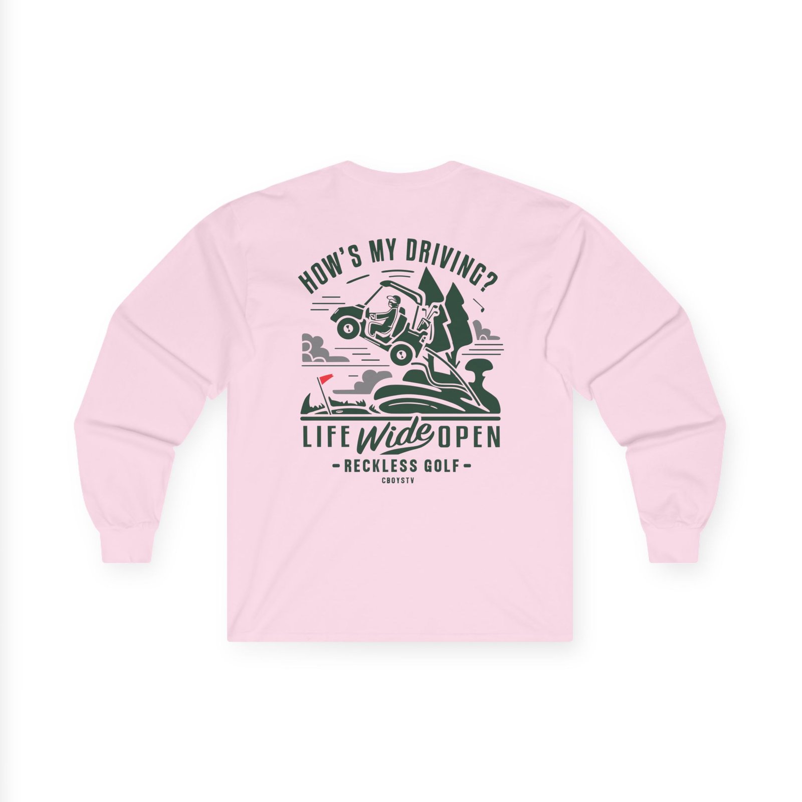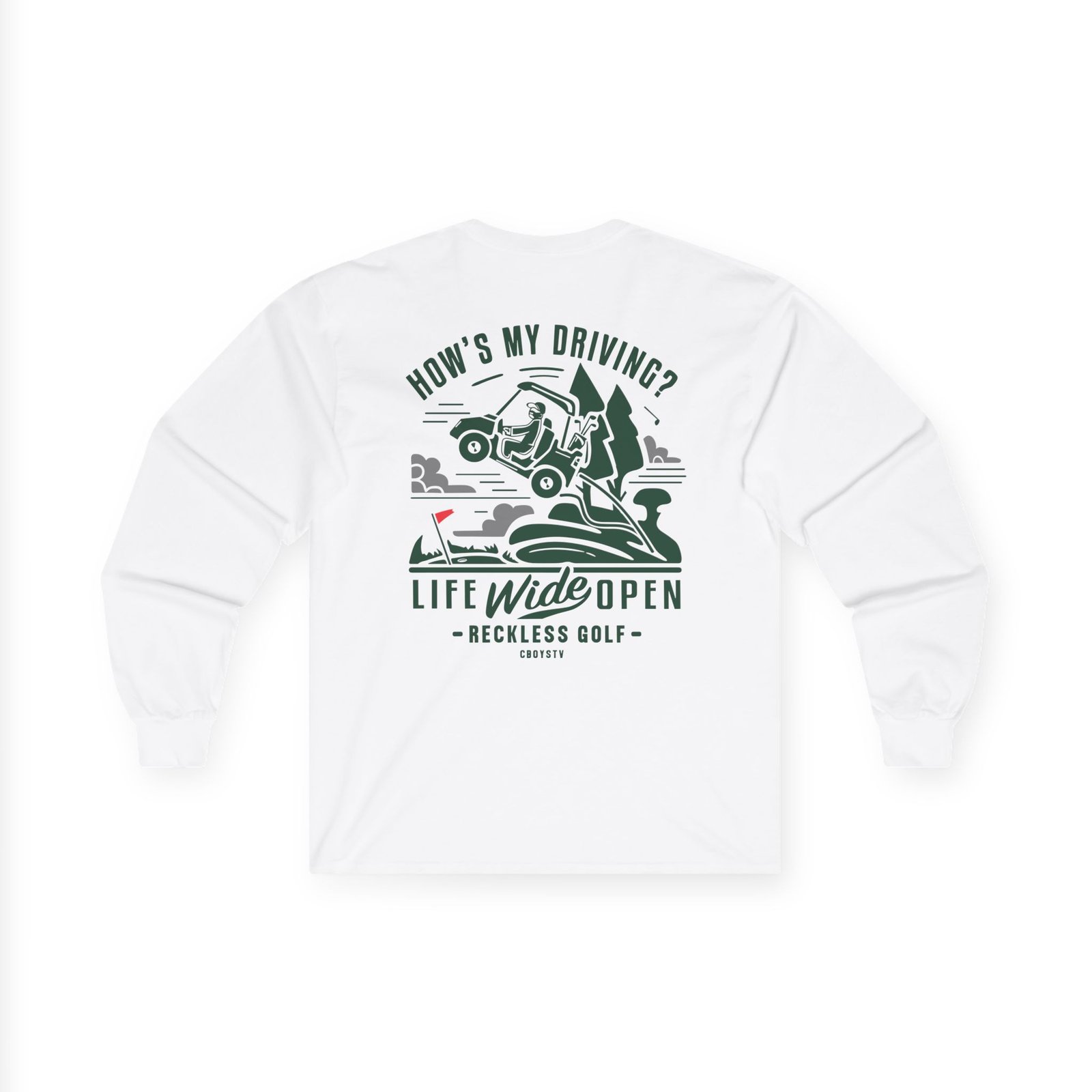 A bit more formal than a standard-issue t-shirt, the Cboystv How's My Driving ultra cotton long sleeve tee is a clear comfort winner. The sleeves also act as a nice frame. There are no side seams. The shoulders are taped for improved durability. This makes for a good fitting around the shoulders and neck. The cotton used for these shirts is environmentally friendly.