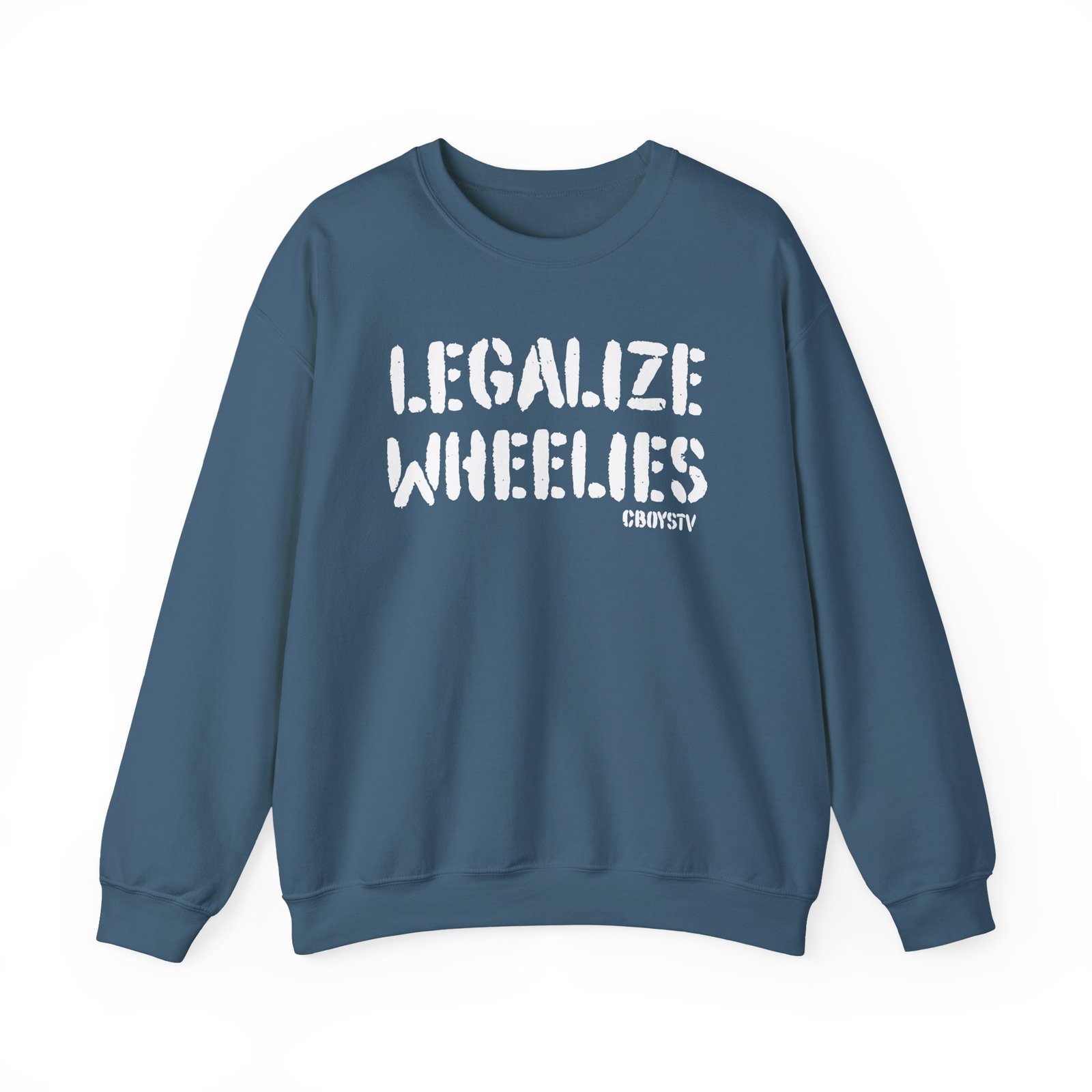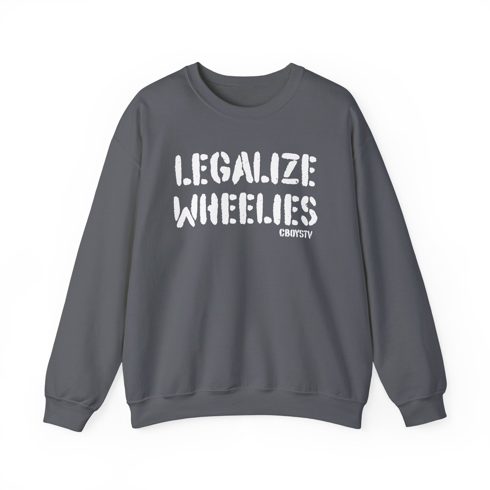 Ideal for any situation, a Cboystv Legalize Wheelies unisex heavy blend crewneck sweatshirt is pure comfort. These garments are made from polyester and cotton. This combination helps designs come out looking fresh and beautiful. The collar is ribbed knit, so it retains its shape even after washing. There are no itchy side seams on these sweaters.