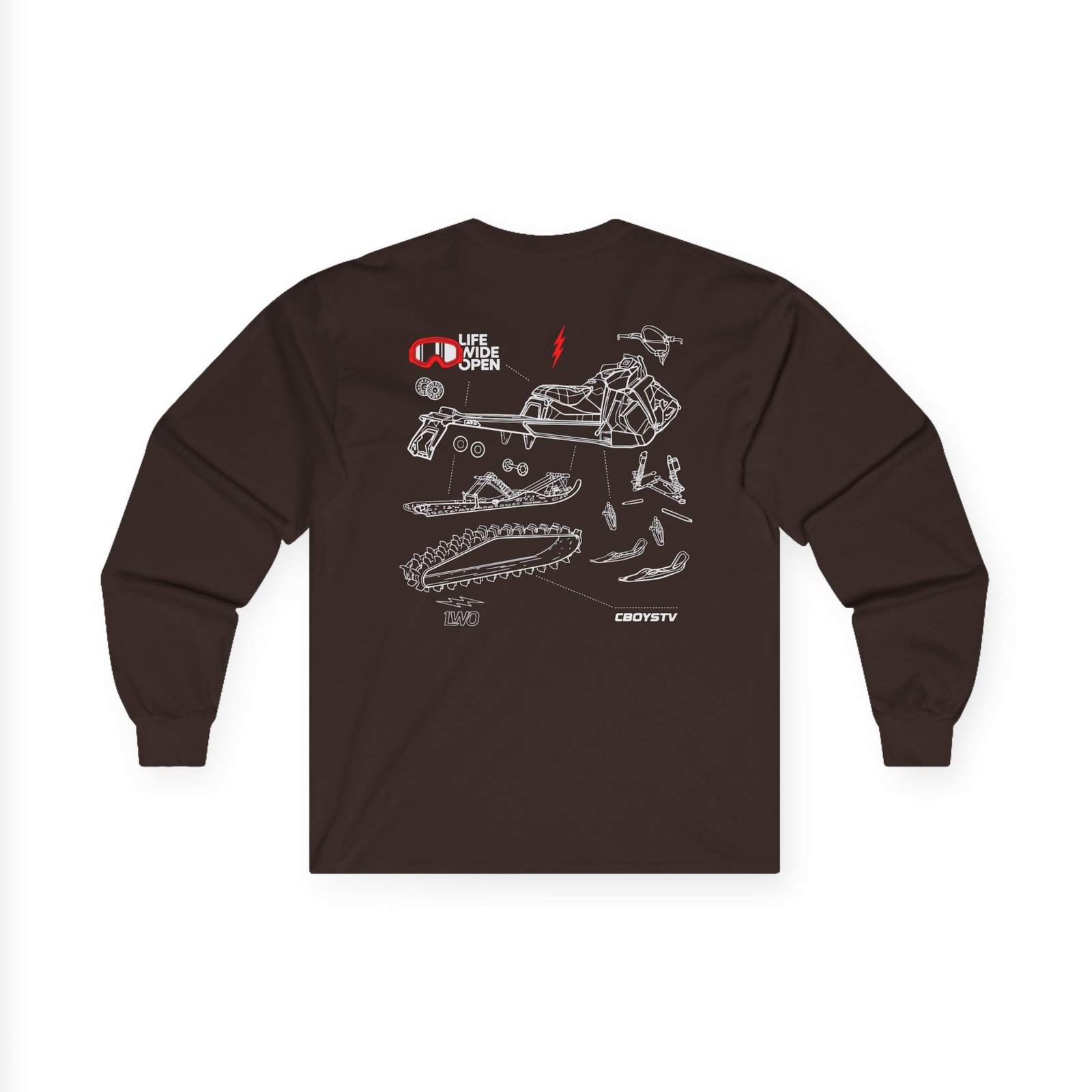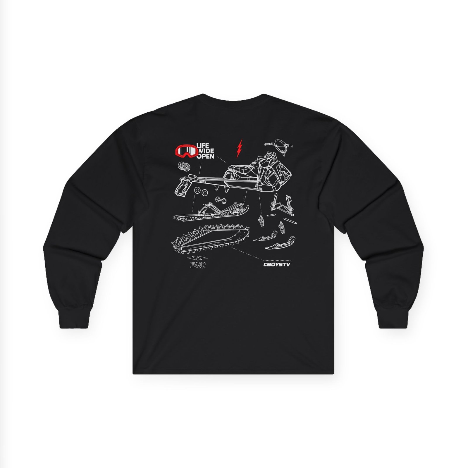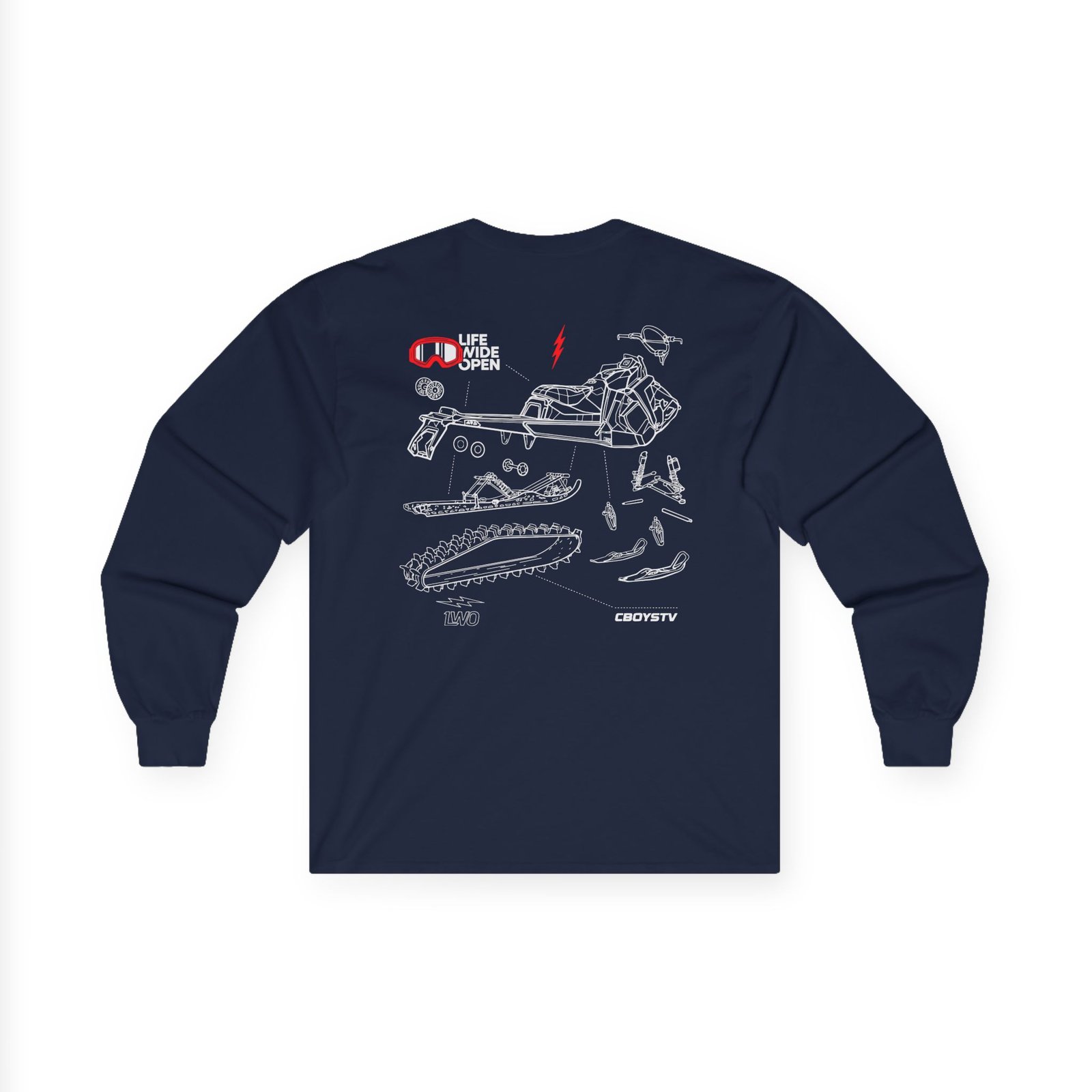 A bit more formal than a standard-issue t-shirt, the Cboystv Snowmobile Blowup ultra cotton long sleeve tee is a clear comfort winner. The sleeves also act as a nice frame. There are no side seams. The shoulders are taped for improved durability. This makes for a good fitting around the shoulders and neck. The cotton used for these shirts is environmentally friendly.