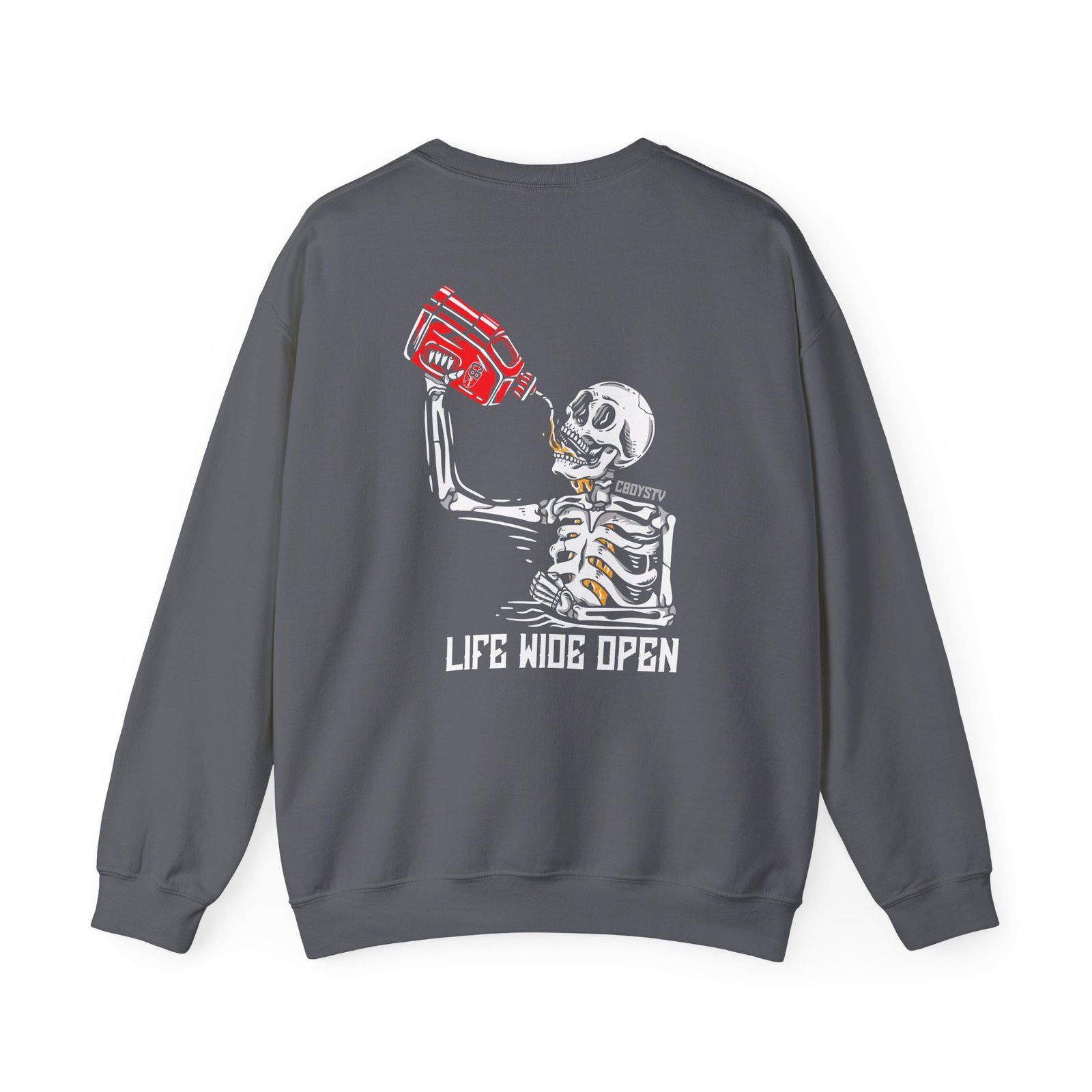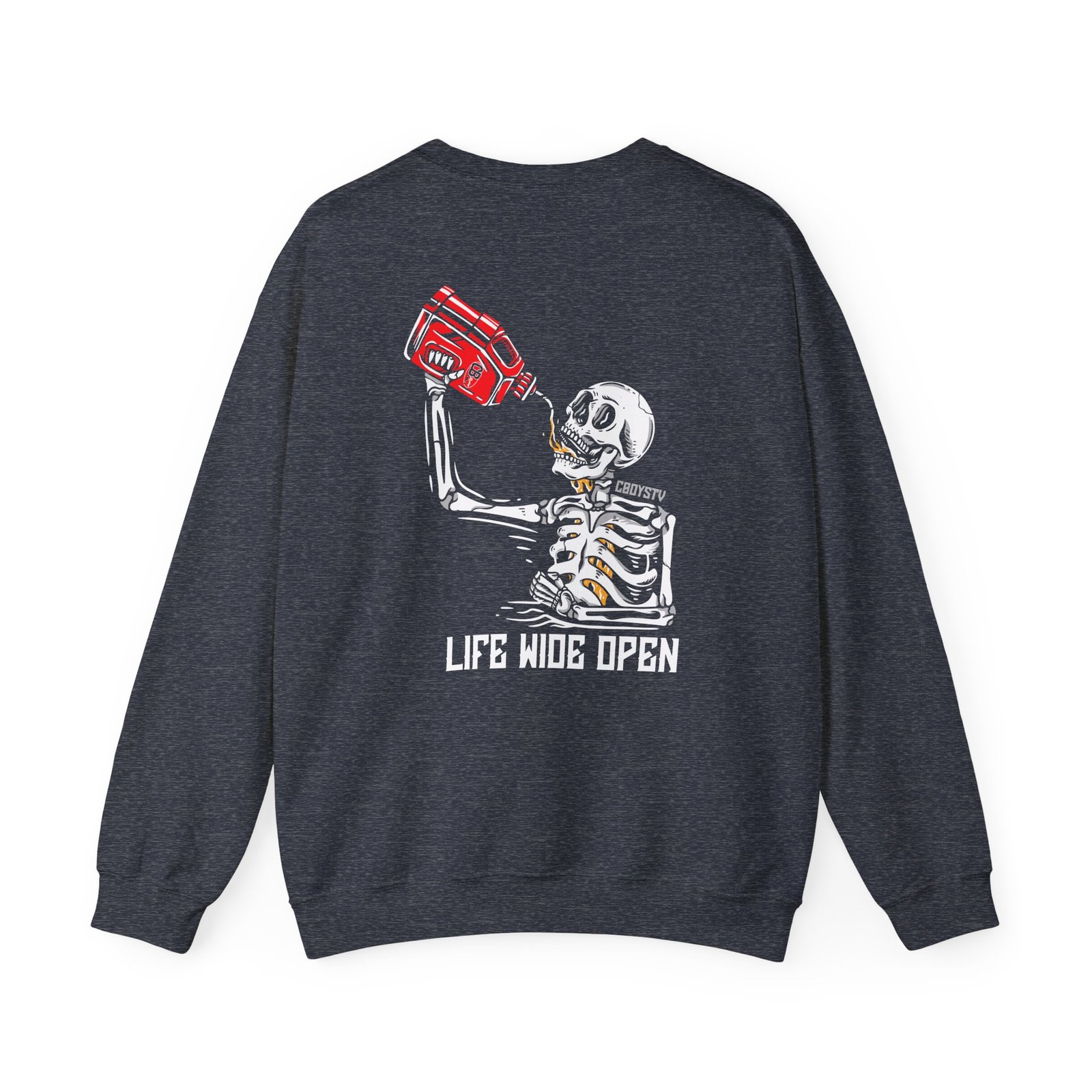 Ideal for any situation, a Cboystv Soul Fuel unisex heavy blend crewneck sweatshirt is pure comfort. These garments are made from polyester and cotton. This combination helps designs come out looking fresh and beautiful. The collar is ribbed knit, so it retains its shape even after washing. There are no itchy side seams on these sweaters.