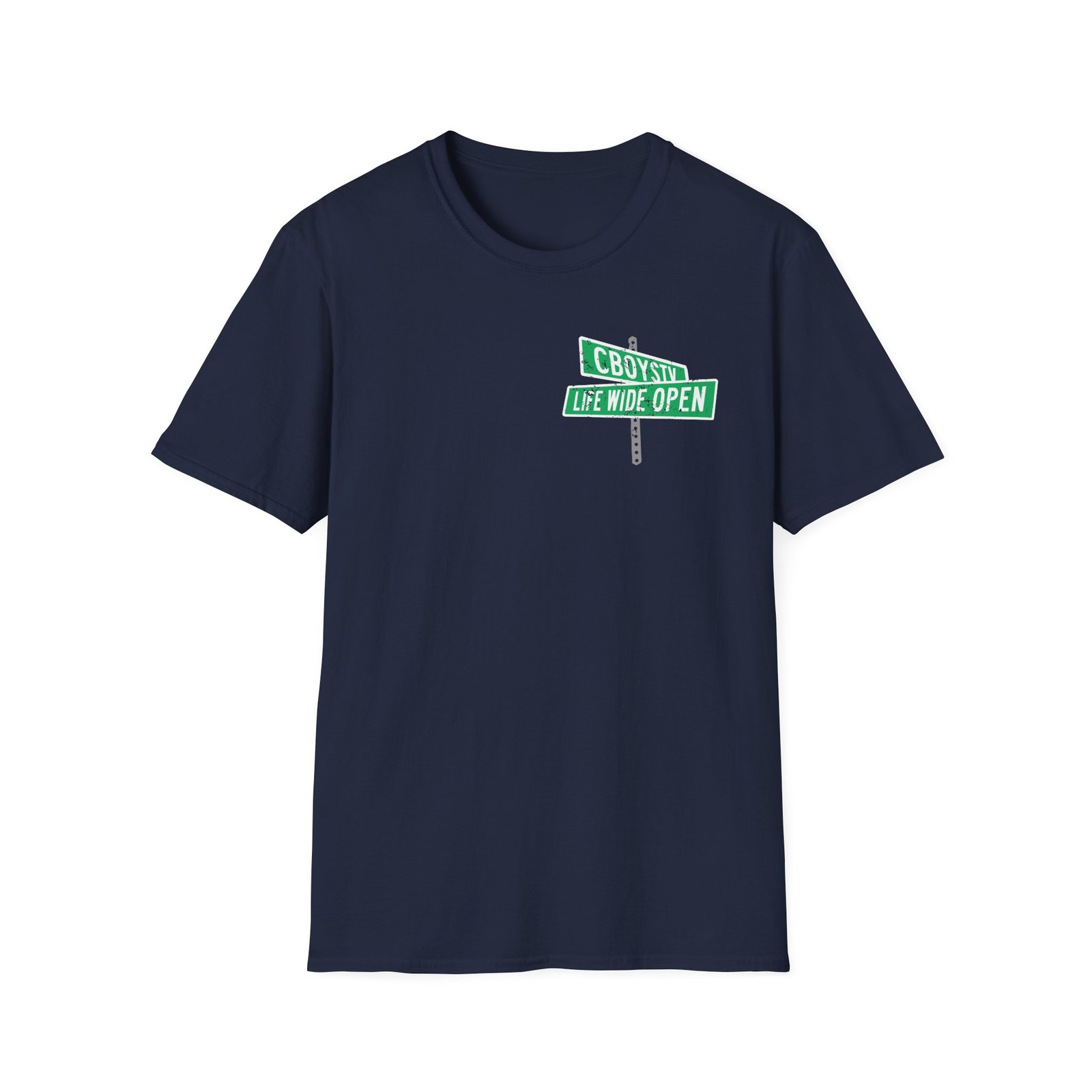 The Cboystv Street Sign unisex soft-style t-shirt puts a new spin on casual comfort. Made from very soft materials, this tee is 100% cotton for solid colors. Heather colors and sports grey include polyester. The shoulders have twill tape for improved durability. There are no side seams. The collar is made with ribbed knitting to prevent curling damage.