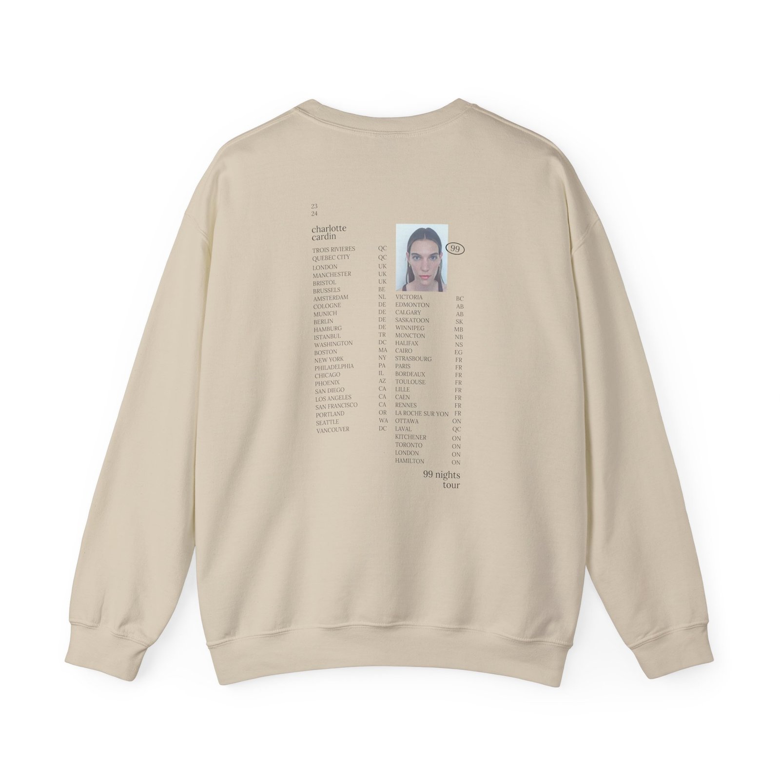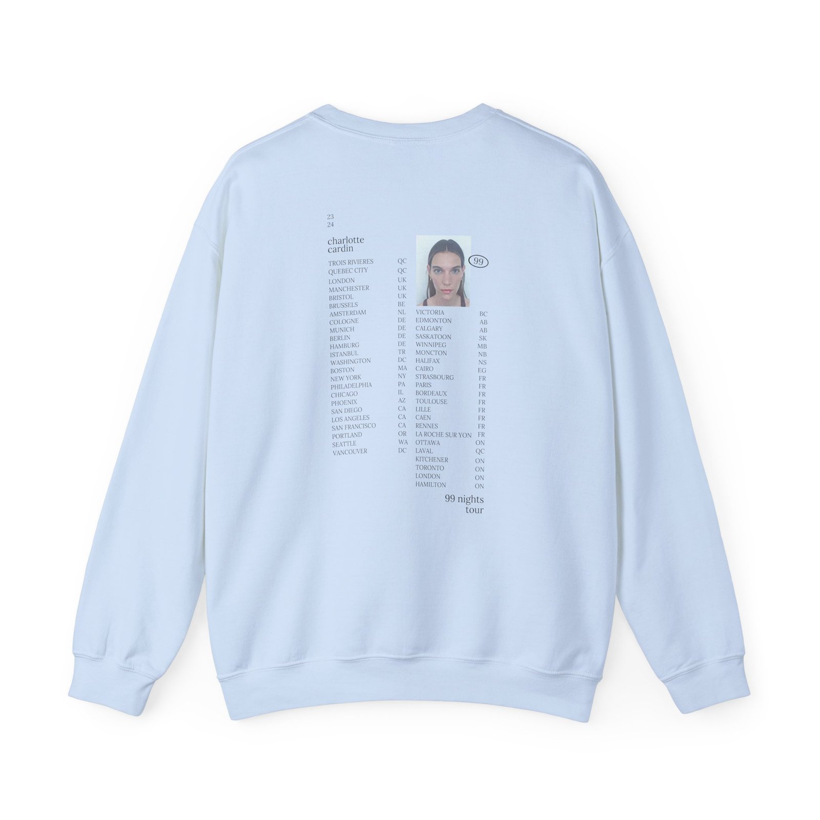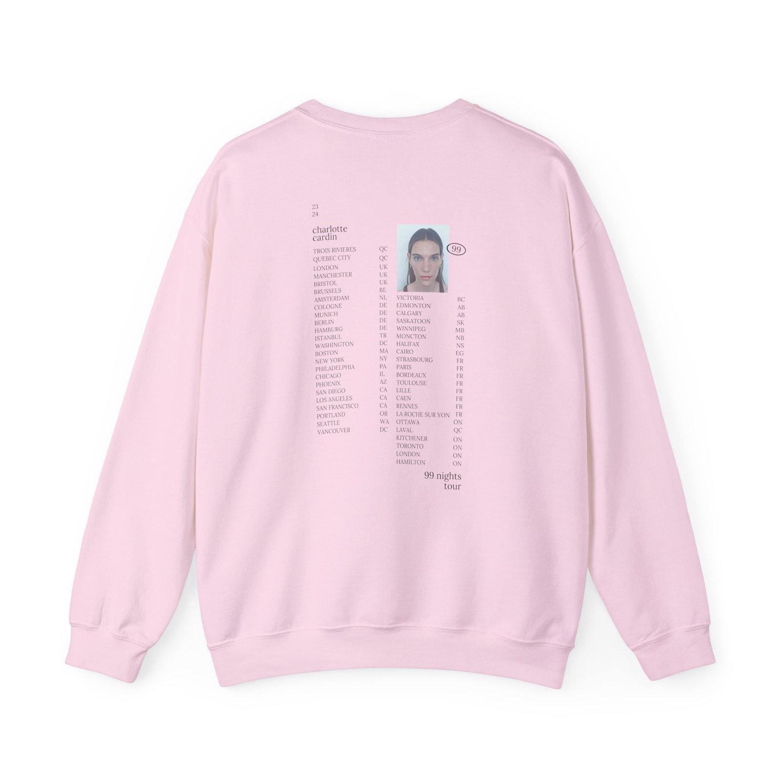 Ideal for any situation, a Charlotte Cardin 99 Nights Tour unisex heavy blend crewneck sweatshirt is pure comfort. These garments are made from polyester and cotton. This combination helps designs come out looking fresh and beautiful. The collar is ribbed knit, so it retains its shape even after washing. There are no itchy side seams on these sweaters.