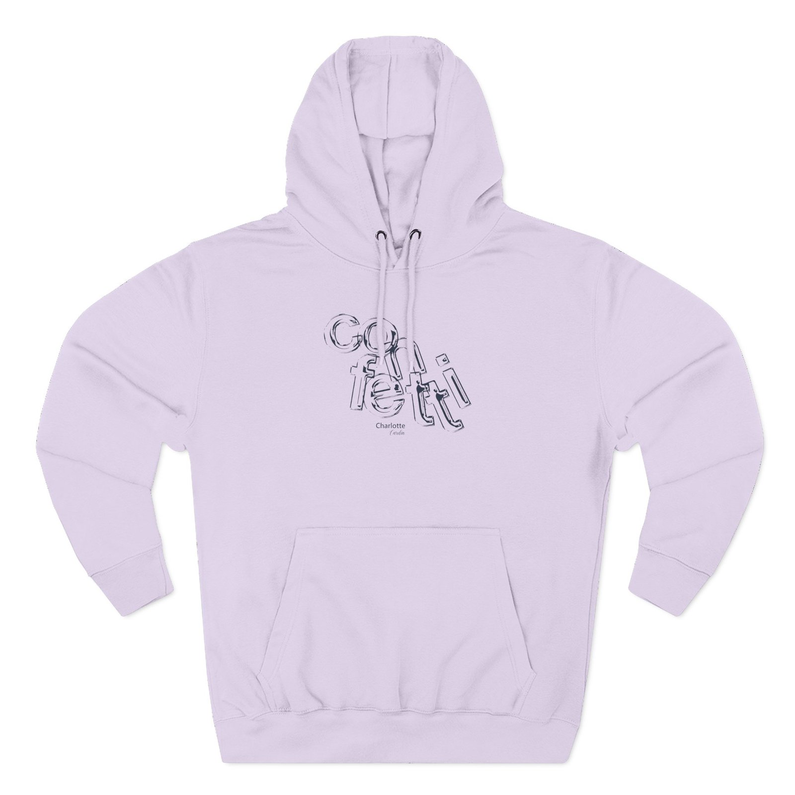 Beat the cold with this Charlotte Cardin Confetti premium pullover hoodie that’s just the right layer of warm and cozy. Made with three-panel fleece lining, this pullover is double stitched for durability and roomy. Pick one in your favorite color to match your style.