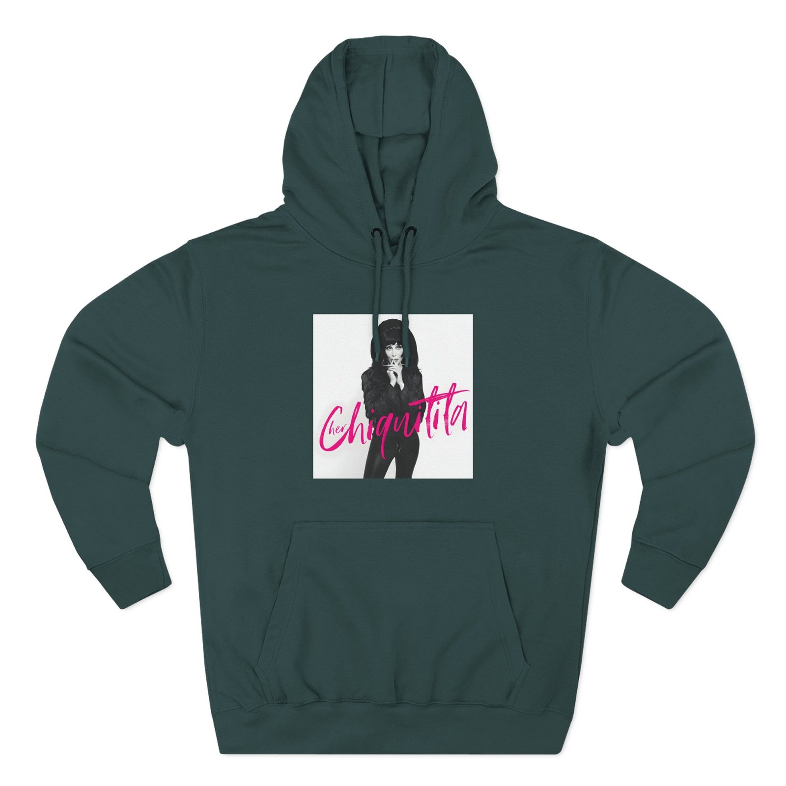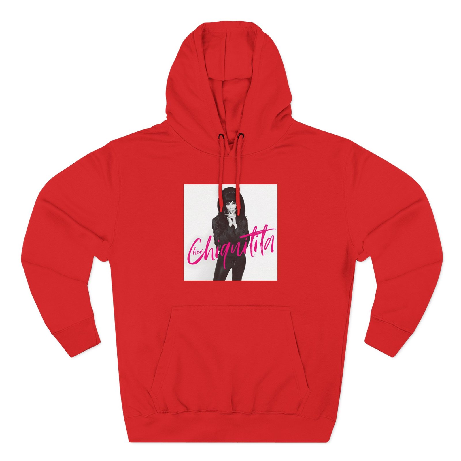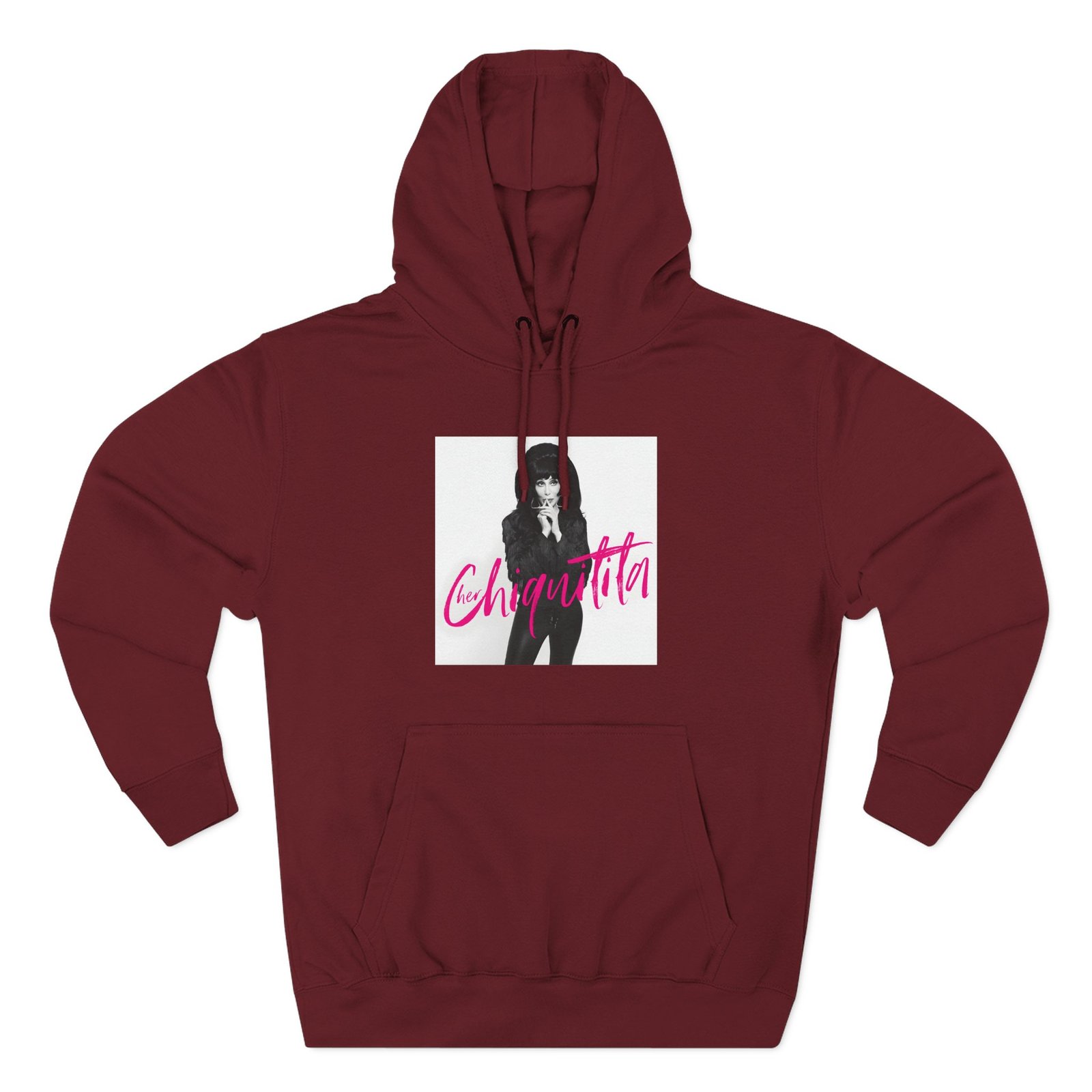 Beat the cold with this Cher Chiquitita Photo premium pullover hoodie that’s just the right layer of warm and cozy. Made with three-panel fleece lining, this pullover is double stitched for durability and roomy. Pick one in your favorite color to match your style.