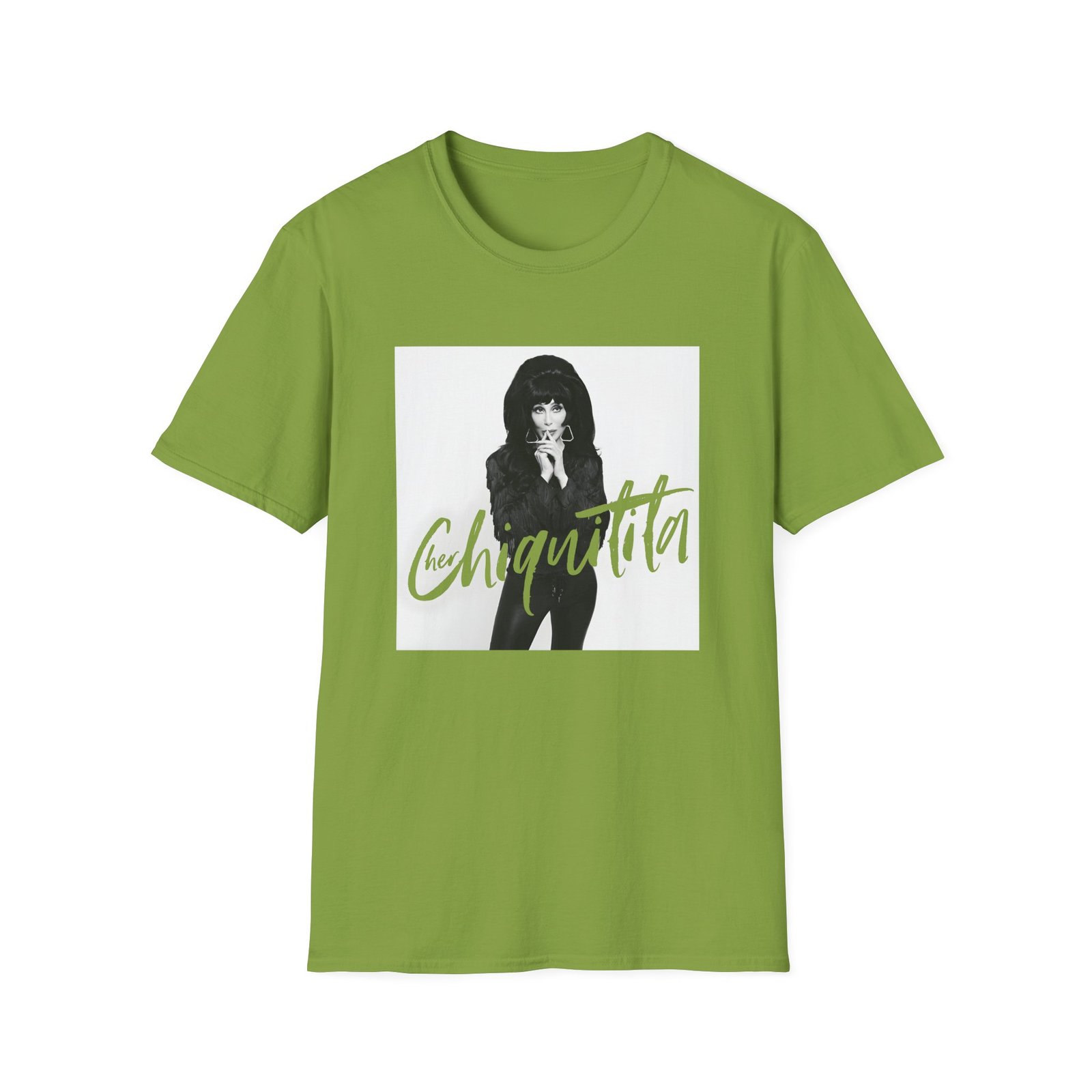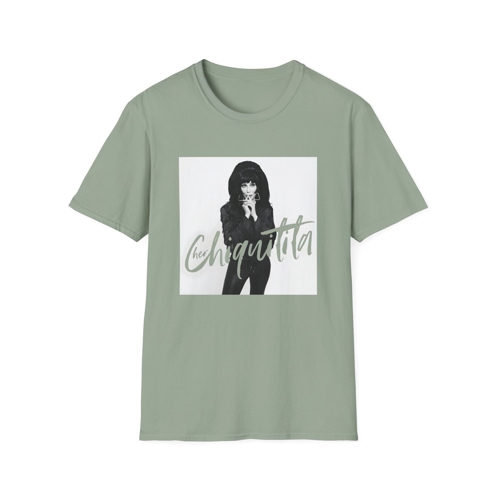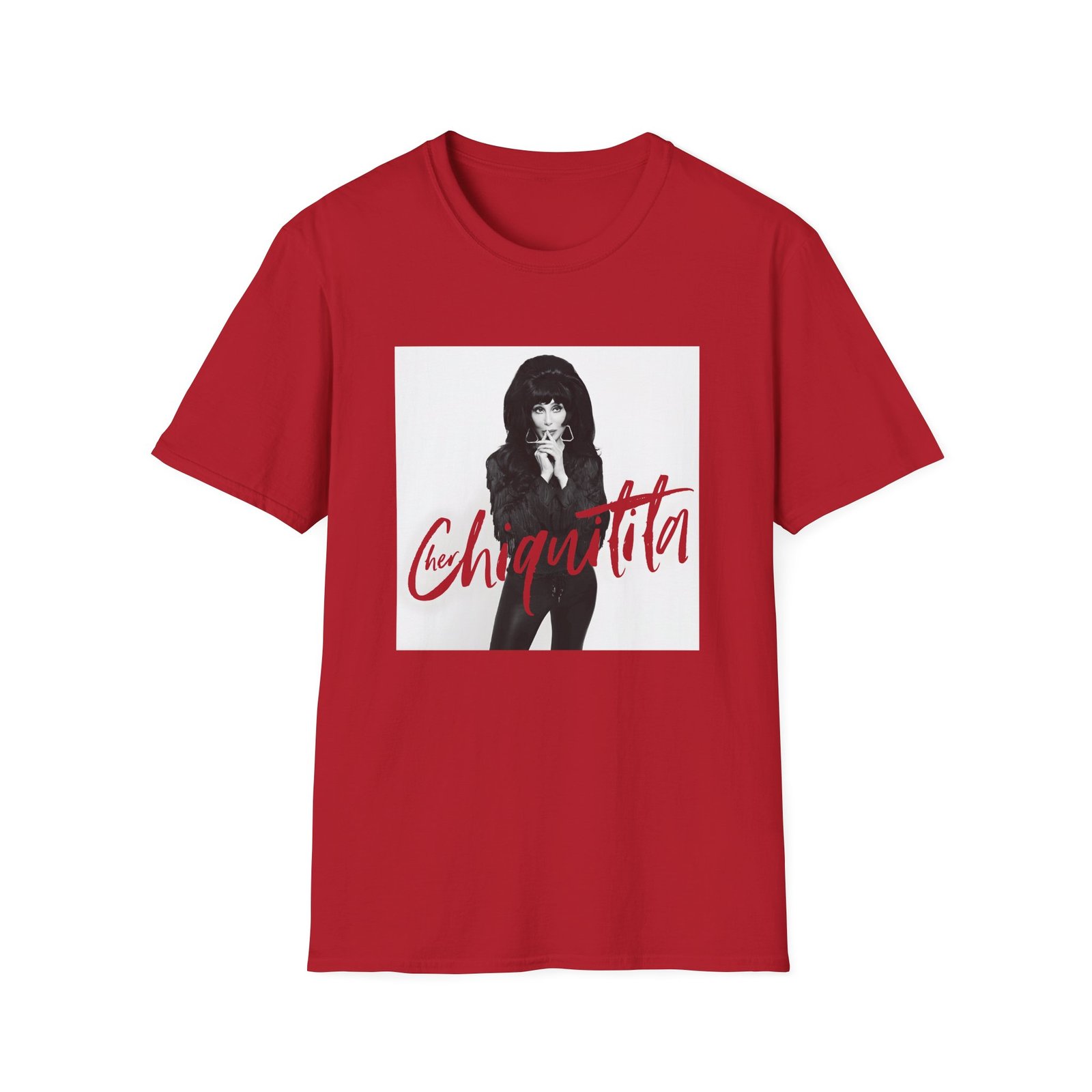 The Cher Chiquitita Photo unisex soft-style t-shirt puts a new spin on casual comfort. Made from very soft materials, this tee is 100% cotton for solid colors. Heather colors and sports grey include polyester. The shoulders have twill tape for improved durability. There are no side seams. The collar is made with ribbed knitting to prevent curling damage.