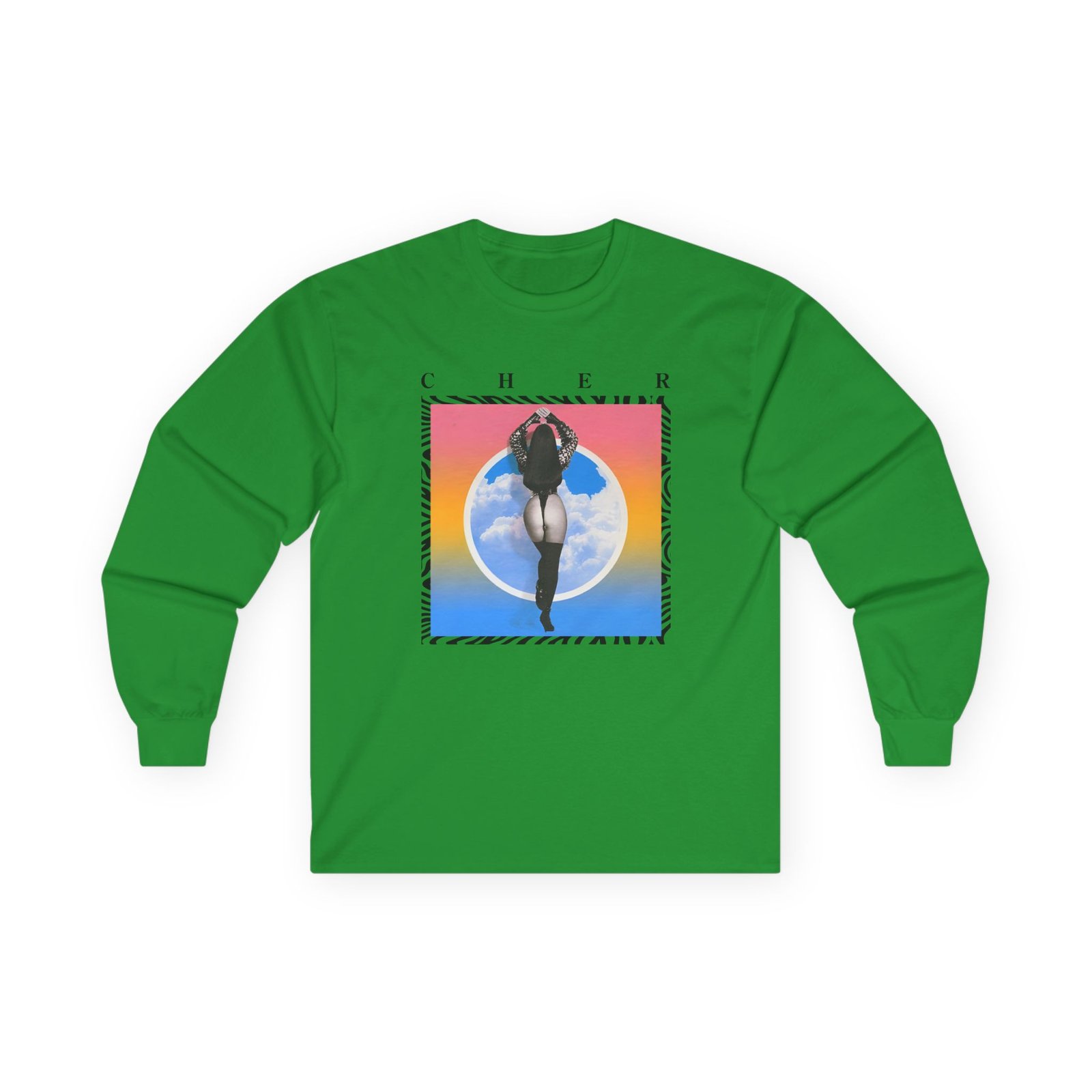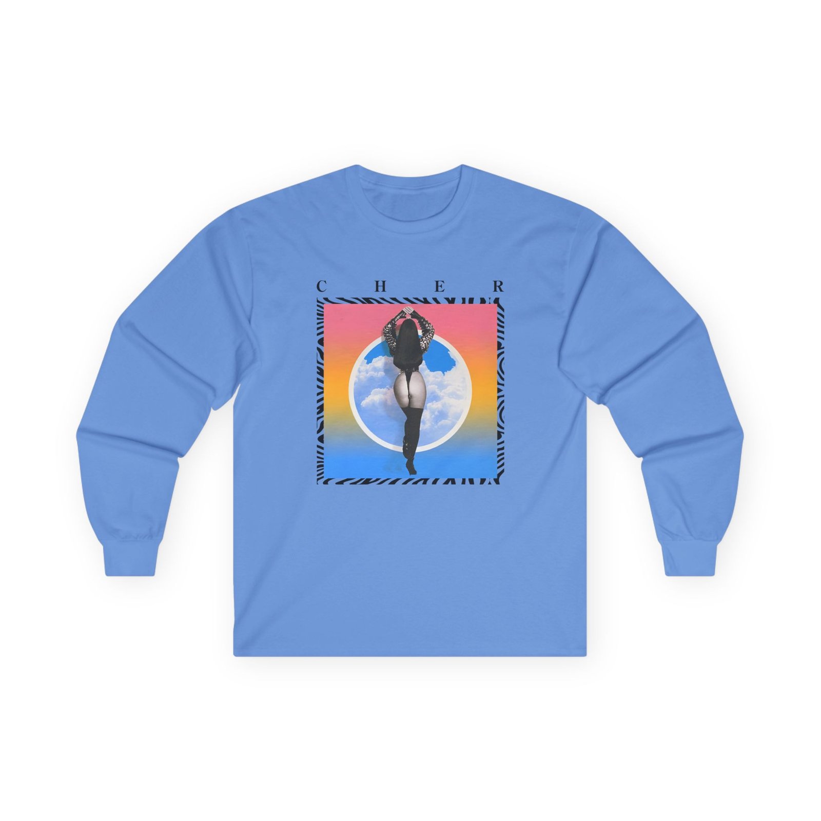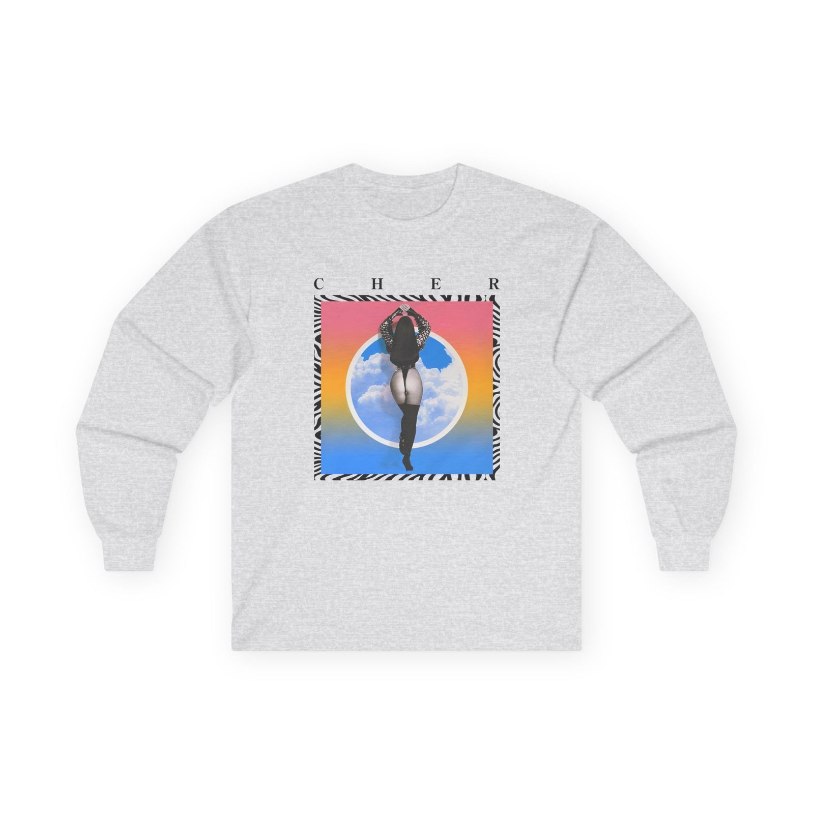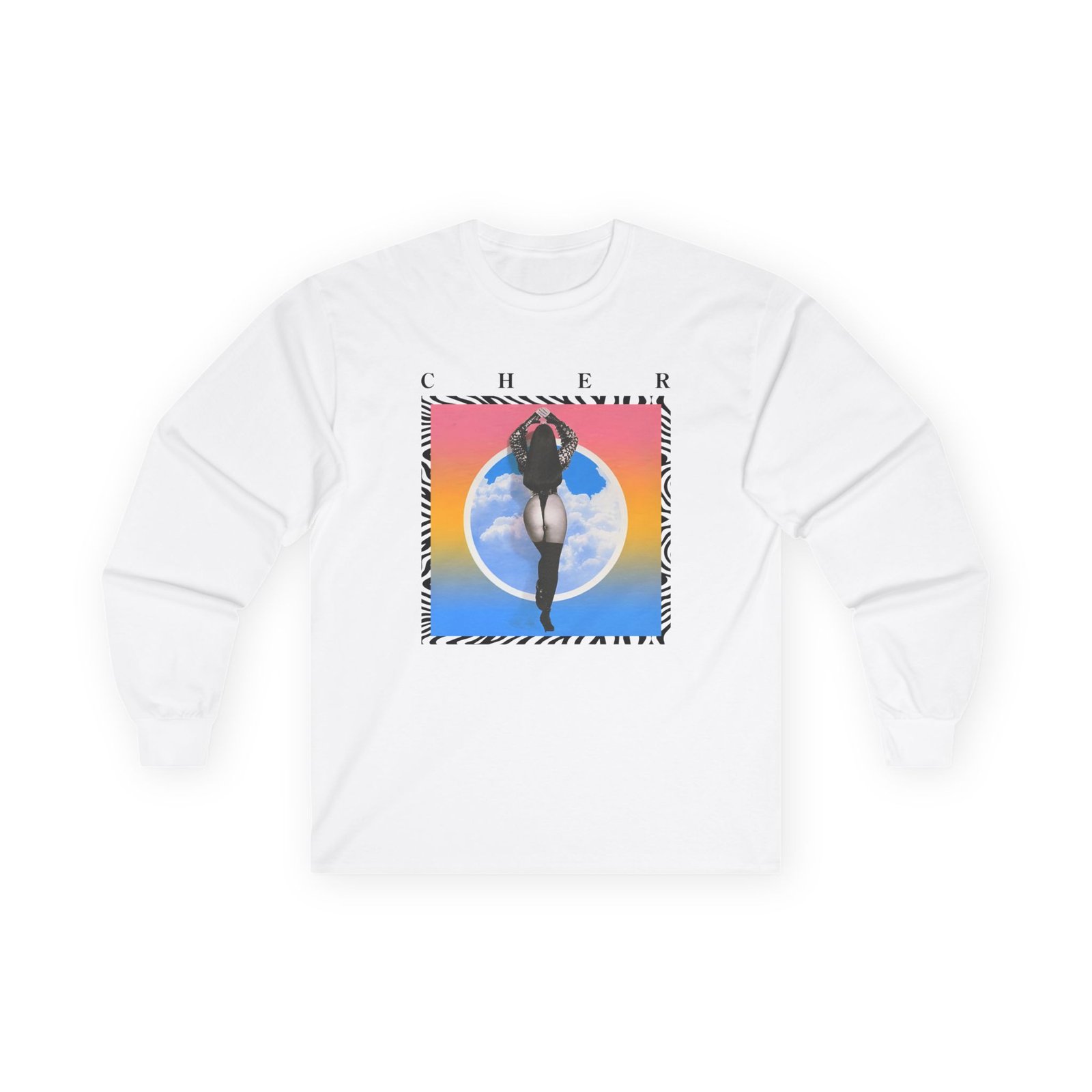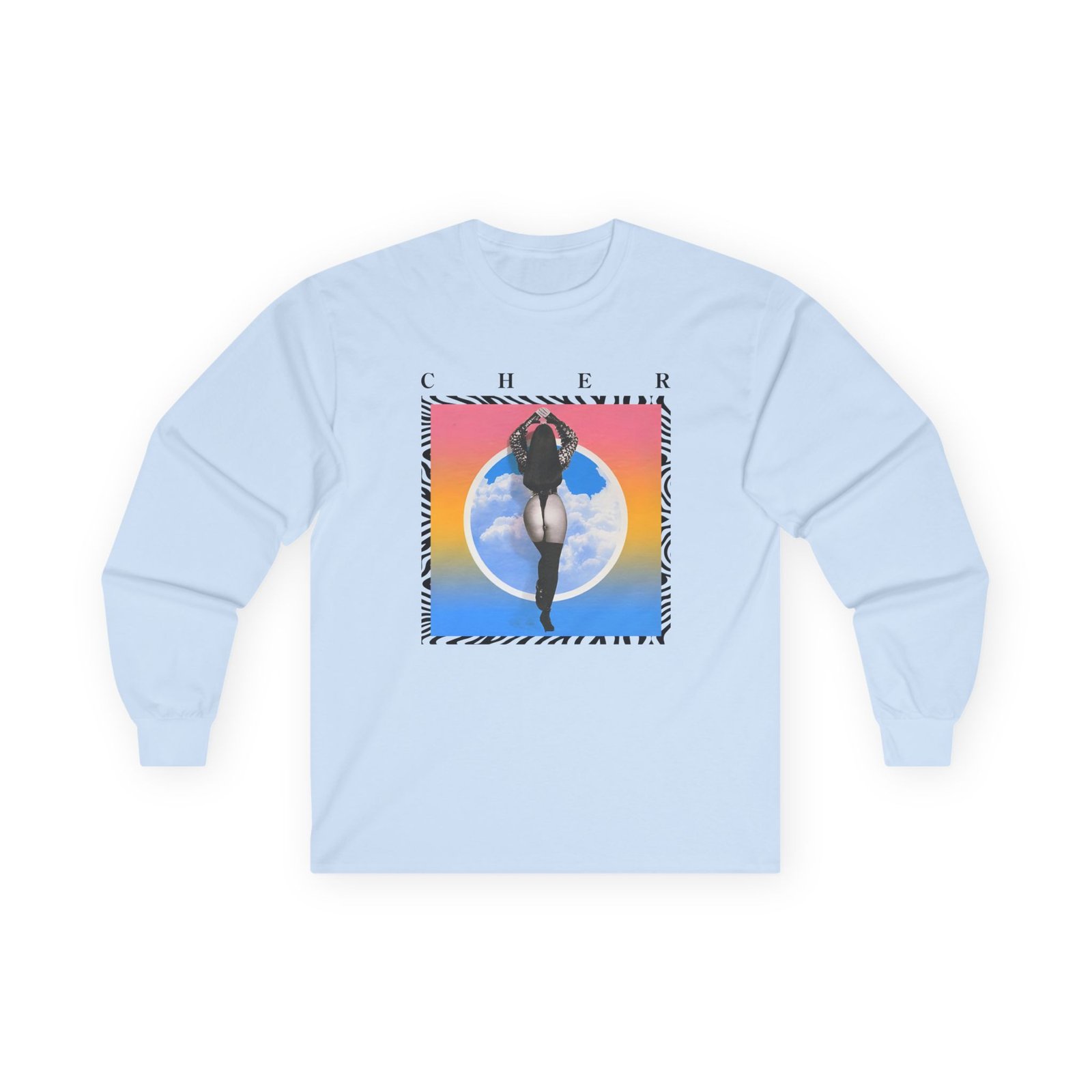 A bit more formal than a standard-issue t-shirt, the Cher in the Clouds Photo ultra cotton long sleeve tee is a clear comfort winner. The sleeves also act as a nice frame. There are no side seams. The shoulders are taped for improved durability. This makes for a good fitting around the shoulders and neck. The cotton used for these shirts is environmentally friendly.