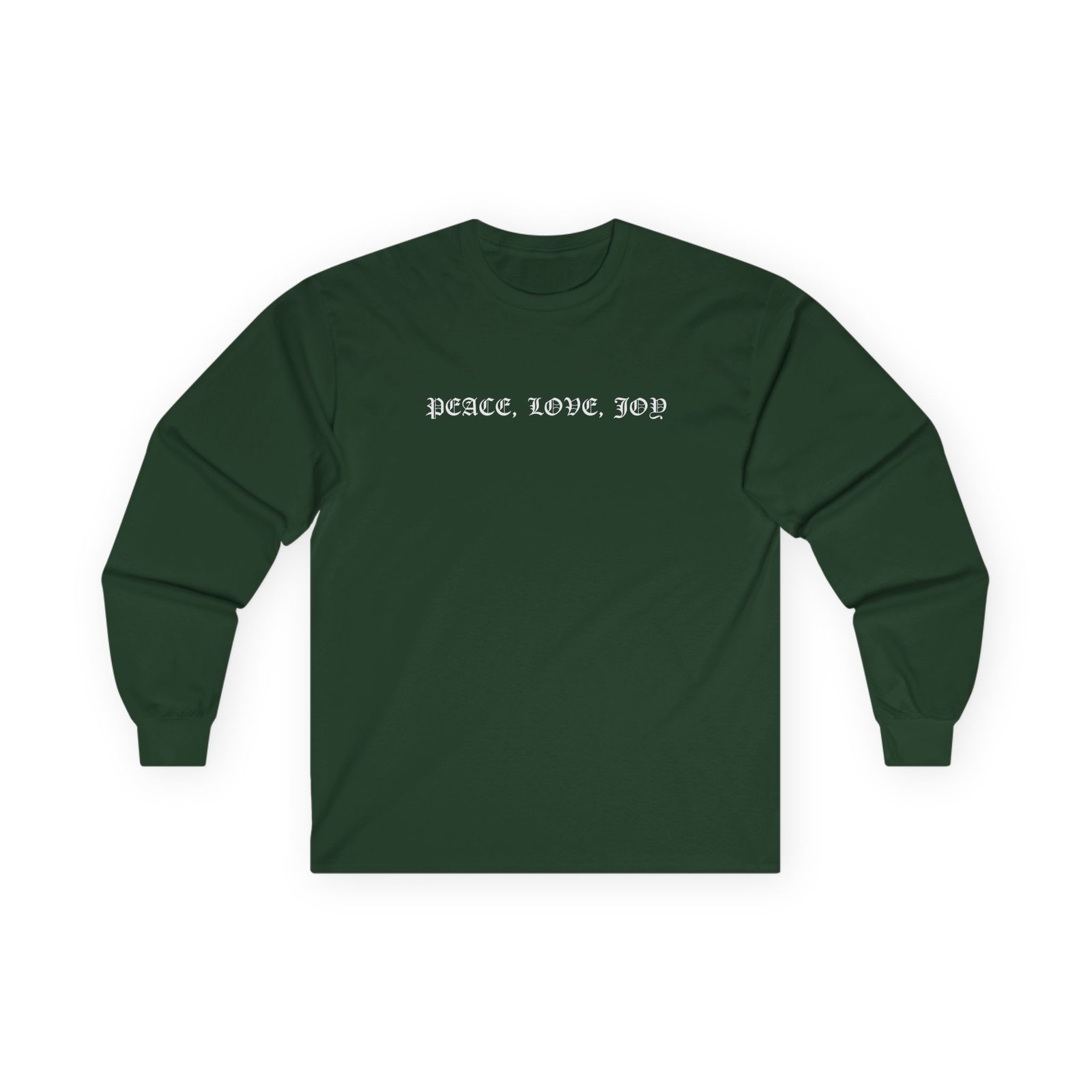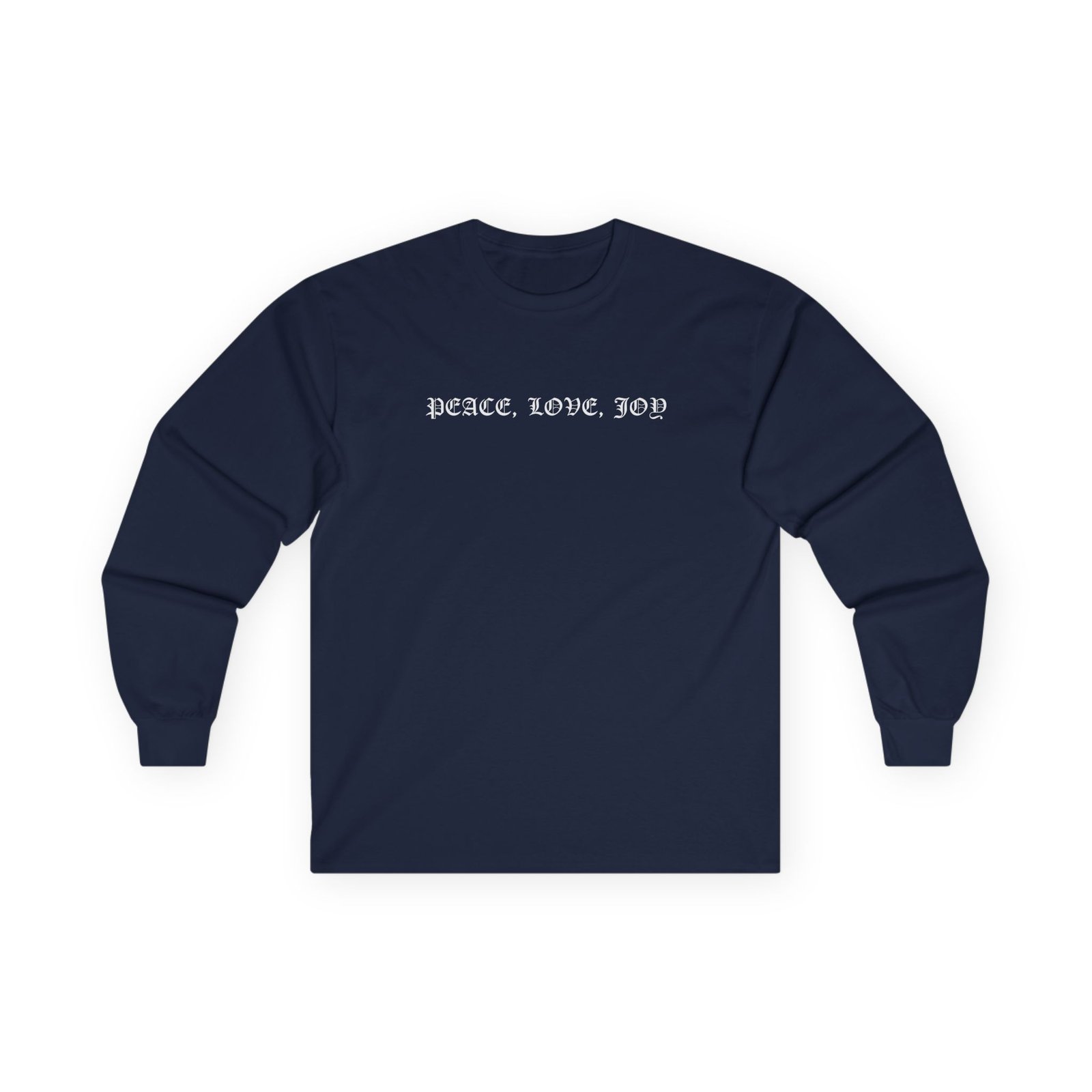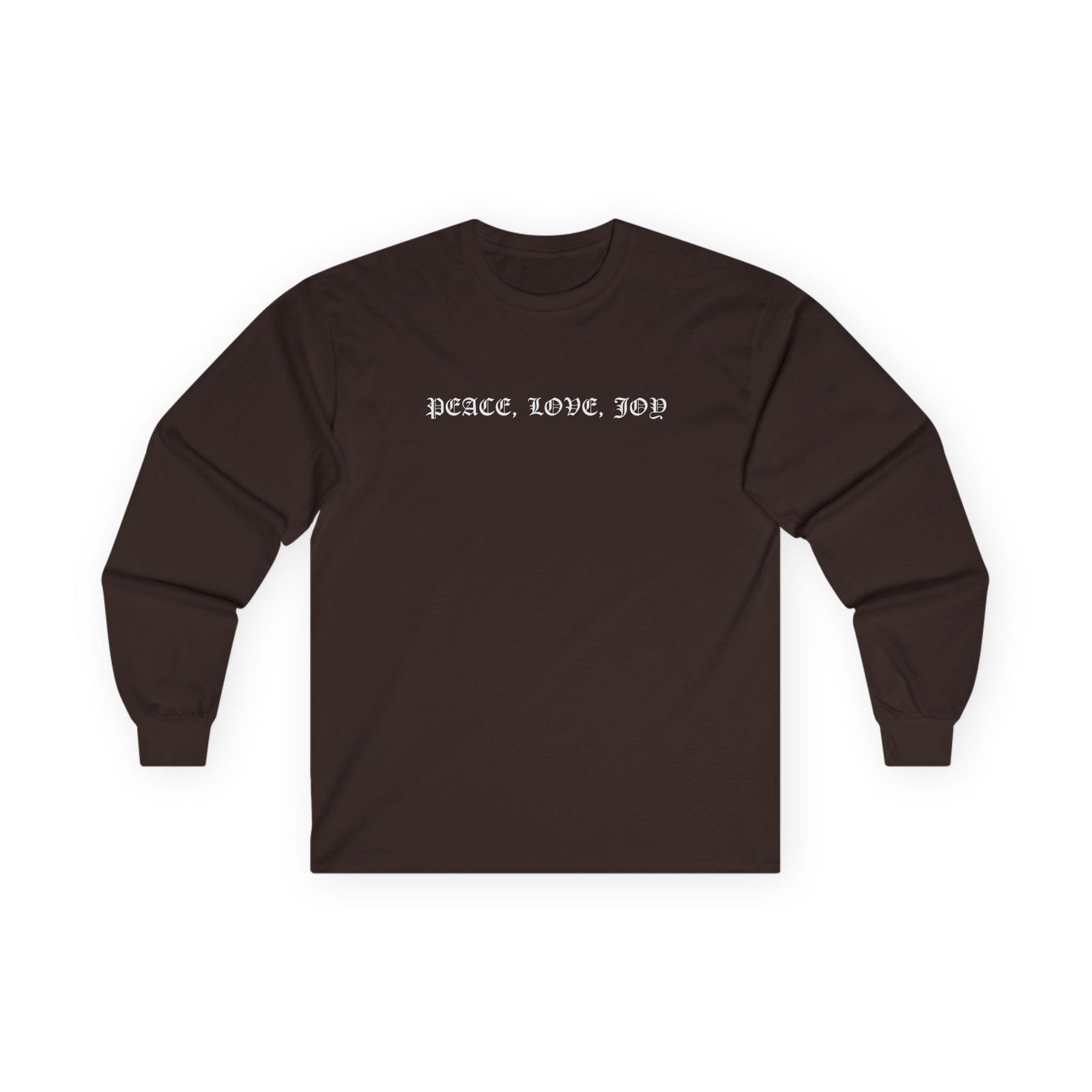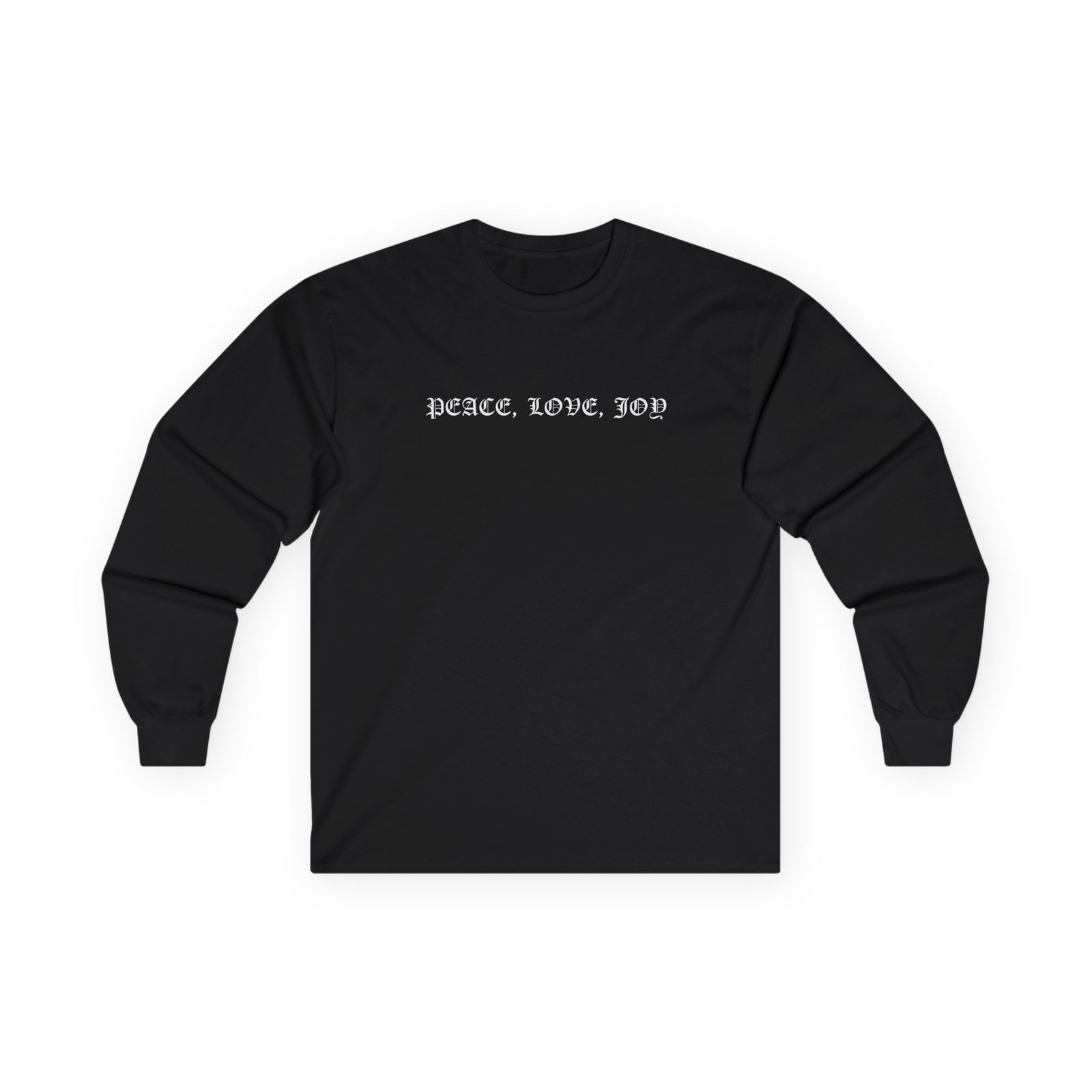 A bit more formal than a standard-issue t-shirt, the Cher Peace Love Joy ultra cotton long sleeve tee is a clear comfort winner. The sleeves also act as a nice frame. There are no side seams. The shoulders are taped for improved durability. This makes for a good fitting around the shoulders and neck. The cotton used for these shirts is environmentally friendly.