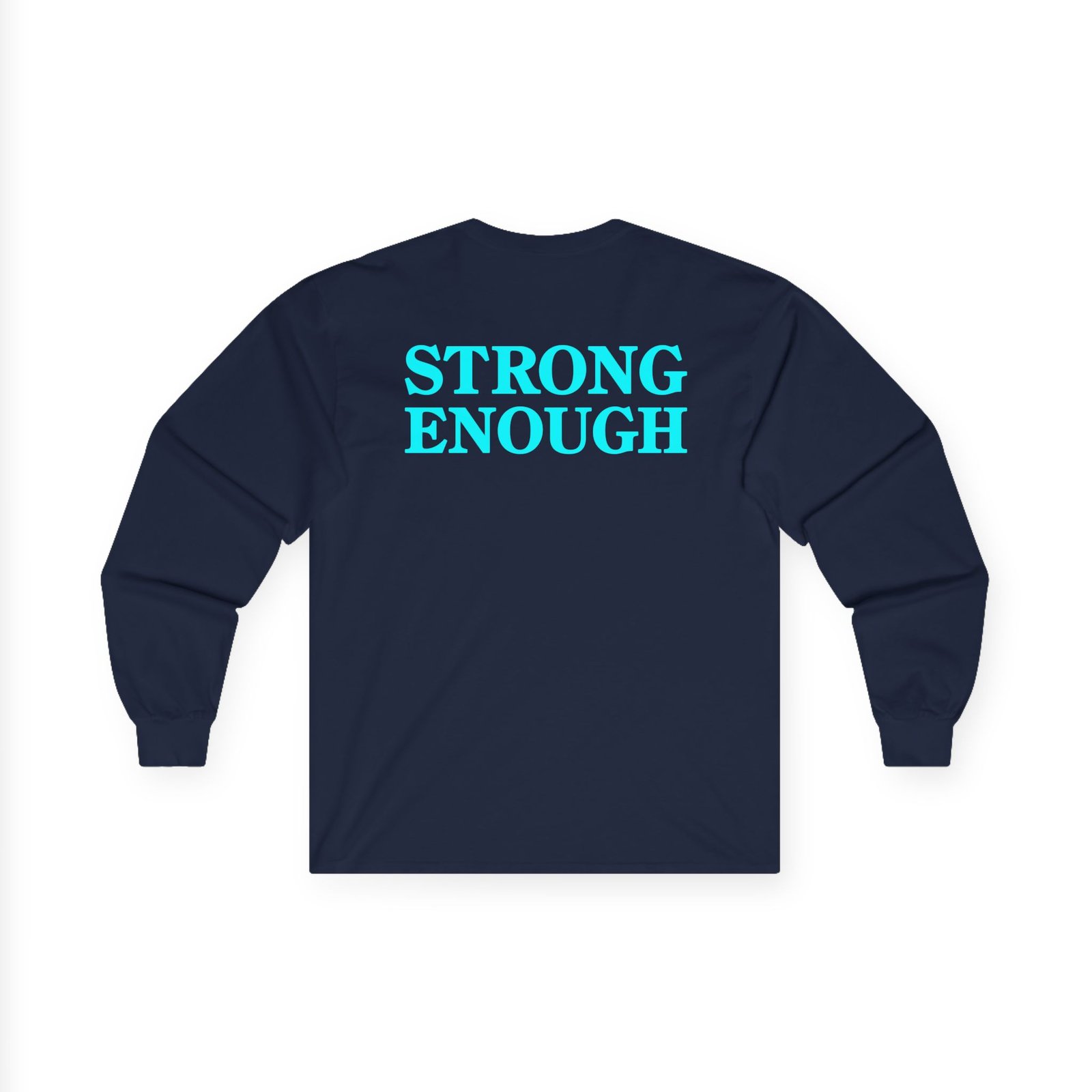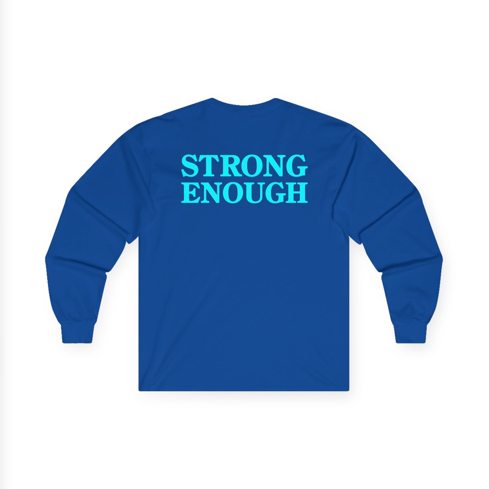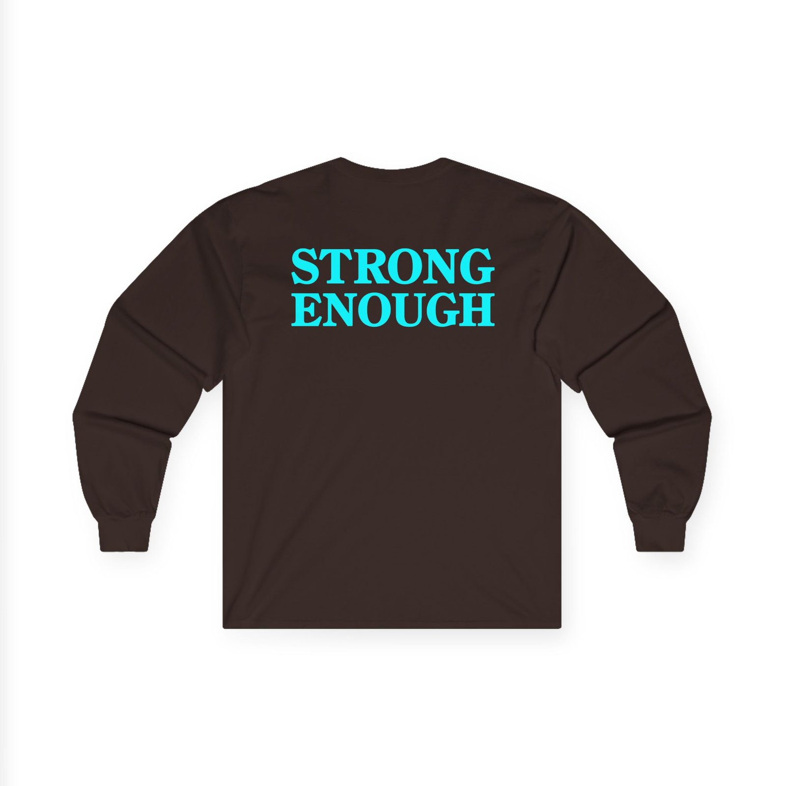 A bit more formal than a standard-issue t-shirt, the Cher Strong Enough ultra cotton long sleeve tee is a clear comfort winner. The sleeves also act as a nice frame. There are no side seams. The shoulders are taped for improved durability. This makes for a good fitting around the shoulders and neck. The cotton used for these shirts is environmentally friendly.